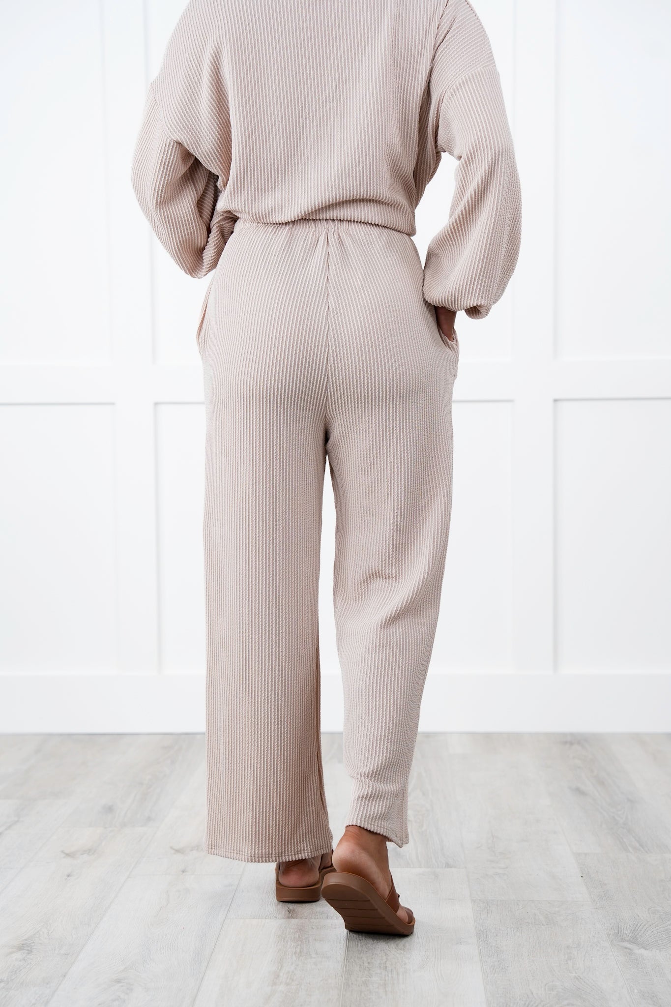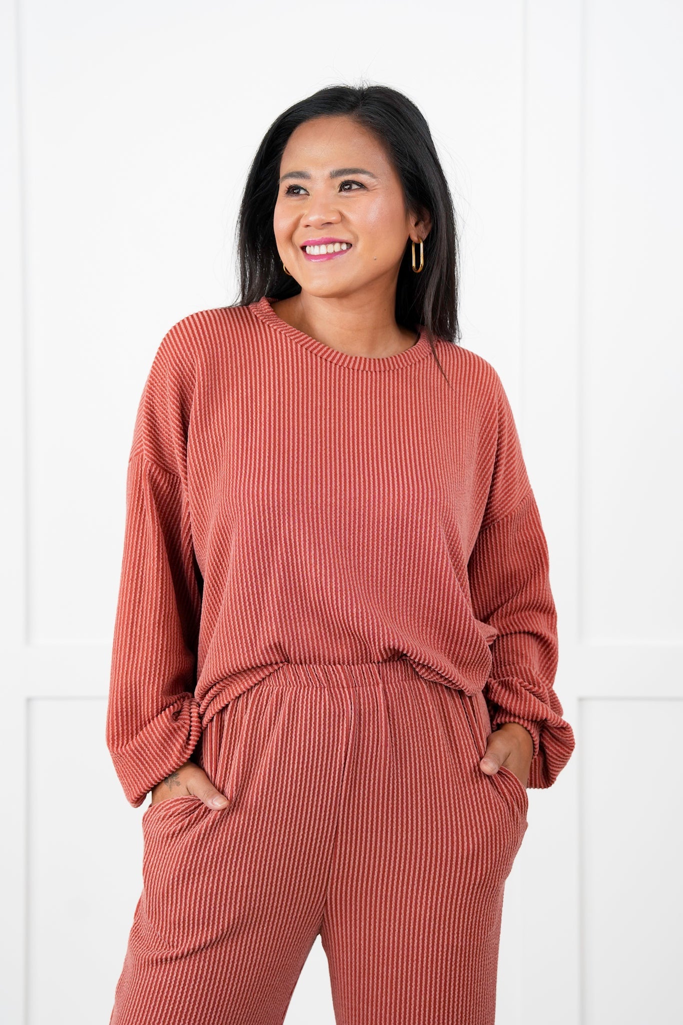 Ribbed Long Sleeve Round Top With Elastic Waistband Lounge Pant Set (Multiple Colors)