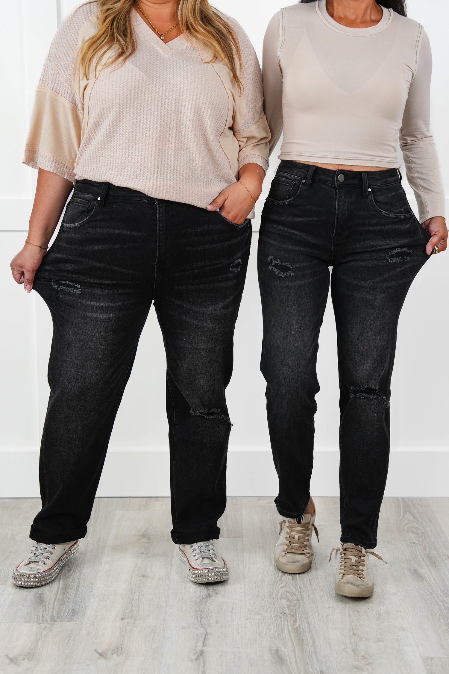 Risen Black Distressed Mid Rise Boyfriend Jeans