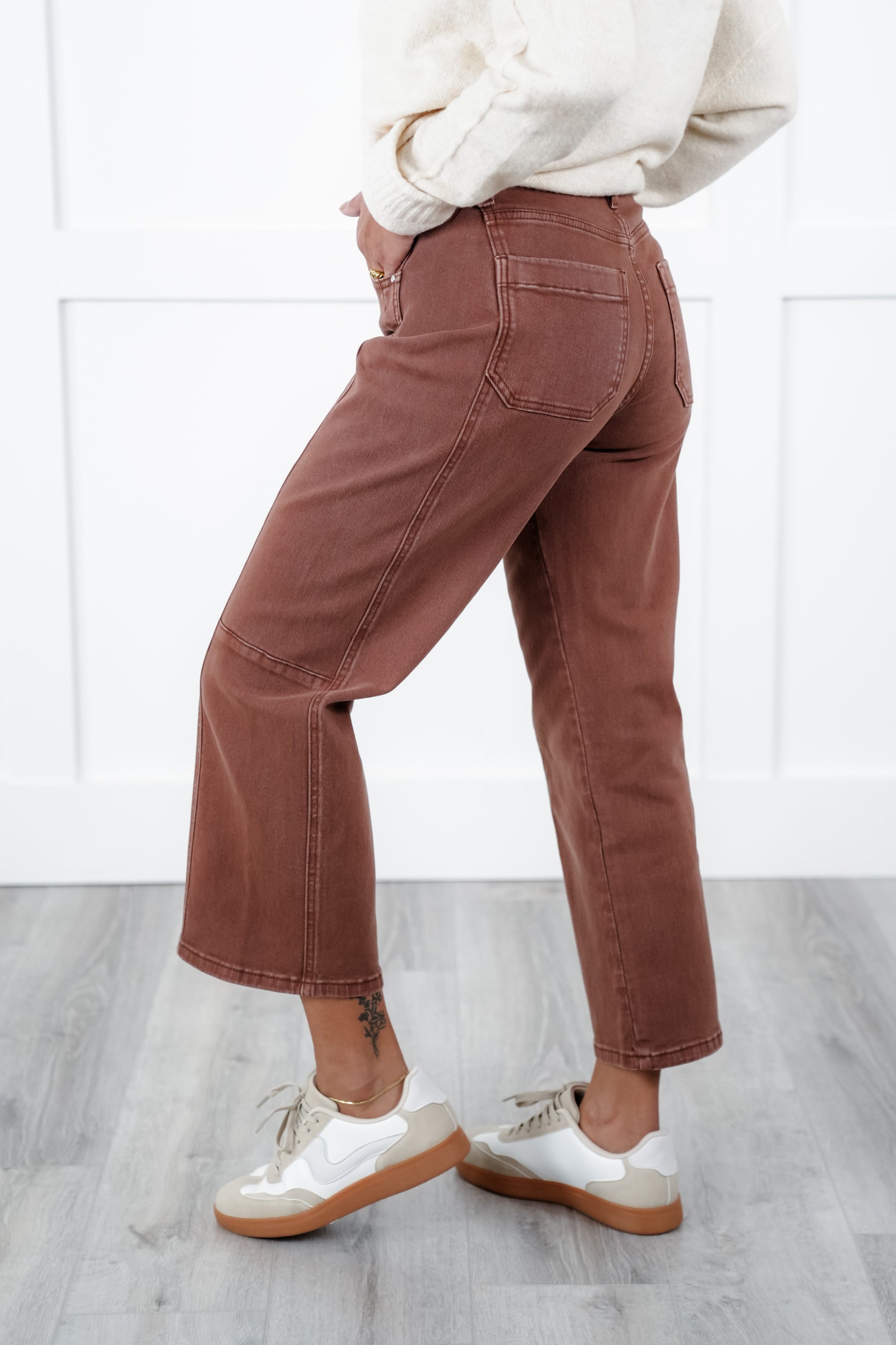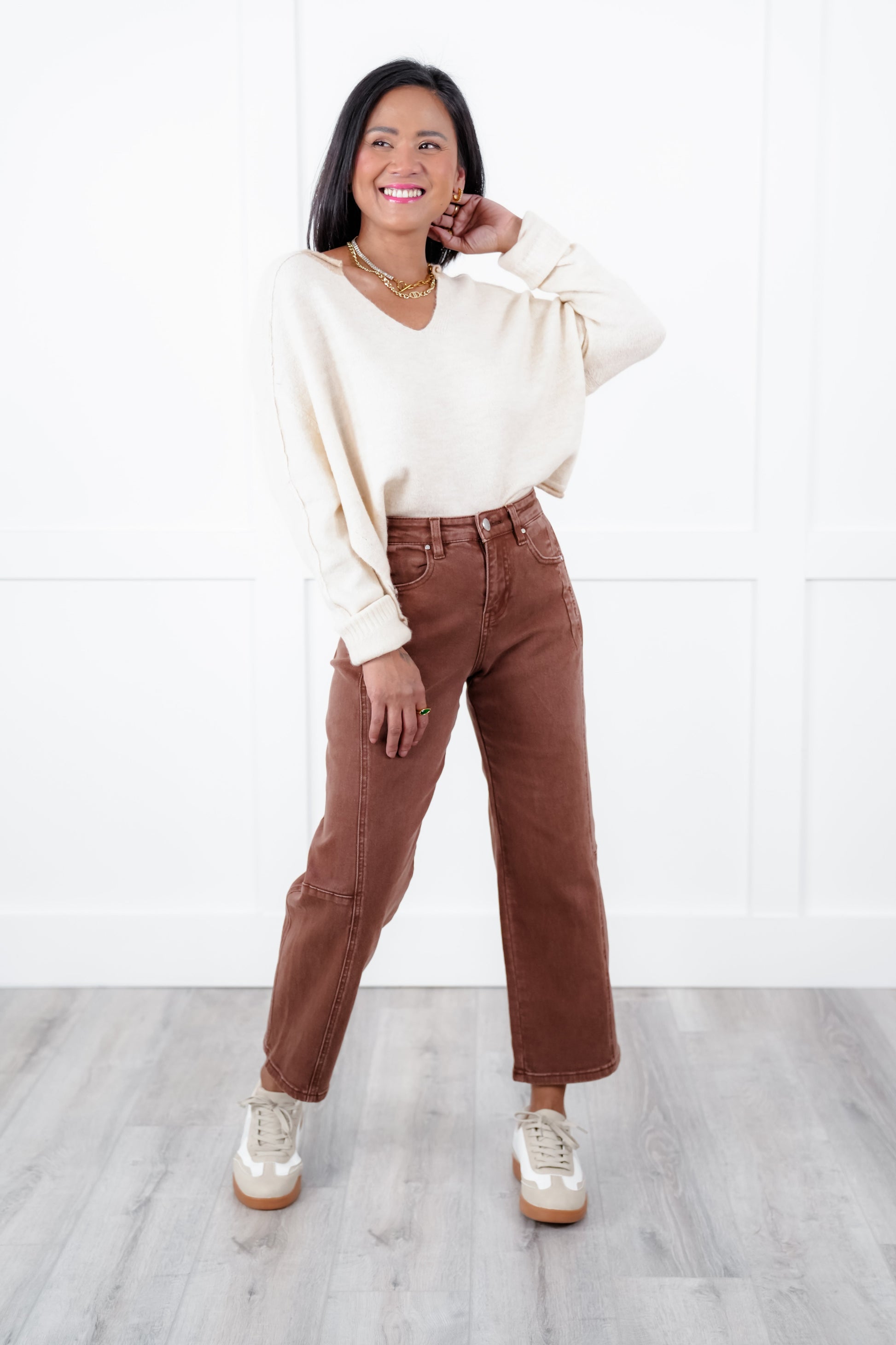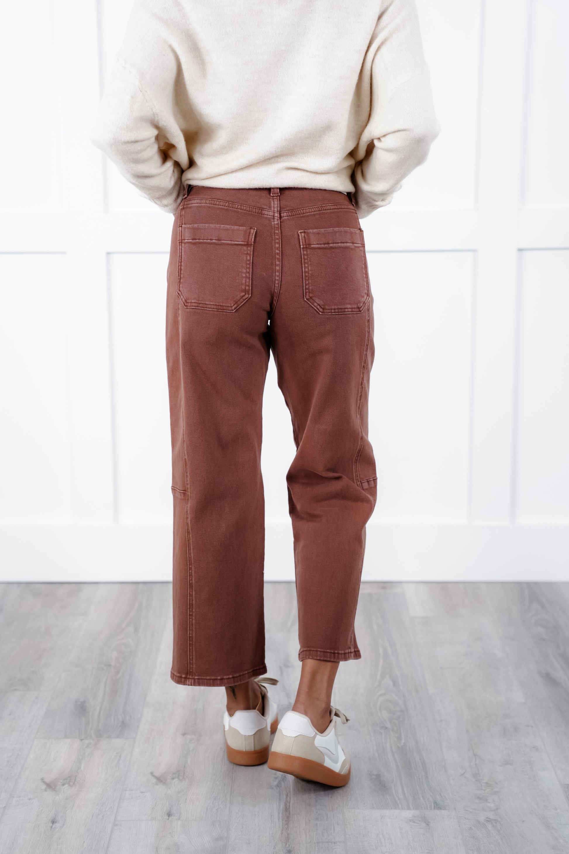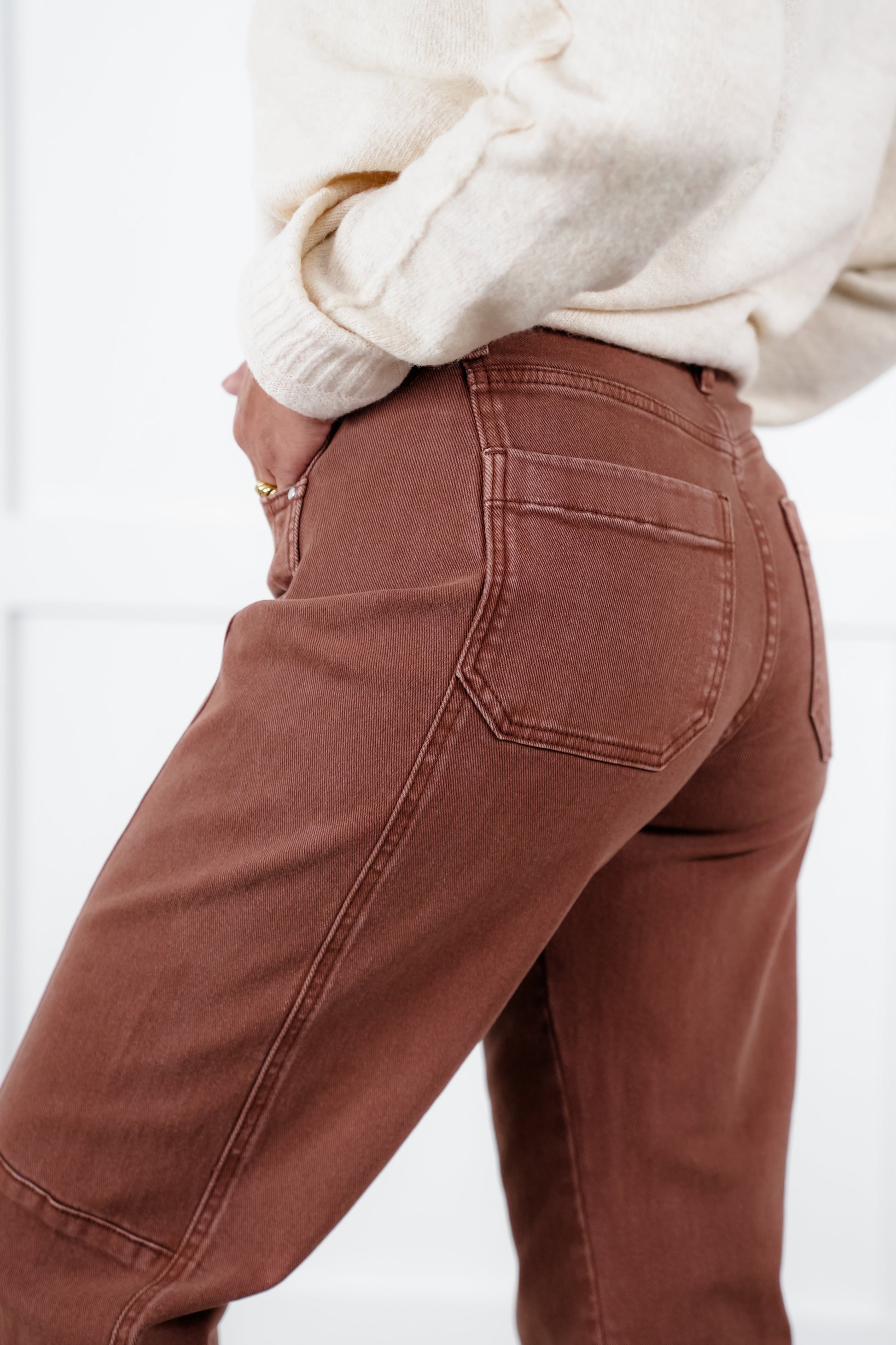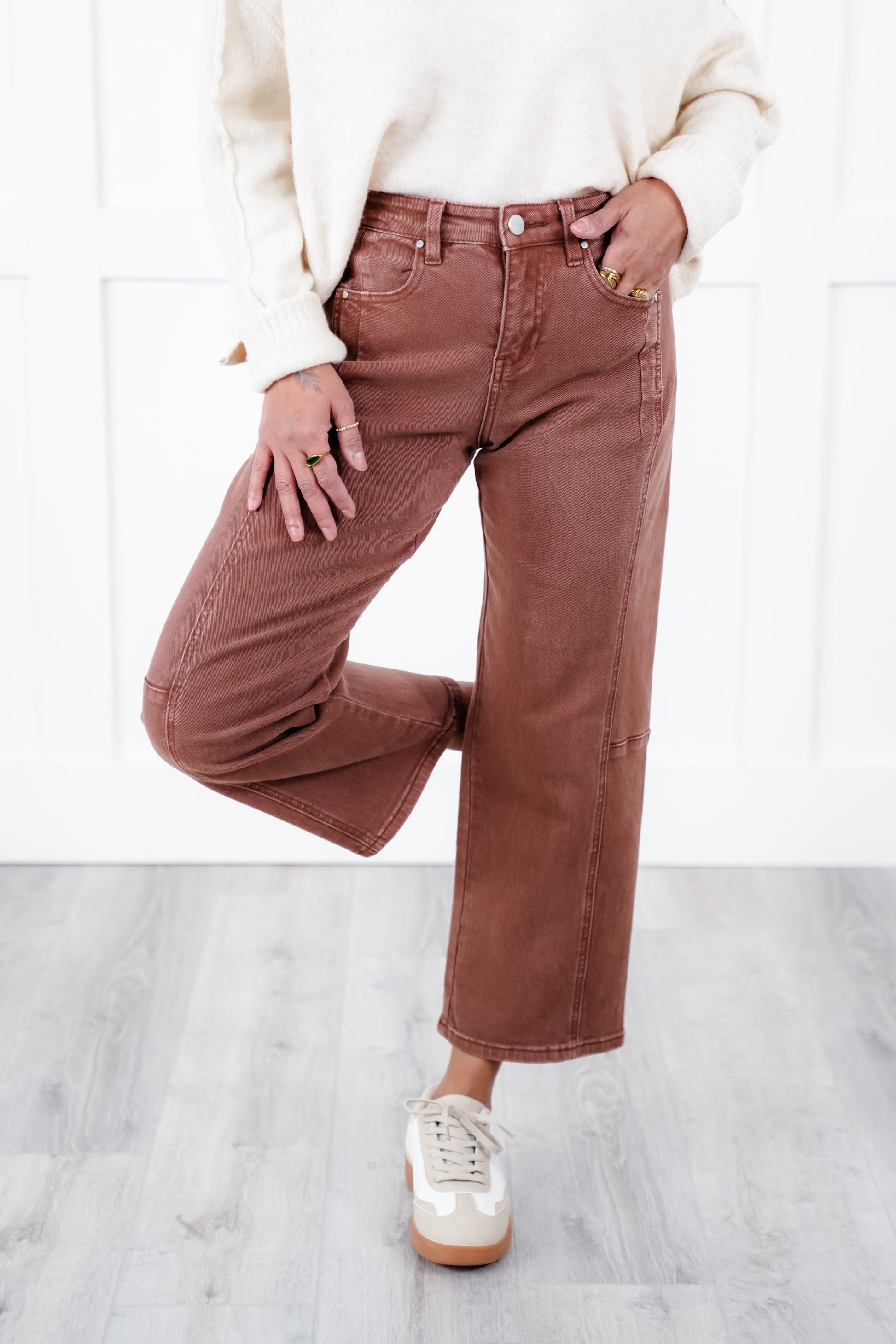 These cropped Risen jeans are a total vibe with their rich washed brown color, subtle seam detailing, and cool barrel leg shape, they bring something fresh and fun to your denim lineup. They've got just the right amount of stretch for all-day comfort, and that high rise fit? So flattering and easy to style with anything from tanks to tucked-in sweaters.