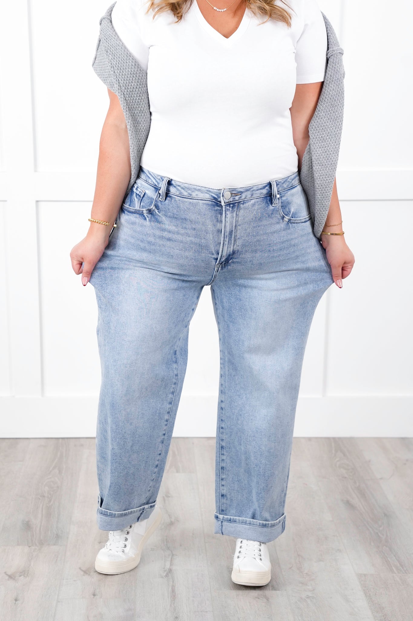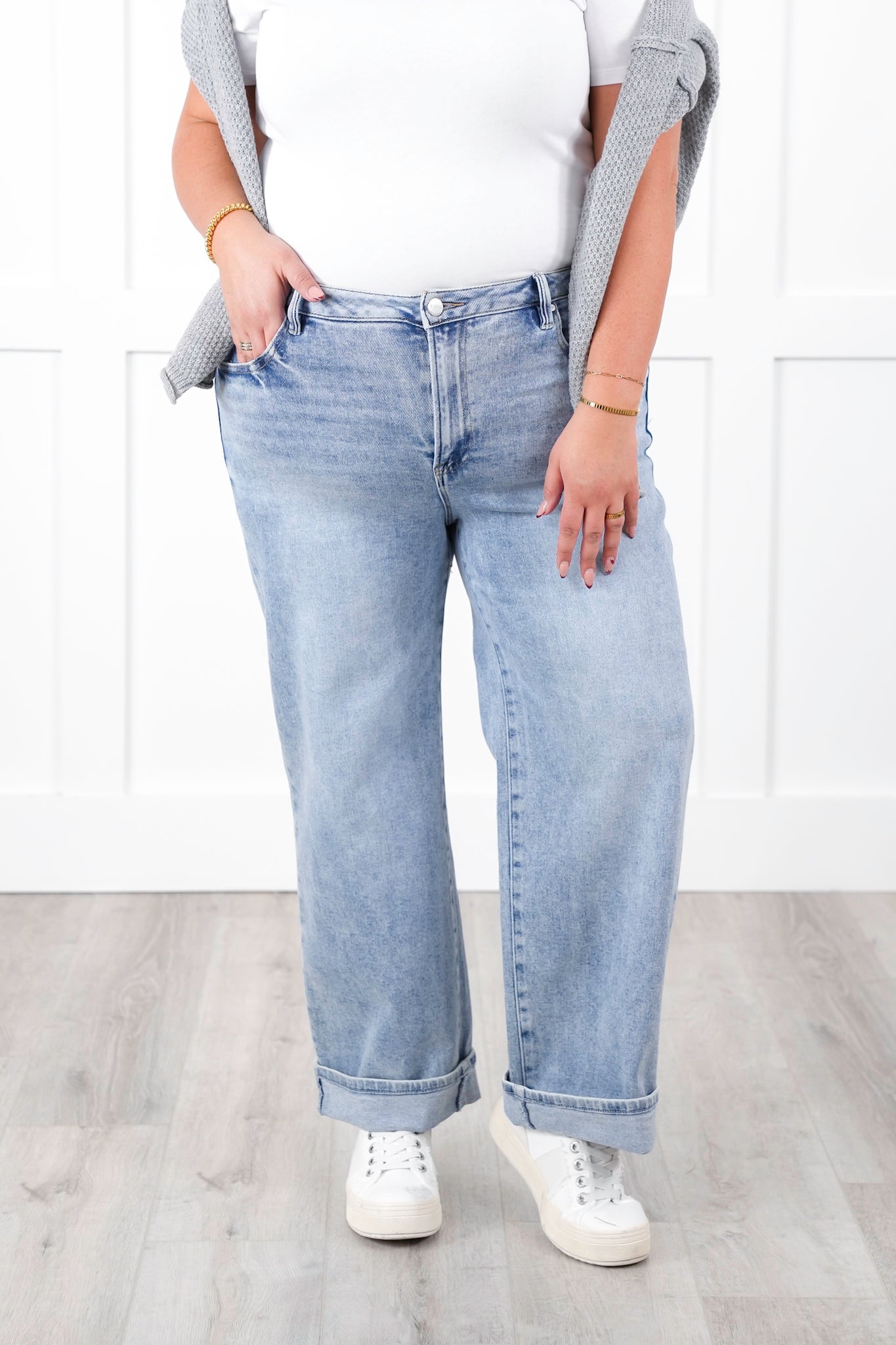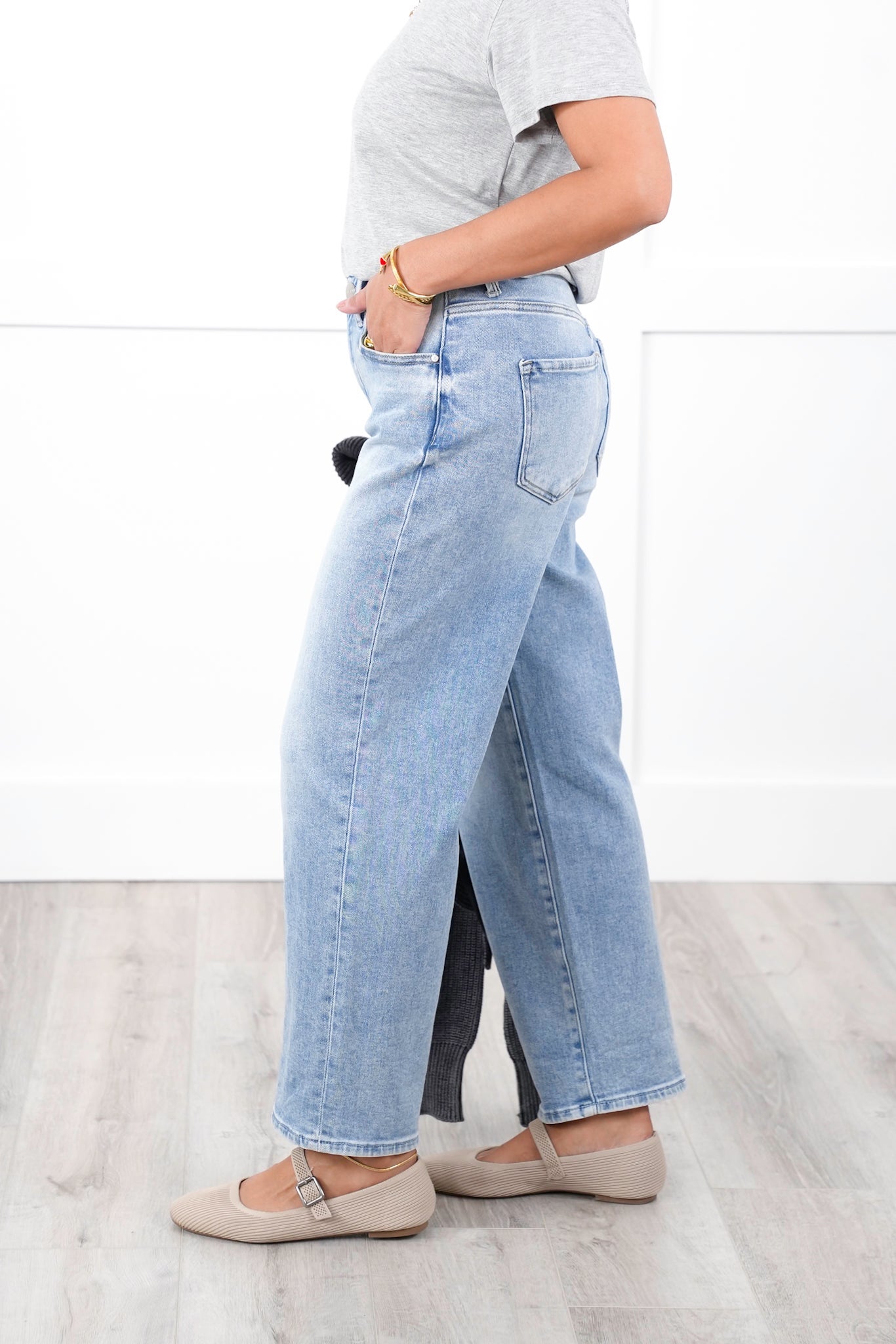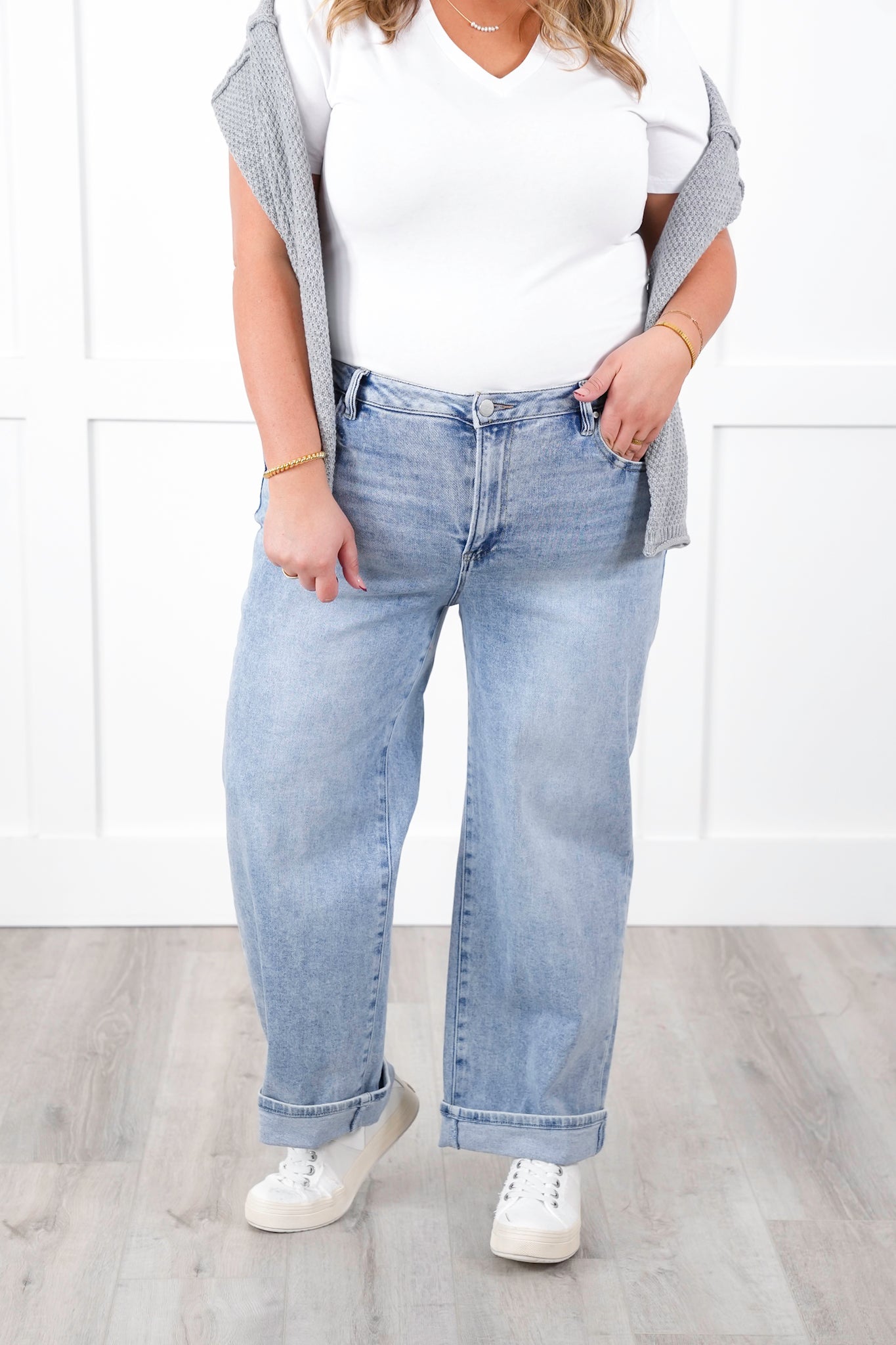 Risen High Rise Light Wash Ankle Barrel Jeans with Cuff