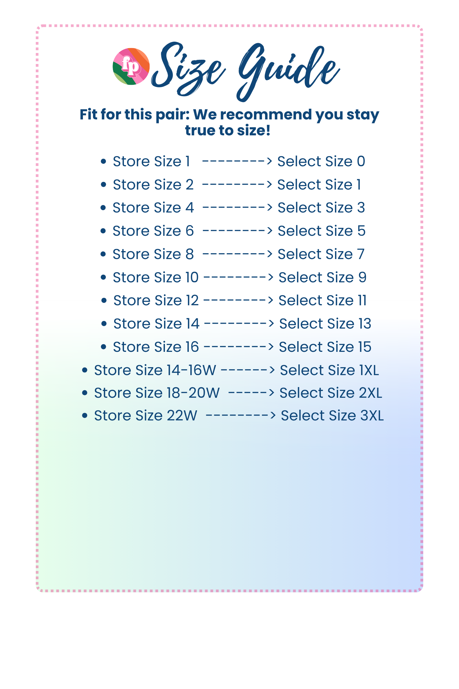 Plus (sizes 1XL -3XL): We recommend staying with your true size.