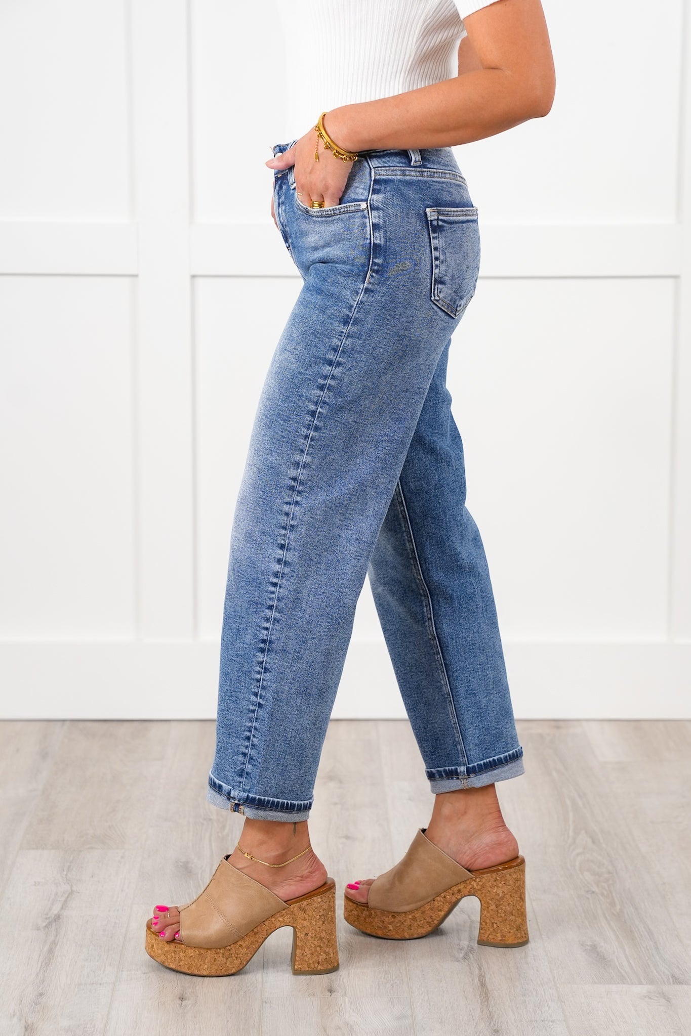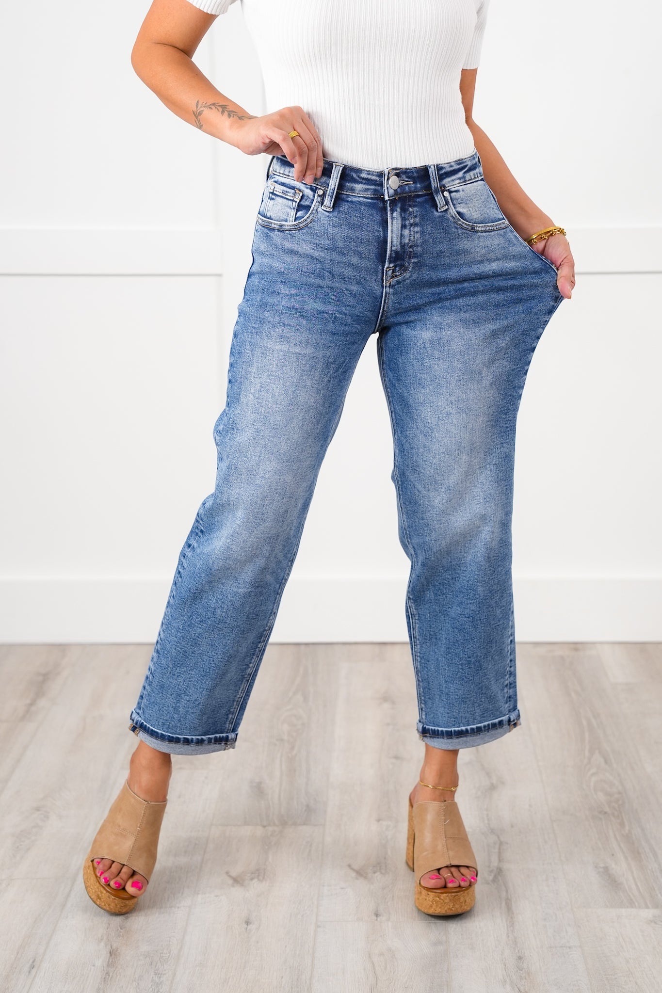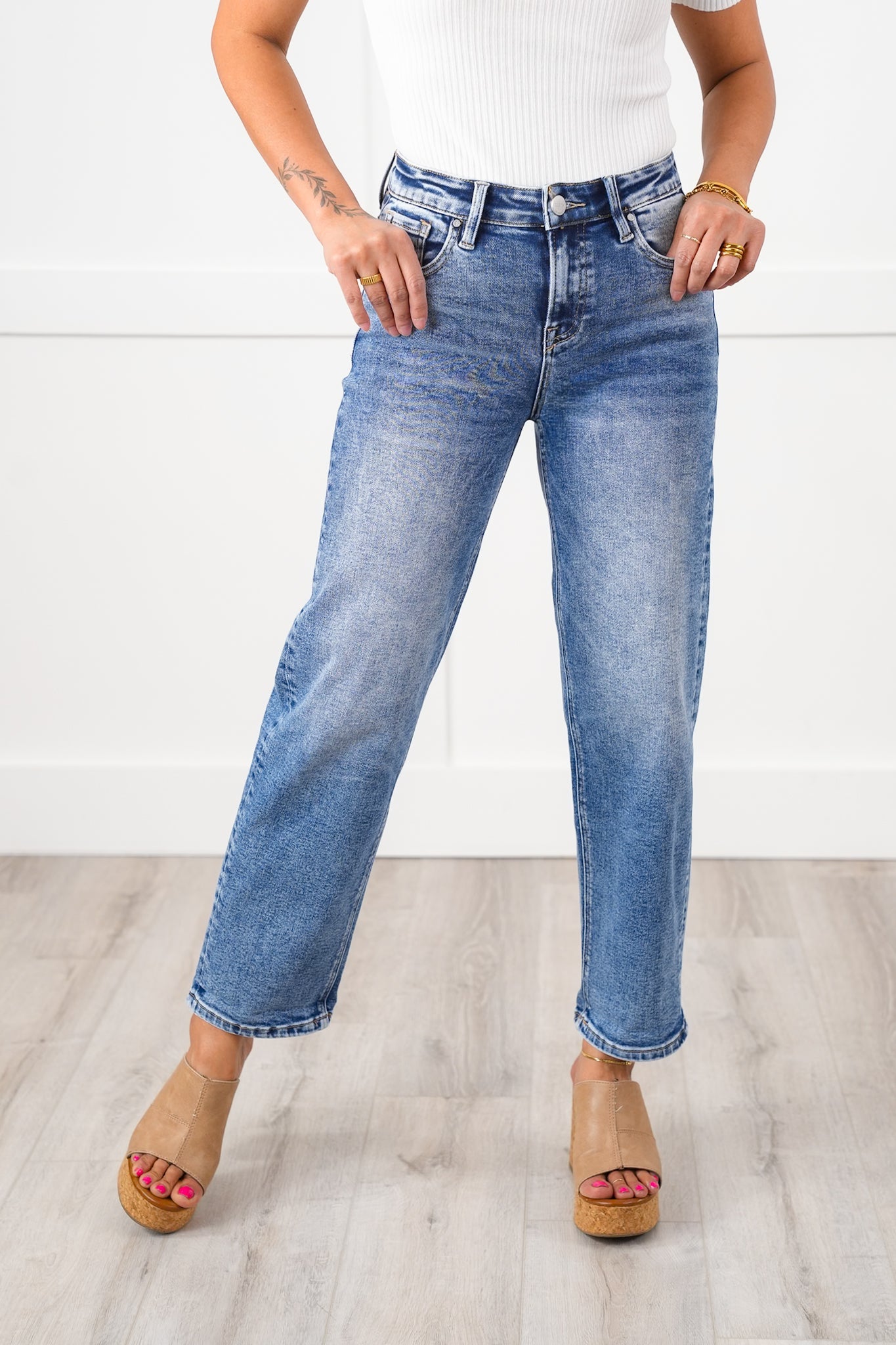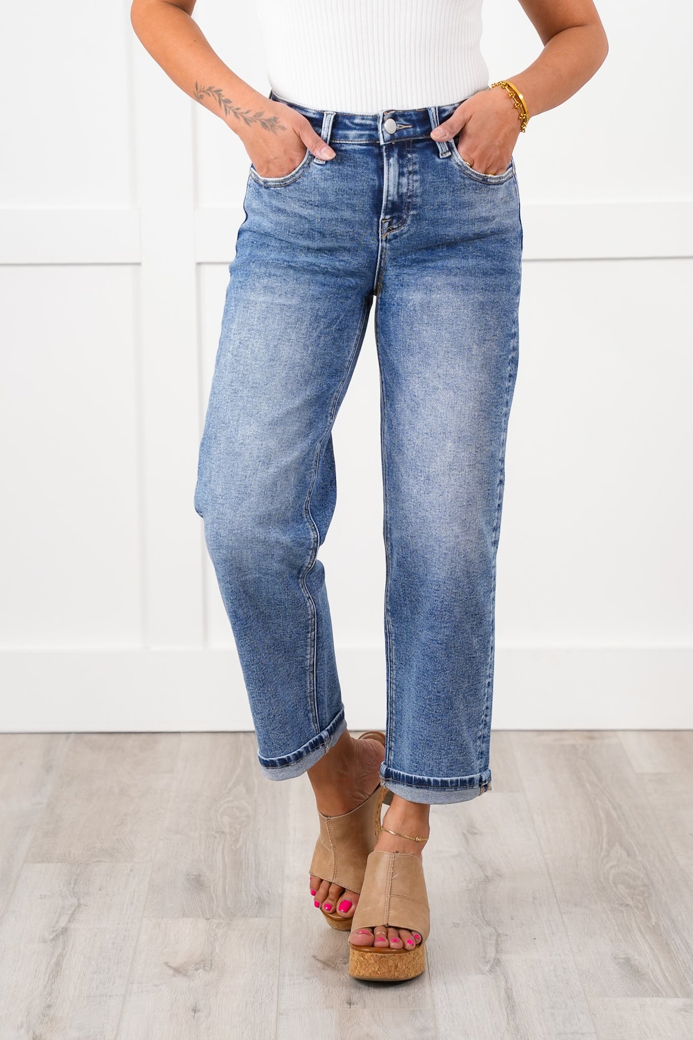 The boyfriend cut is a Freckled Poppy favorite because it flatters ALL figures, is one of the trendiest styles, and is so comfortable! These have a classic medium wash with gorgeous graining that gives an almost acid washed vibe. Plus they are non-distressed with a finished hem and amazing stretch.