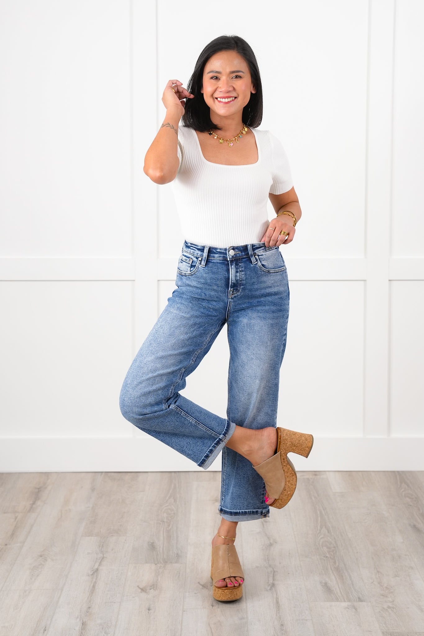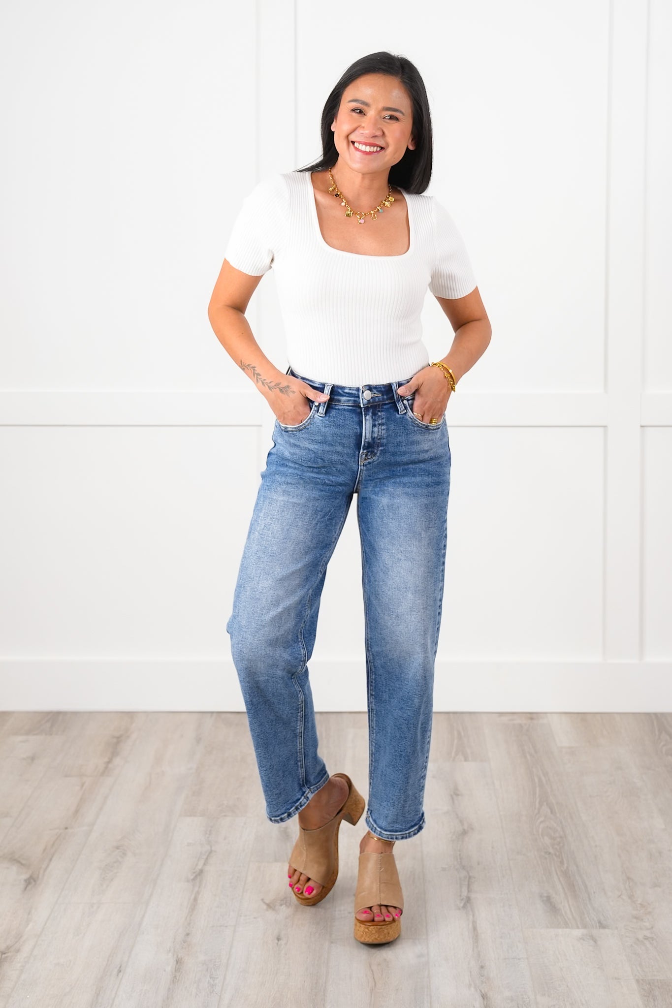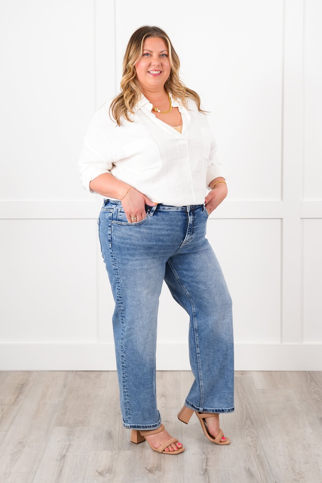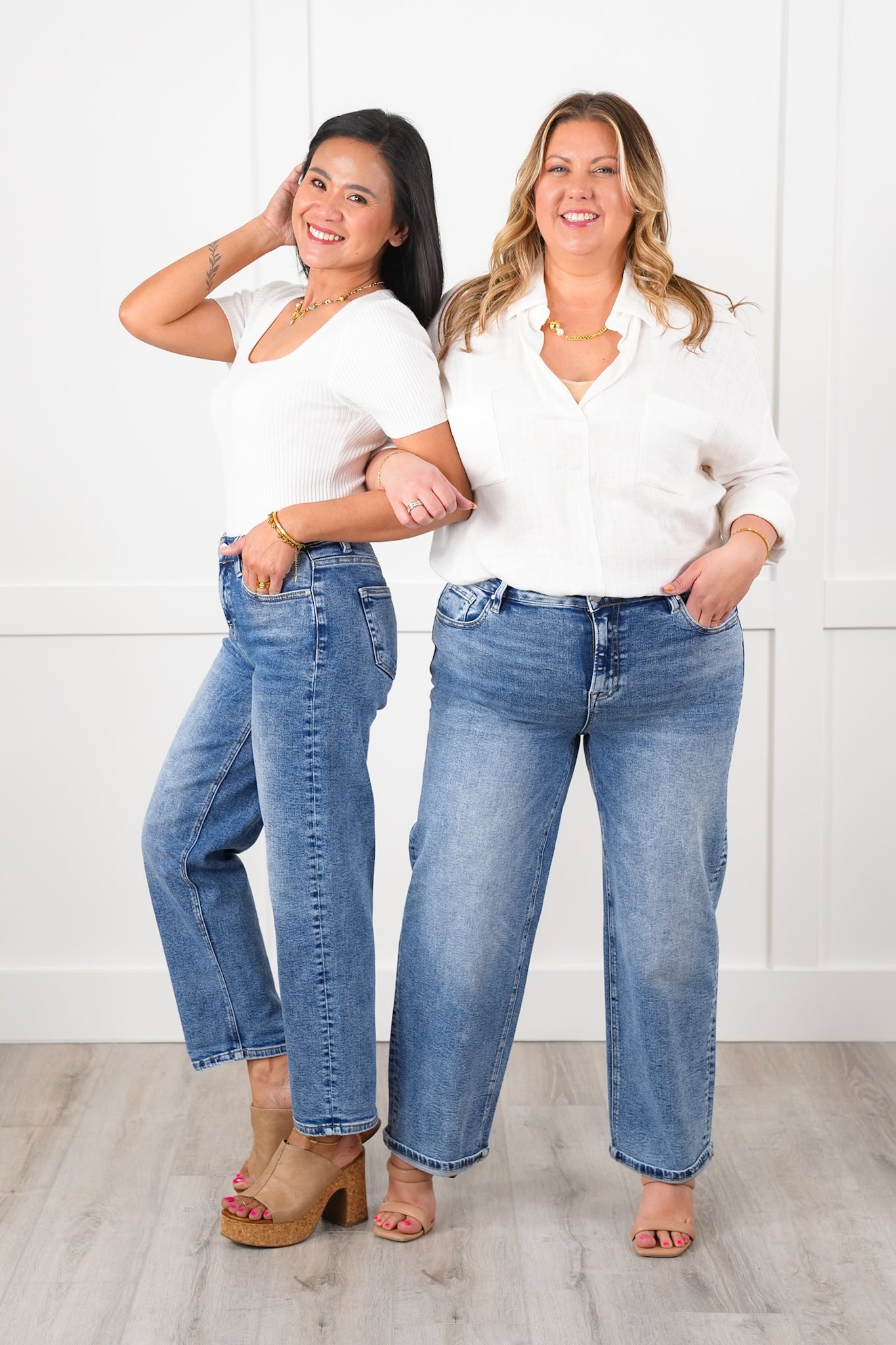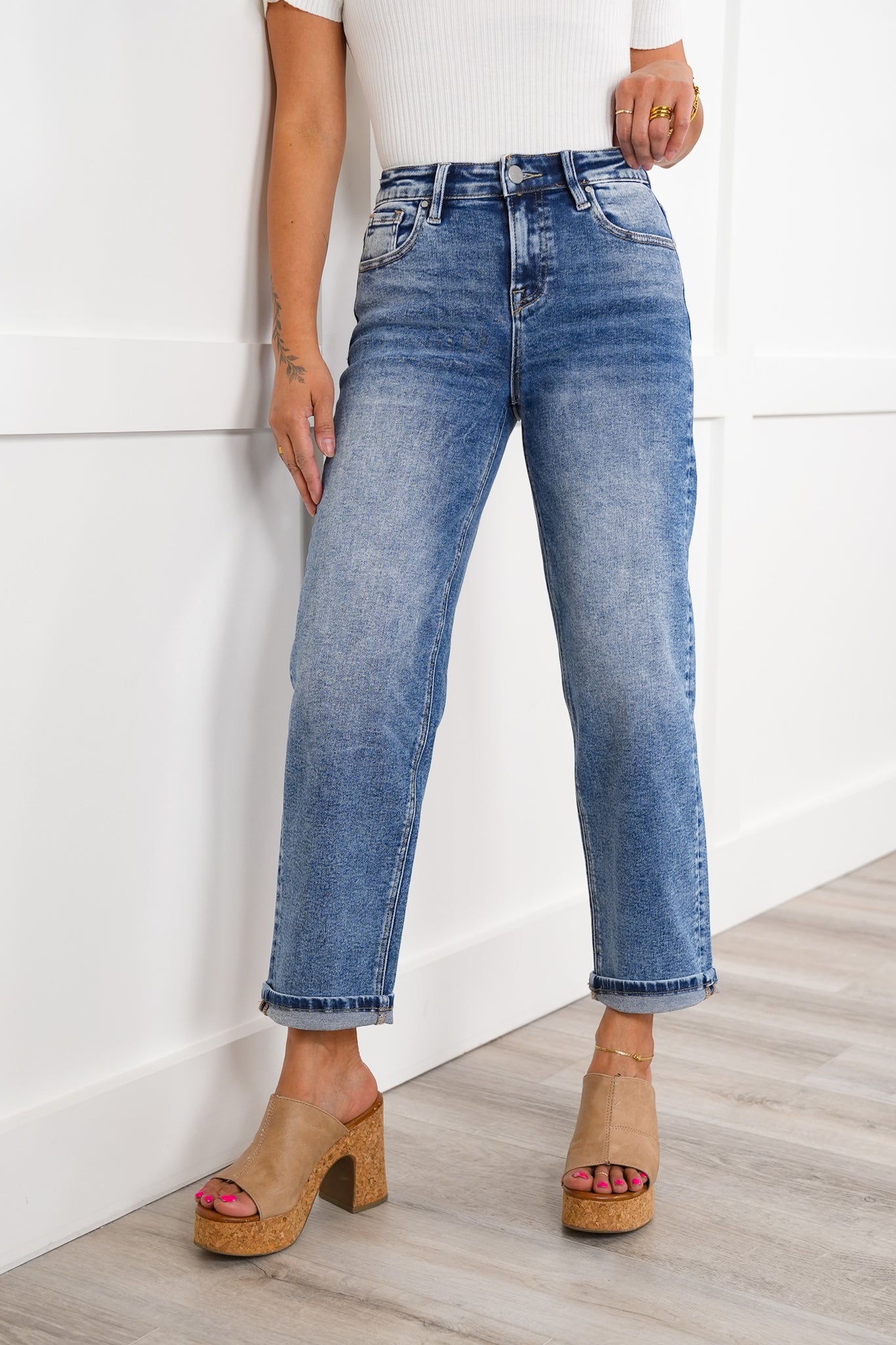 The boyfriend cut is a Freckled Poppy favorite because it flatters ALL figures, is one of the trendiest styles, and is so comfortable! These have a classic medium wash with gorgeous graining that gives an almost acid washed vibe. Plus they are non-distressed with a finished hem and amazing stretch.
