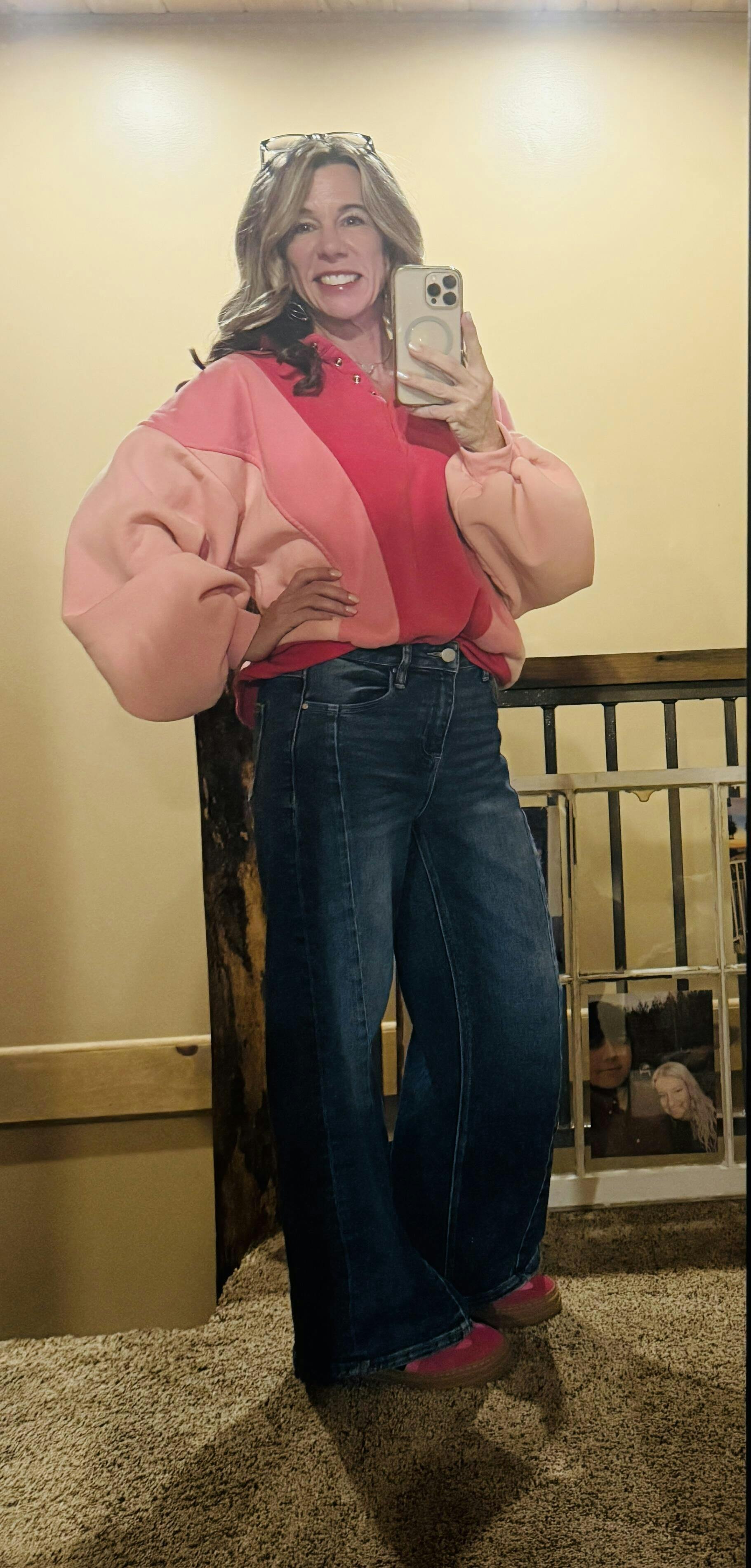 These FP x Risen collab jeans bring all the drama in the best way with a rich dark wash, a polished finished hem, and seam-front detailing that instantly lengthens your legs. The wide leg silhouette gives you that confident, fashion-forward shape, and the stretch is amazing! With four inseams to choose from, every shopper gets their ideal length, making these a must-grab pair for elevated everyday dressing.