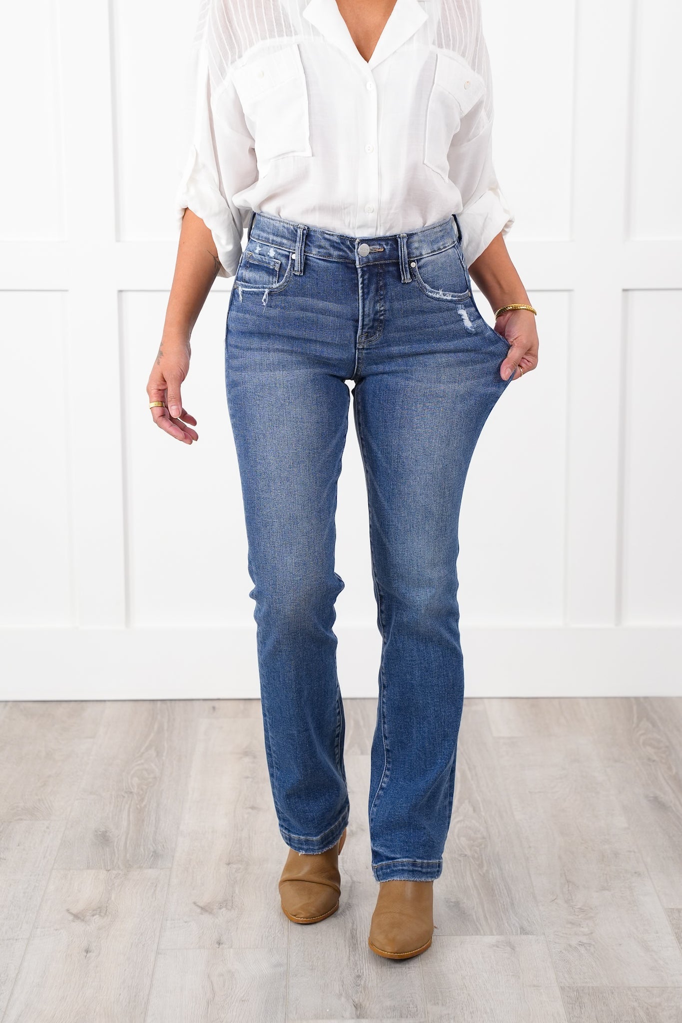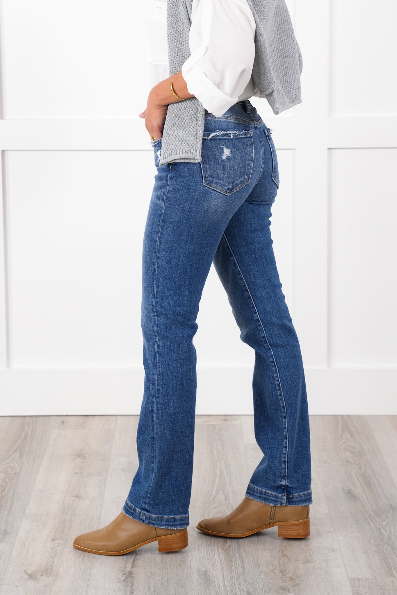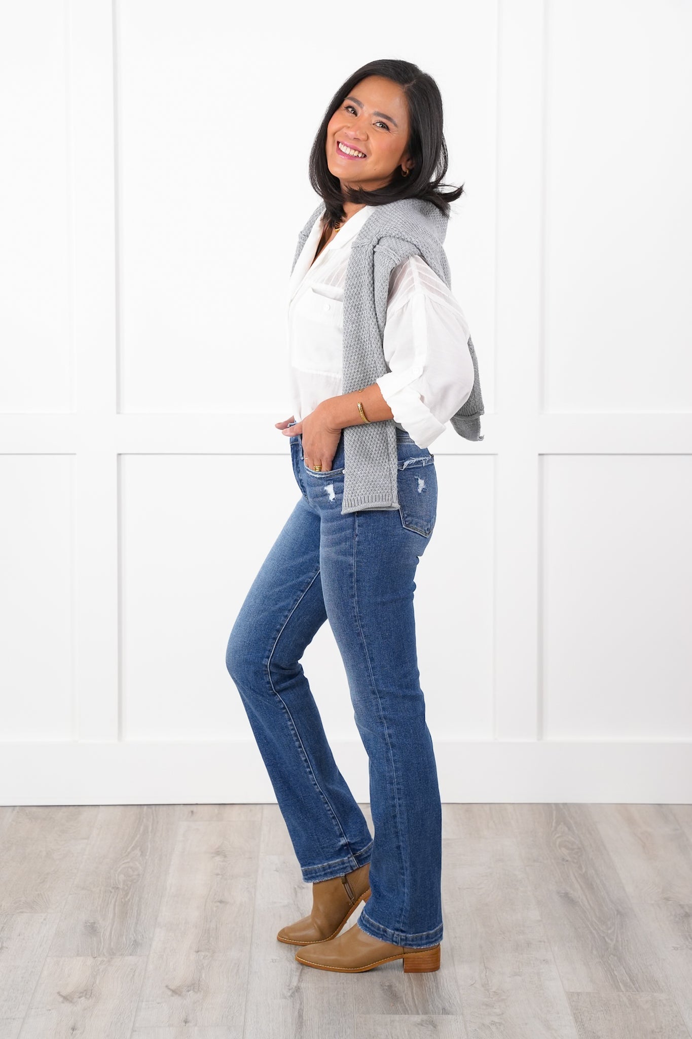 The medium wash has gorgeous whiskering and graining, and the subtle distressing adds a bit of a casual edge! The button/zip closure with the hidden elastic waistband is genius. And did we mention that they have tummy control? Ladies, you will feel SO confident in these jeans! The tummy control panel smooths EVERYTHING out in the most magic way. They are NOT uncomfortable in the tummy.. it's more like the best hug you've ever received. It just magically keeps the area smooth and makes you feel SO confident! Have a c-section pouch? This can help smooth it all out with ultimate comfort!