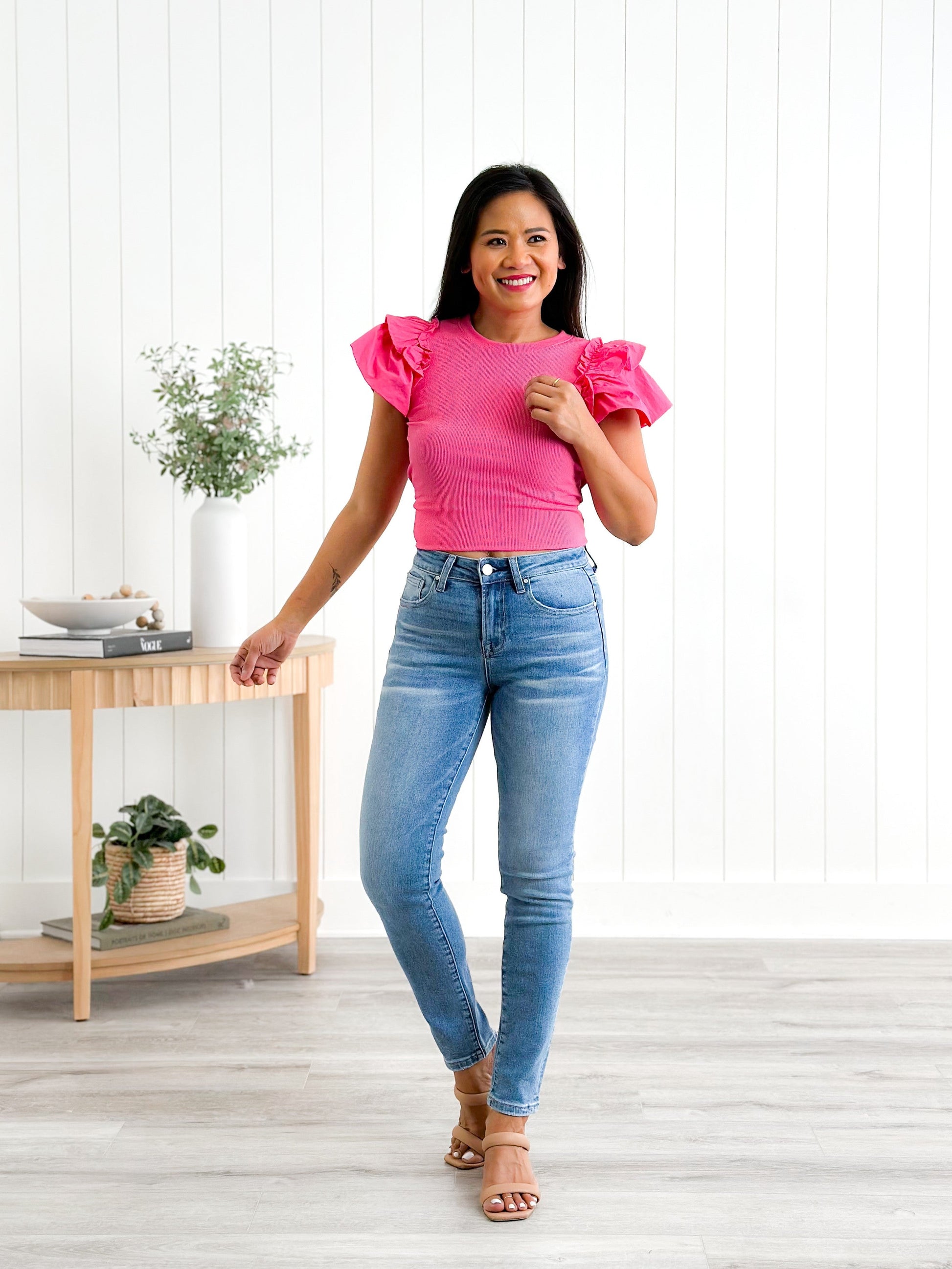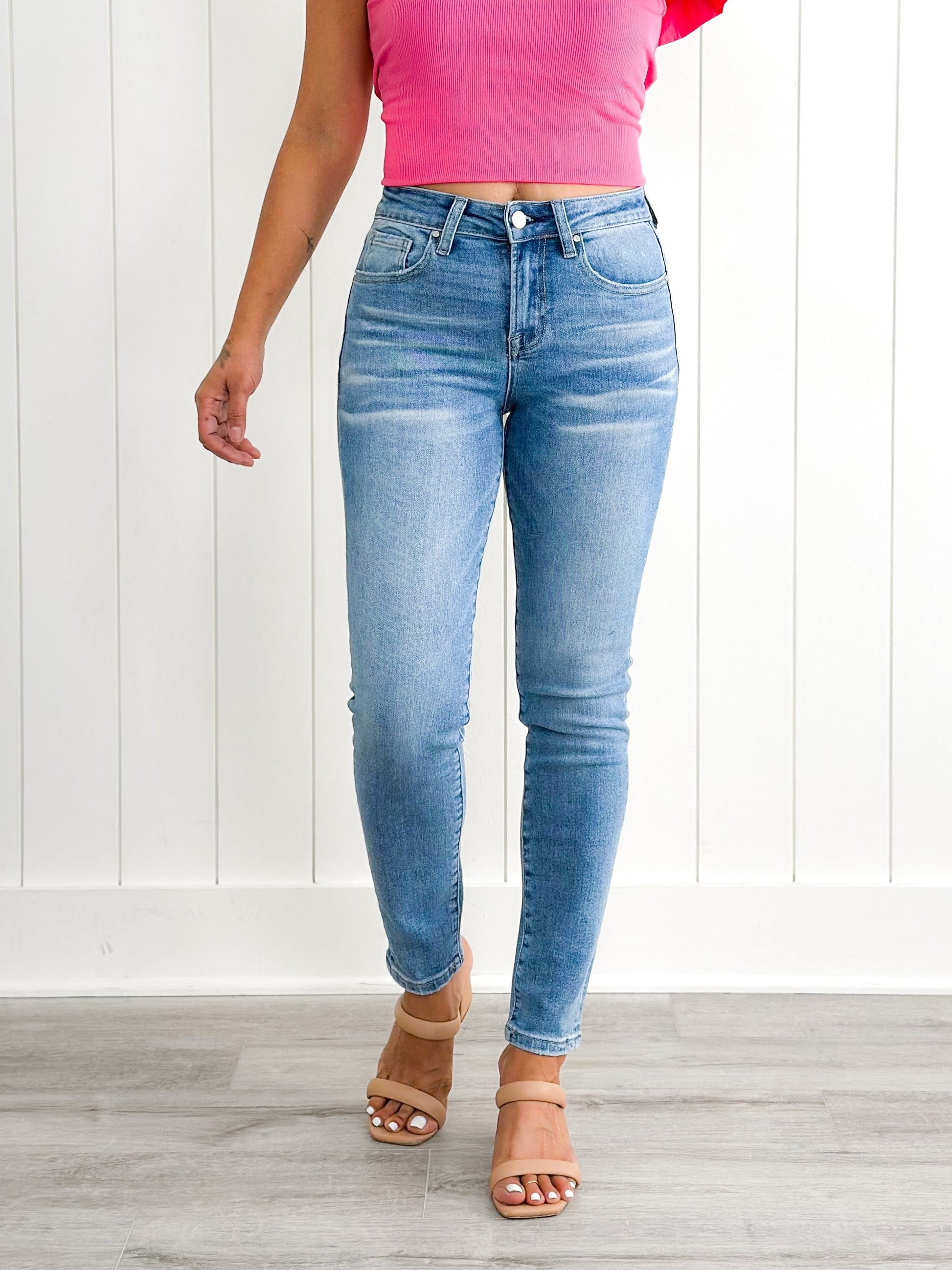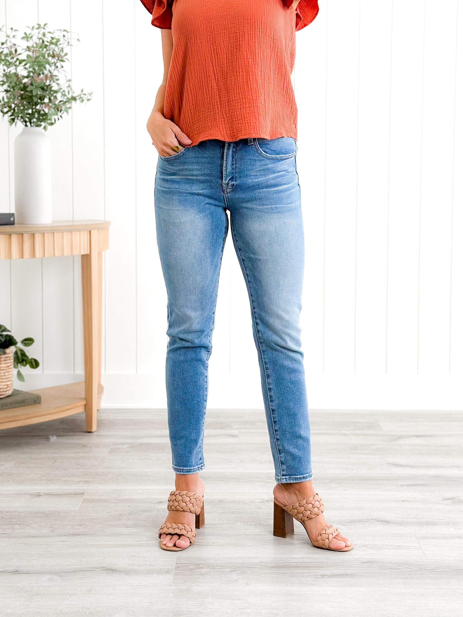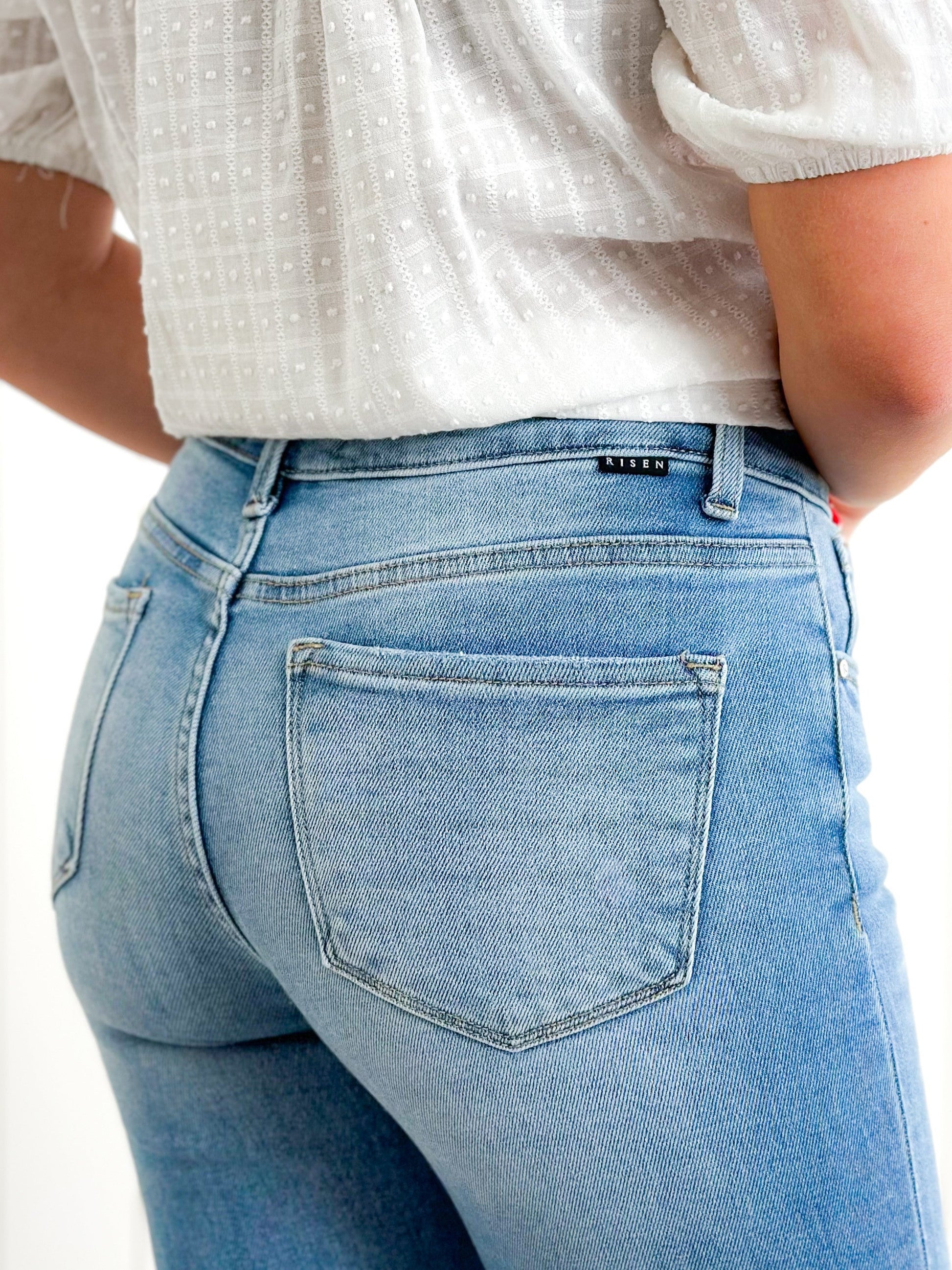 Risen Mid Rise Medium Wash Relaxed Skinny Jeans