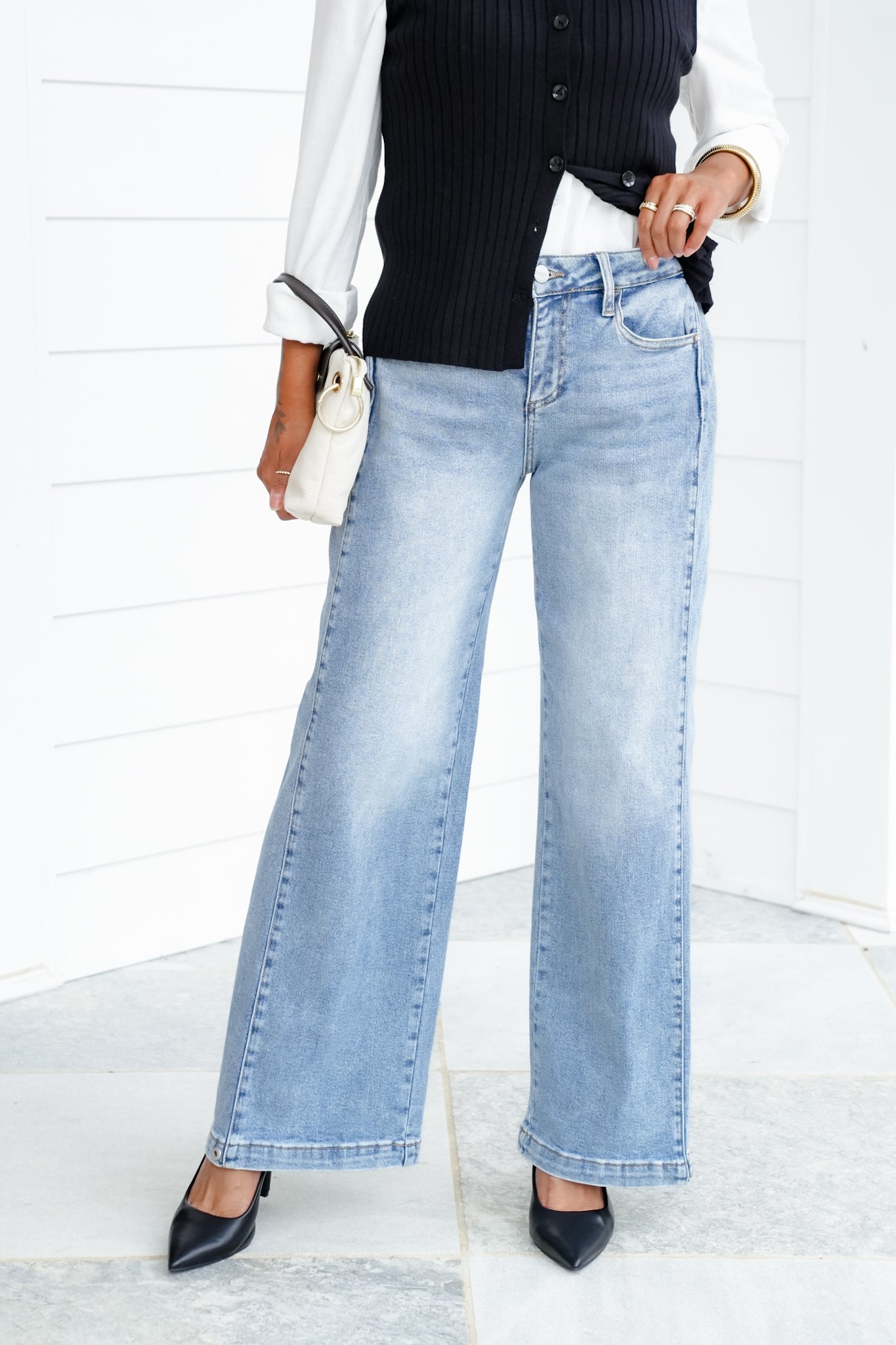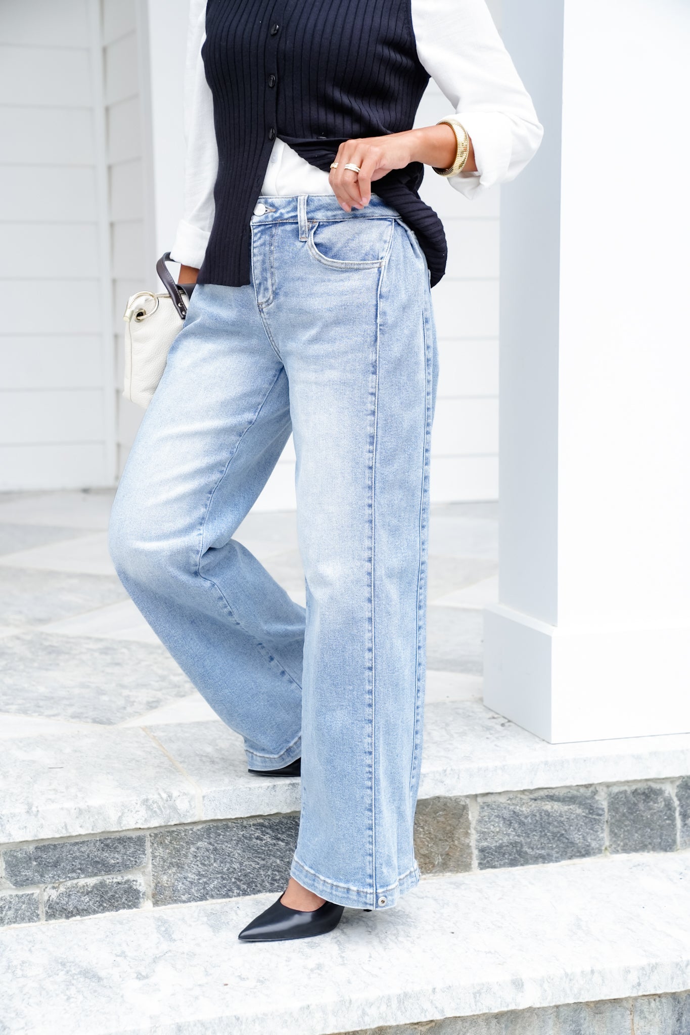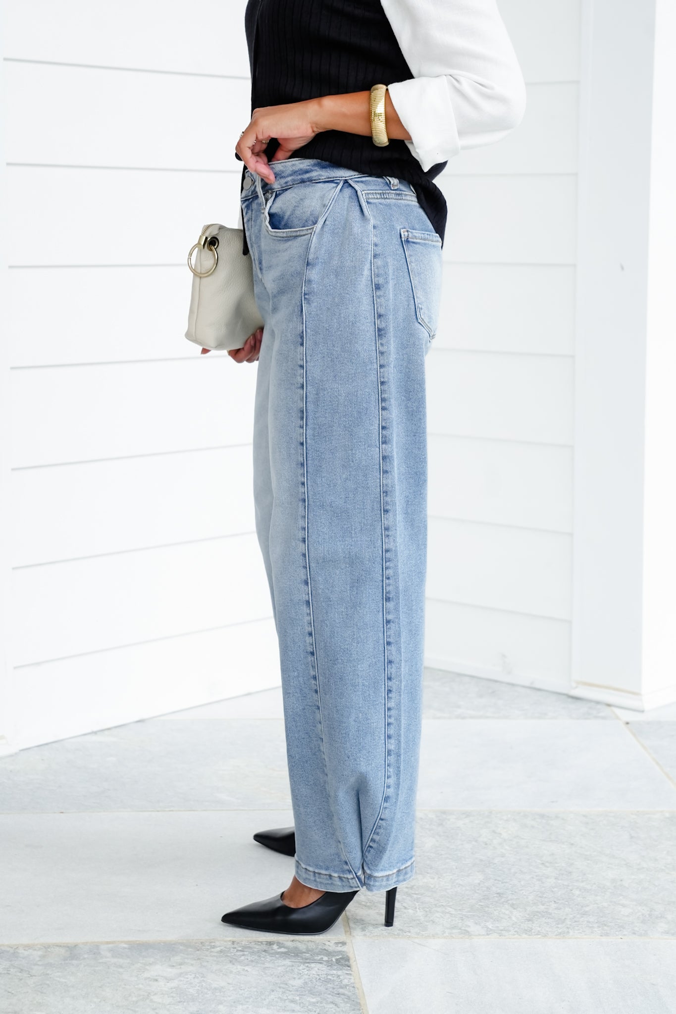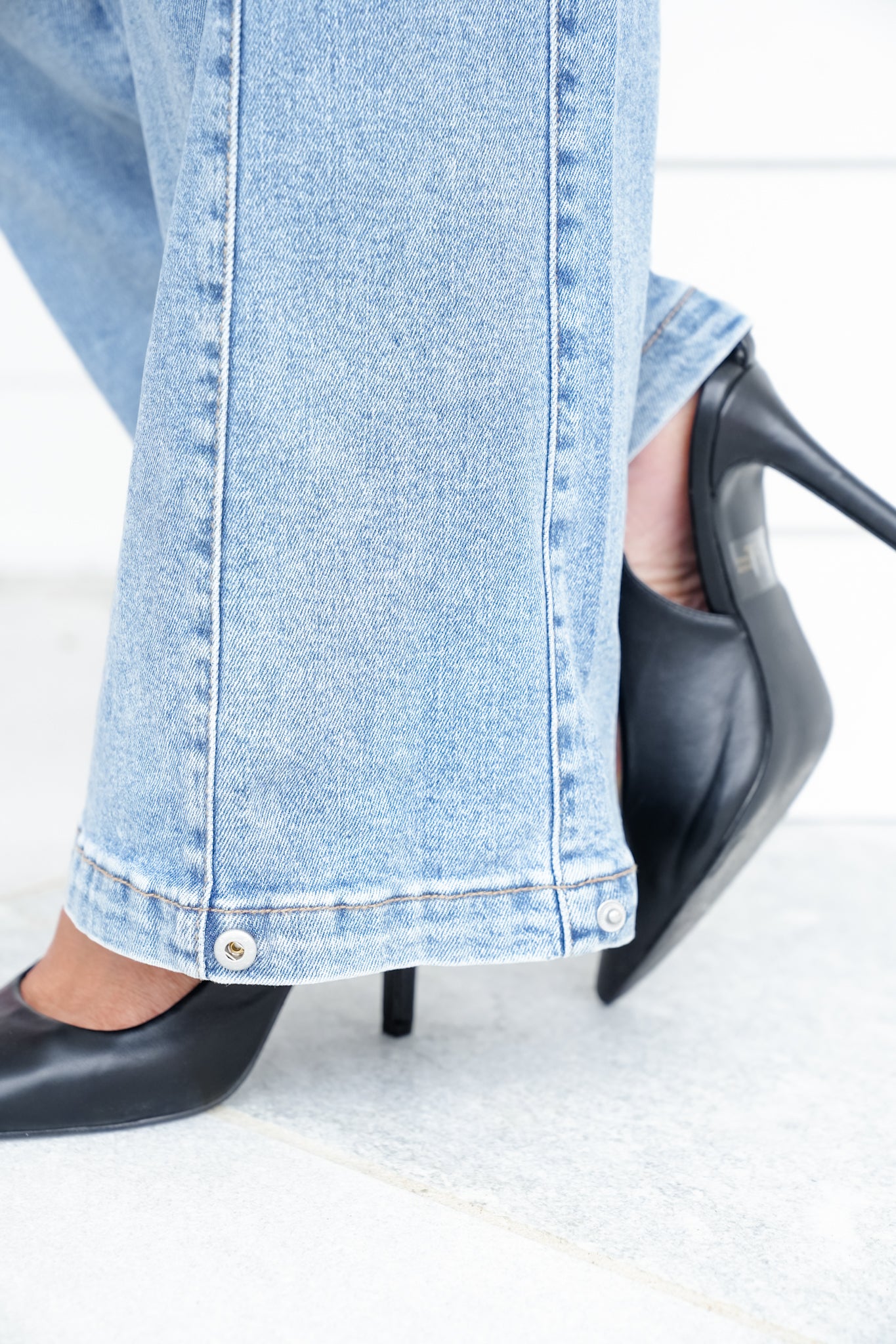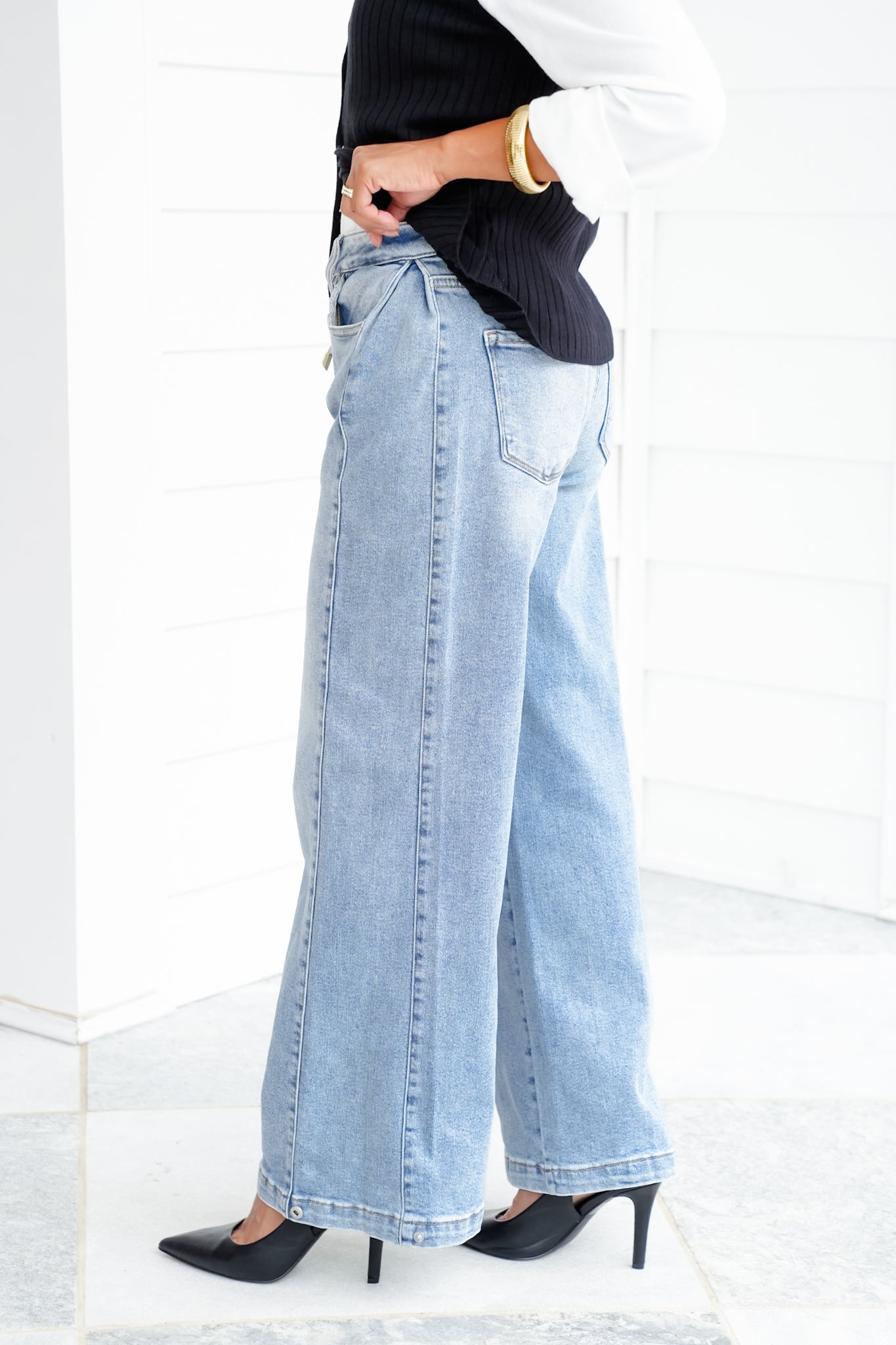 These Risen wide leg jeans are total outfit transformers! The side seam snaps at the ankle are the game-changer. Keep them buttoned for a barrel leg look that’s trending everywhere, or pop them open for a laid-back wide leg.