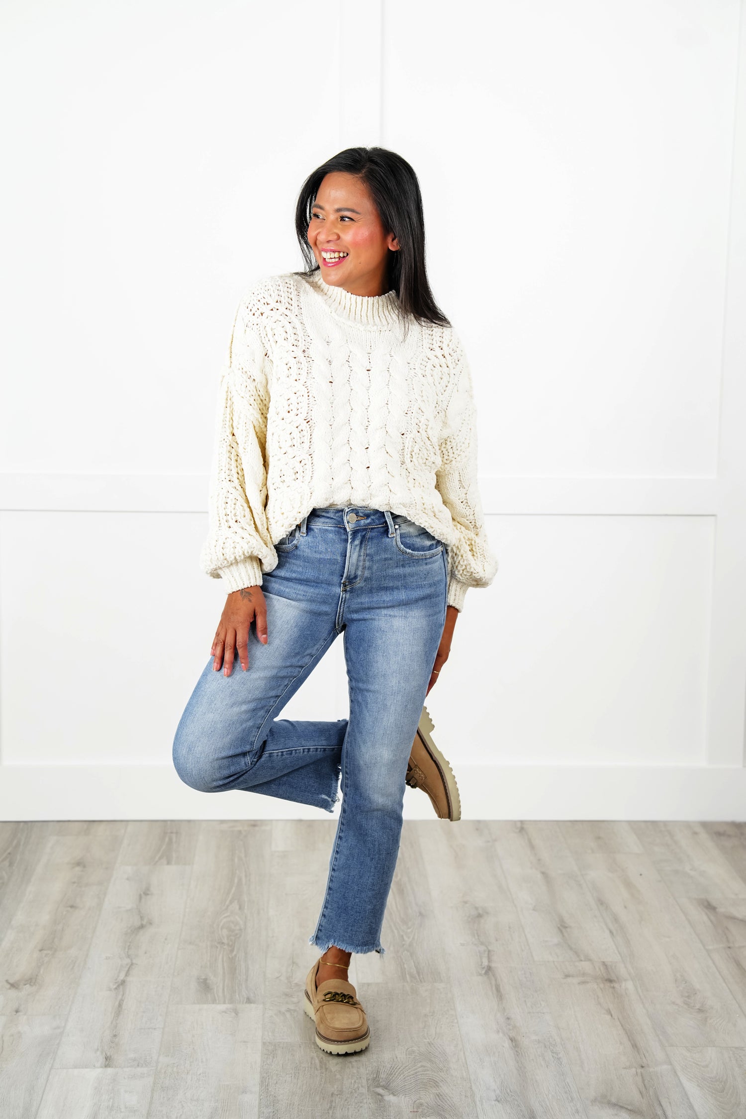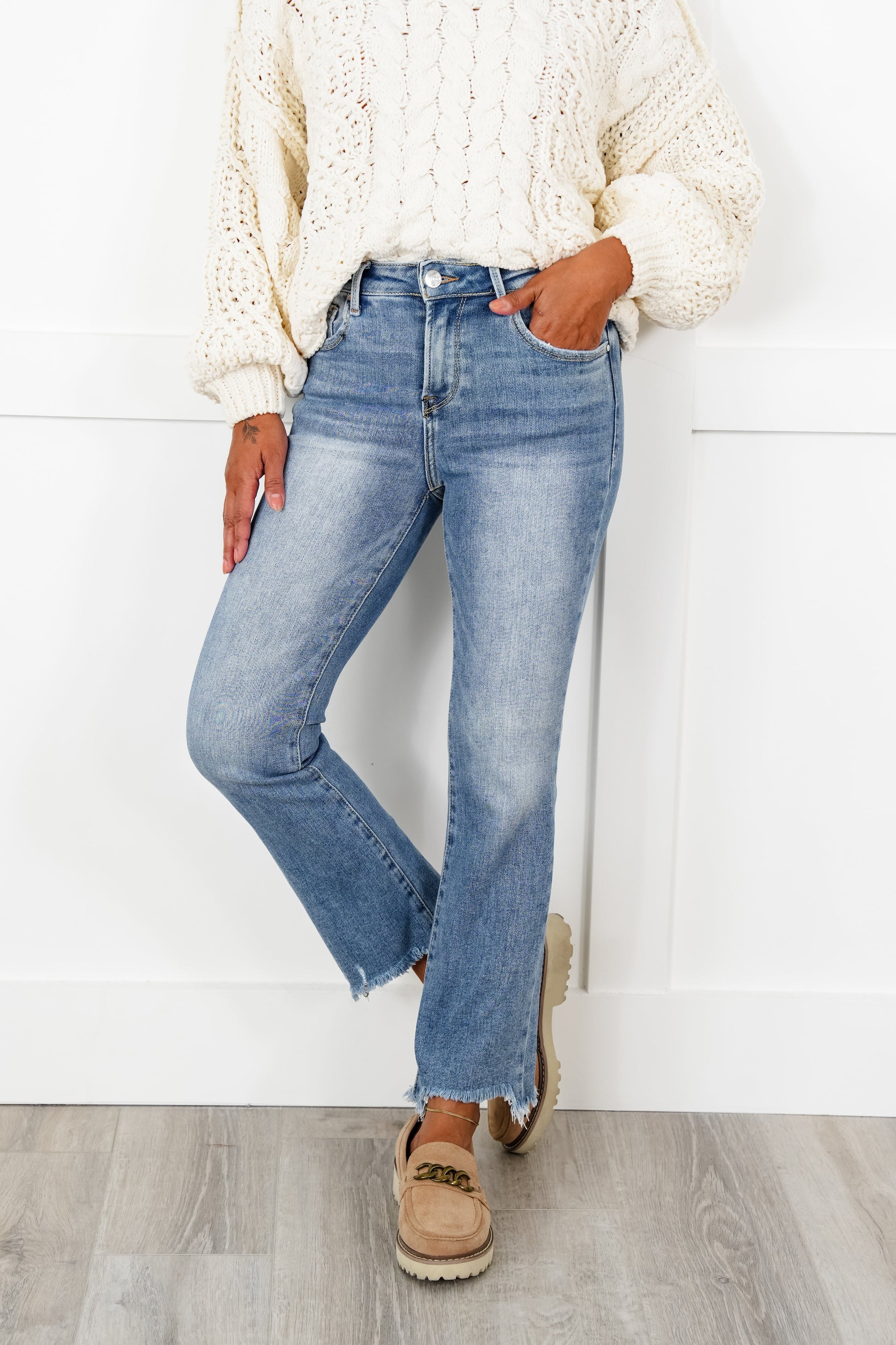 These Risen jeans are SO comfortable and feel like a dream! They mold to your body in the most perfect way and finish off with a trendy straight fit! We love straight fits, as they make your legs look so long! They are perfect for showing off your favorite booties!