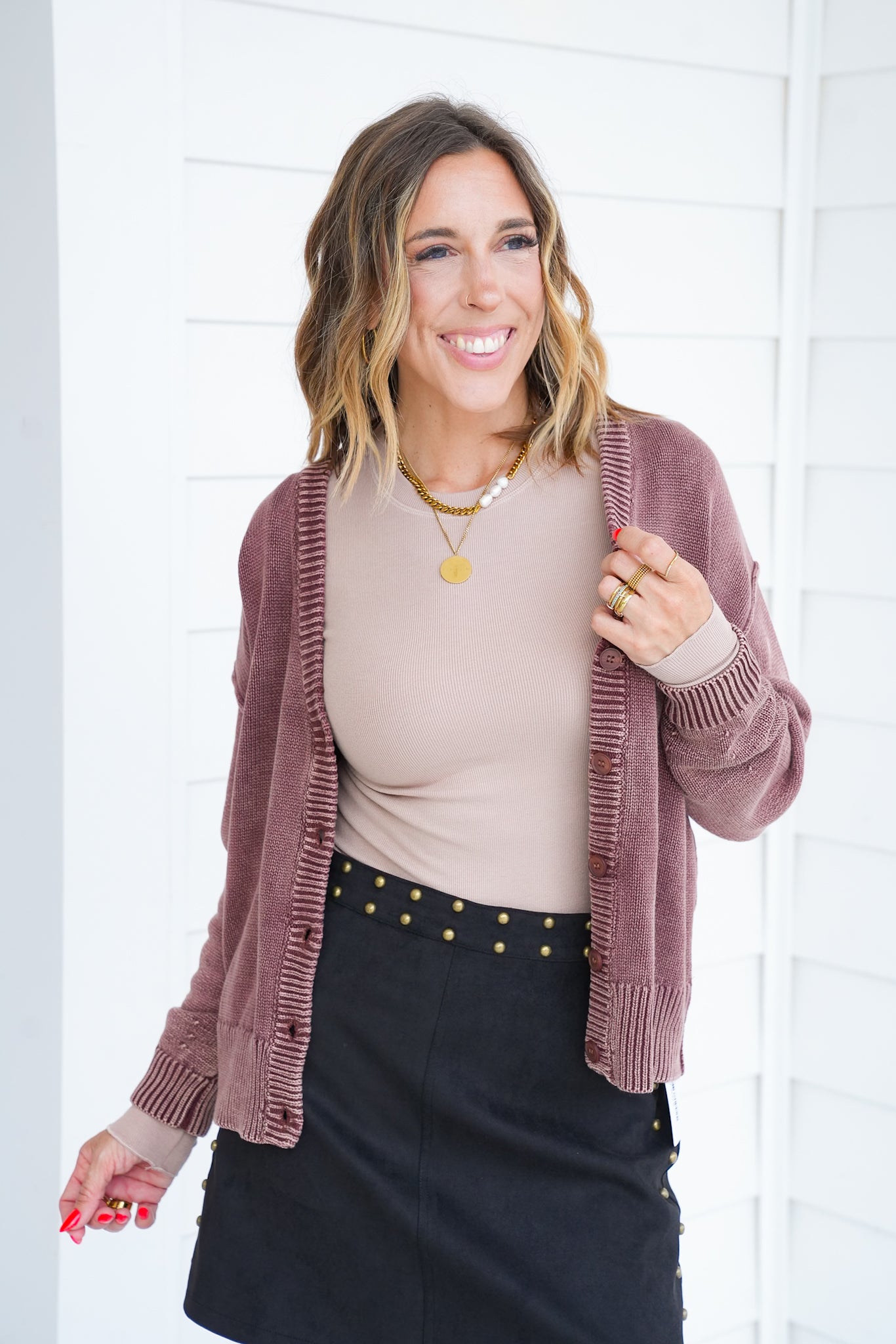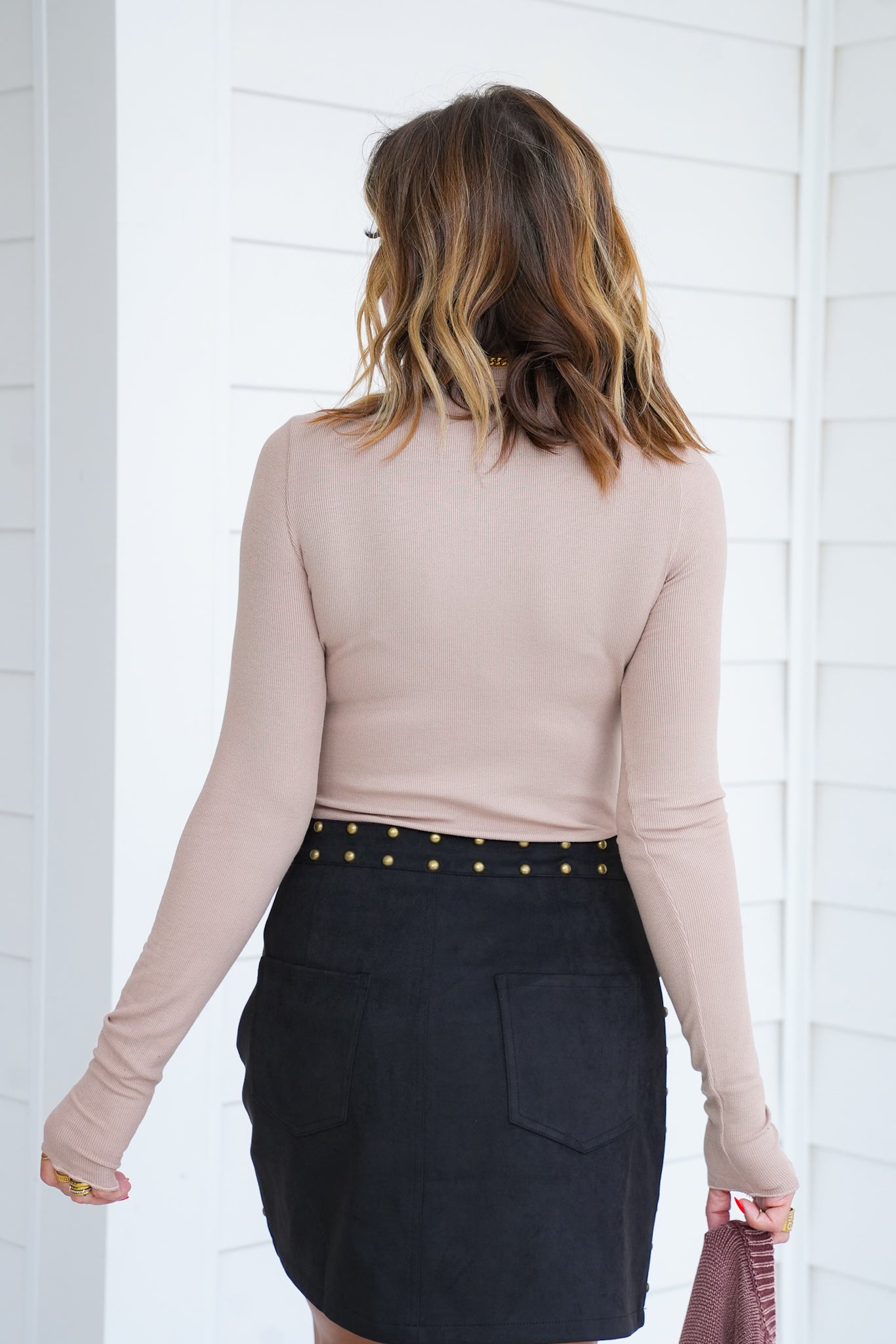 This fitted ribbed knit top is that everyday staple you’ll be reaching for again and again. The fabric is lightweight yet stretchy, giving it a smooth and flattering fit that’s easy to tuck into skirts, jeans, or trousers. The round neckline keeps it classic, while the sleek shape makes it an effortless layering piece.