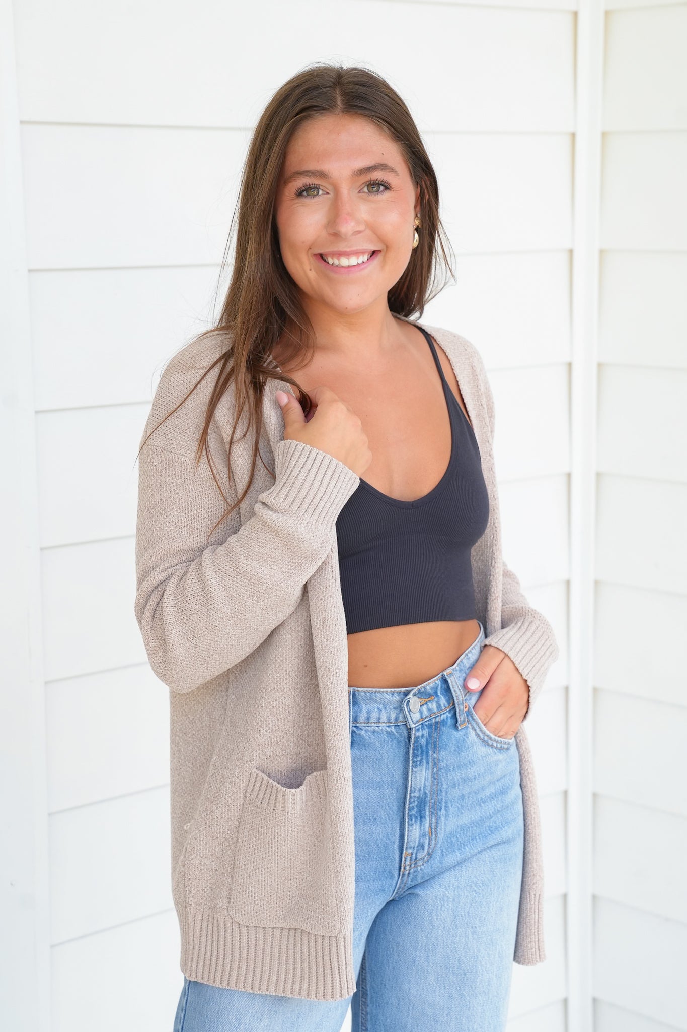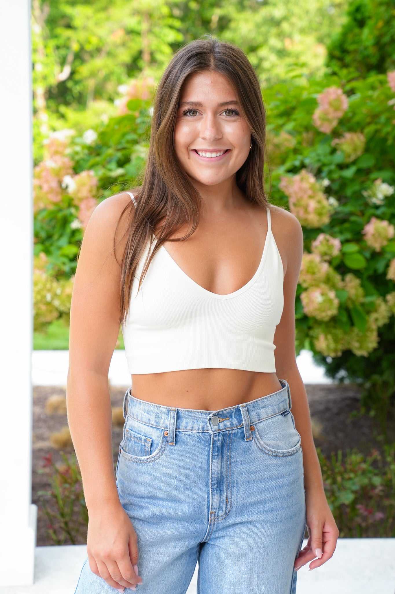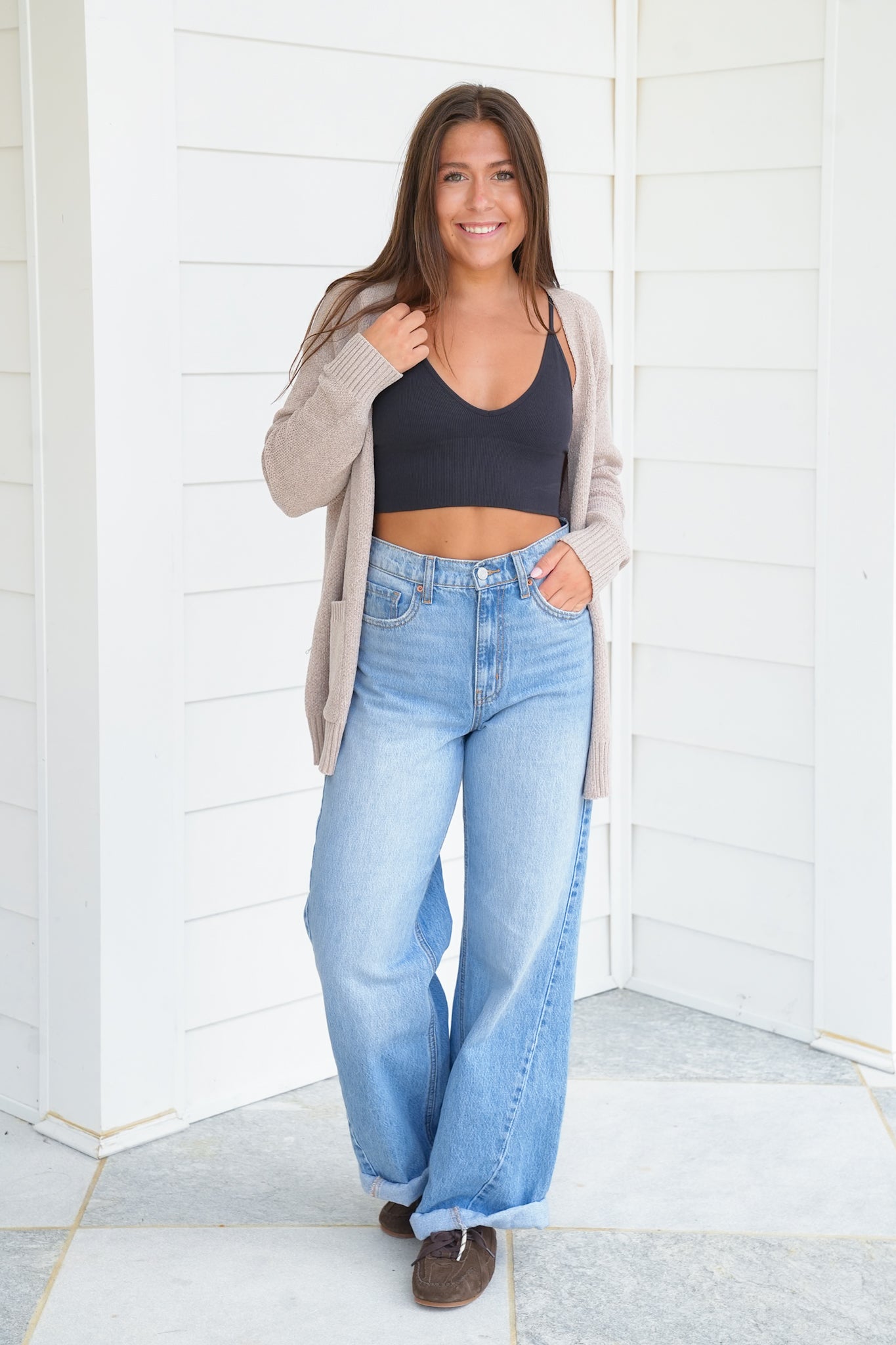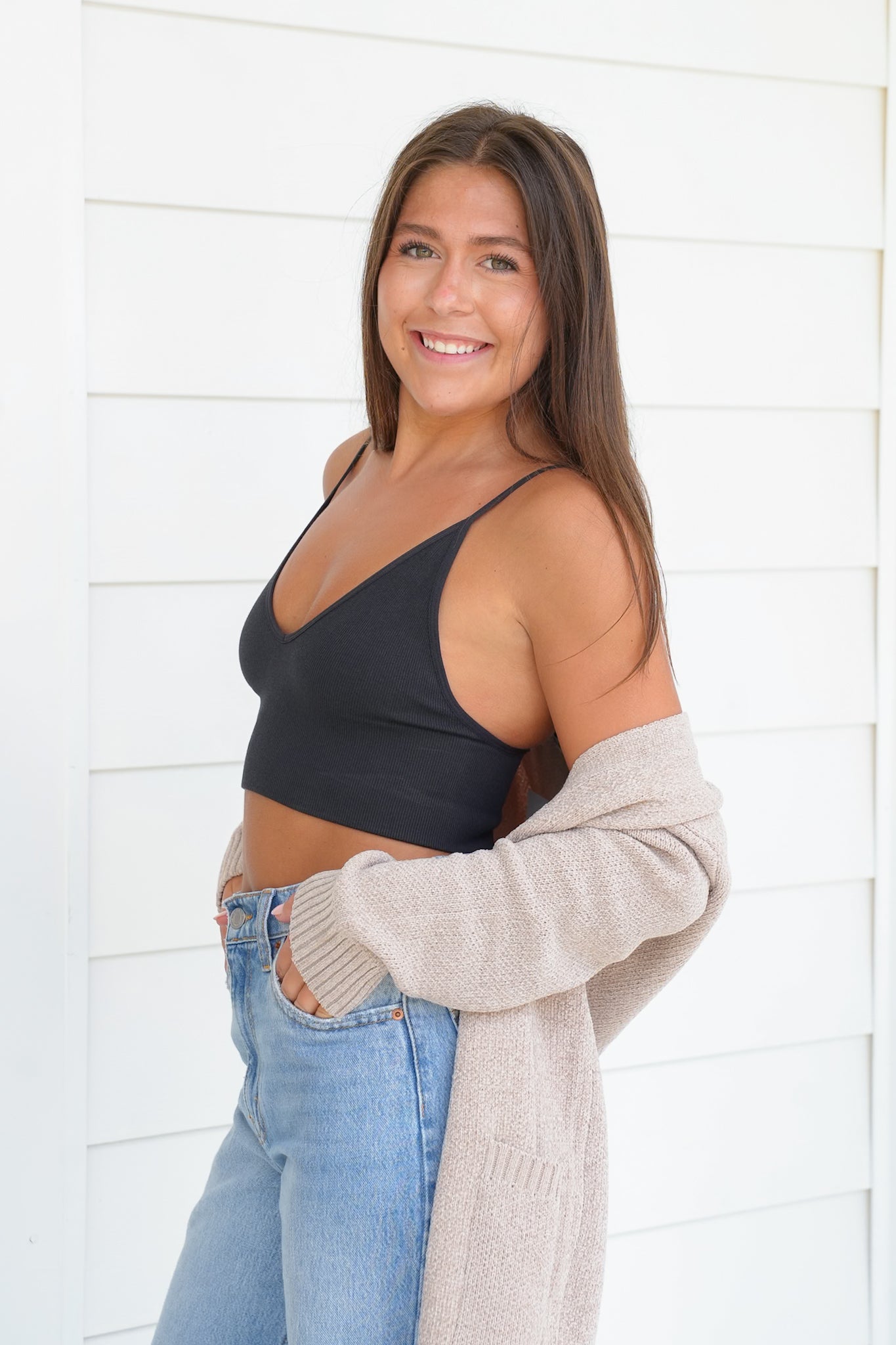 This ribbed brami is the ultimate base layer you’ll live in. It’s soft, seamless, and stretchy, making it perfect for wearing under cardigans, jackets, or blazers. Or, keep it simple with joggers or denim shorts for a comfy yet on-trend look.