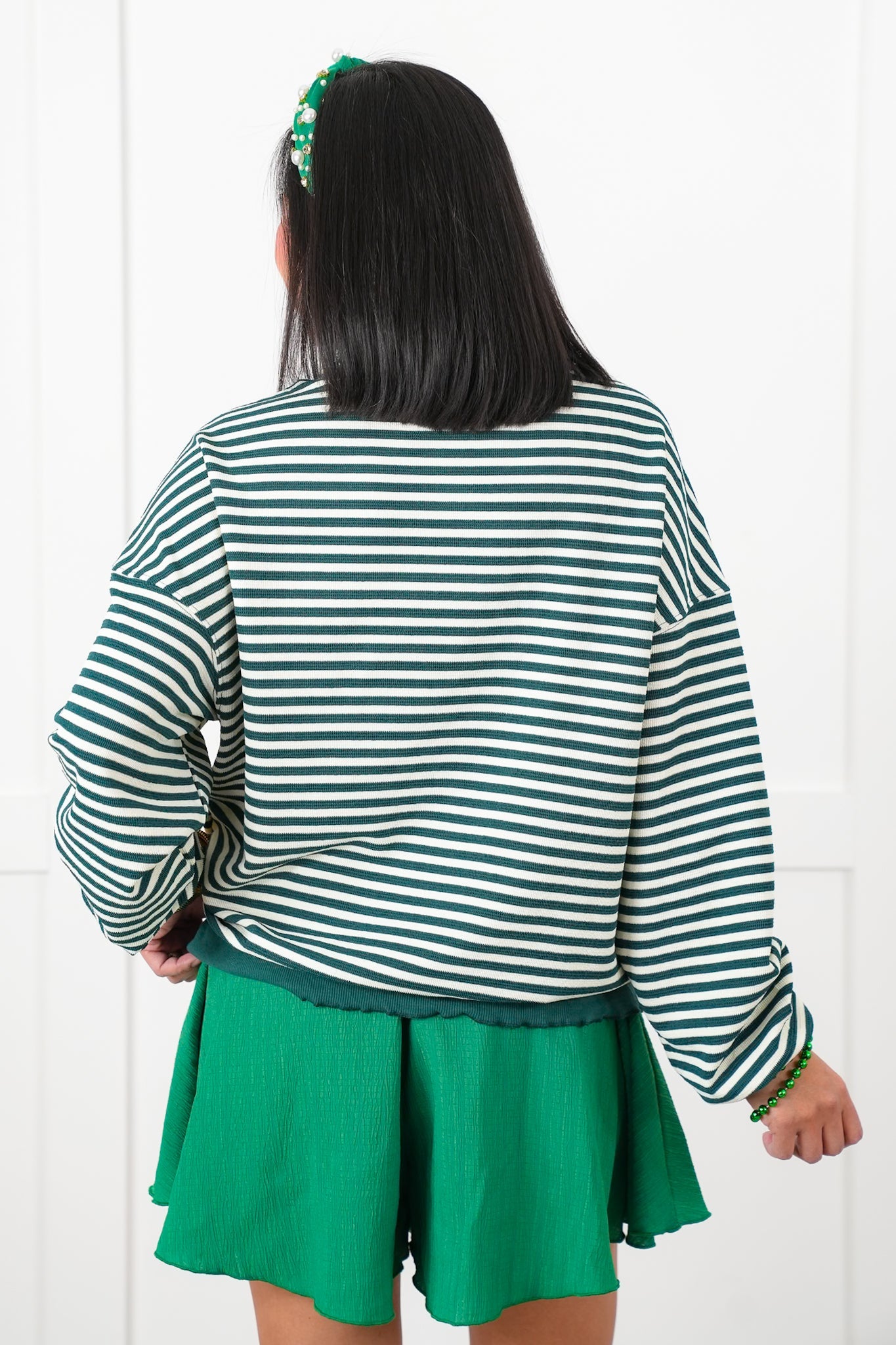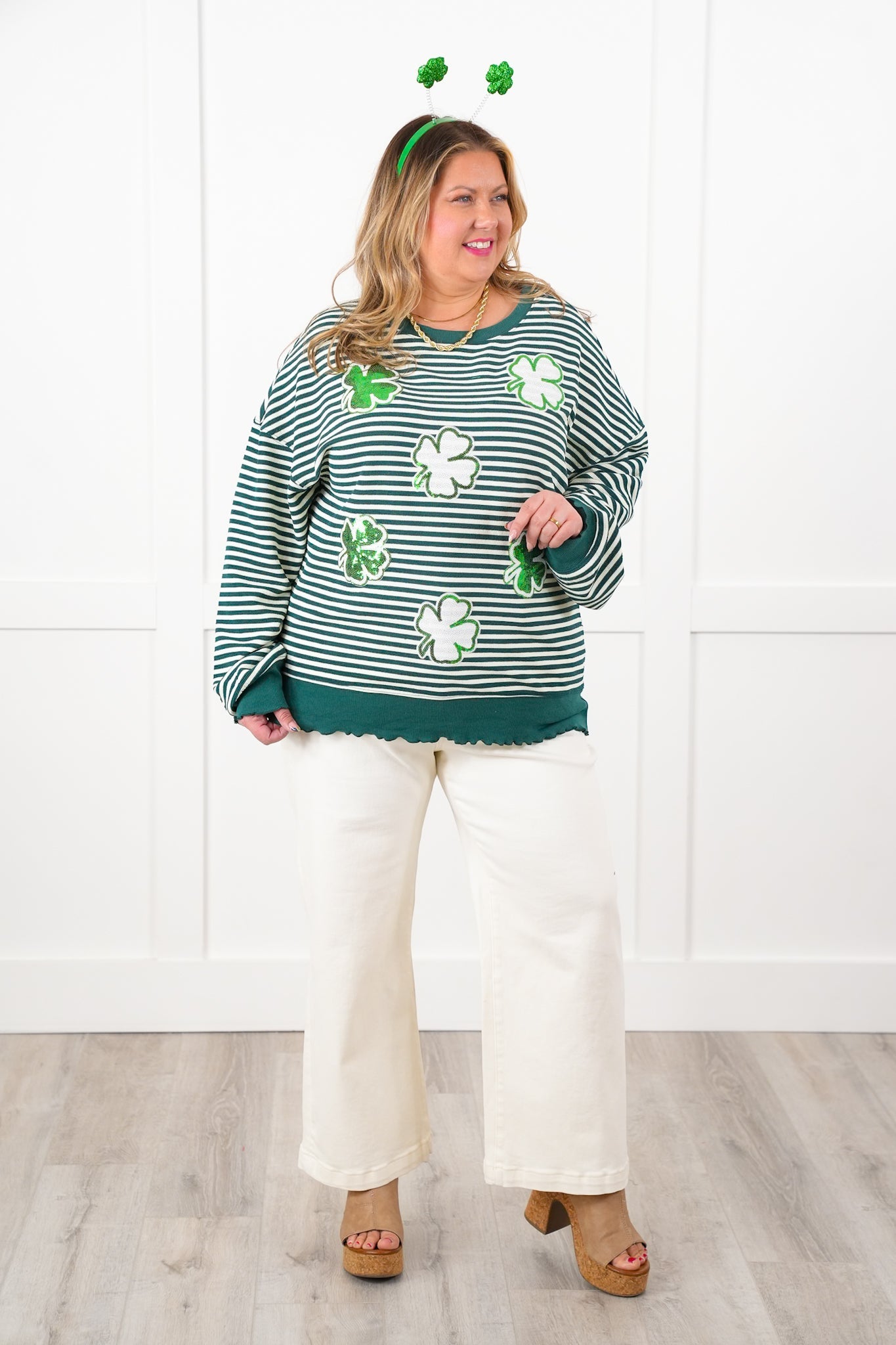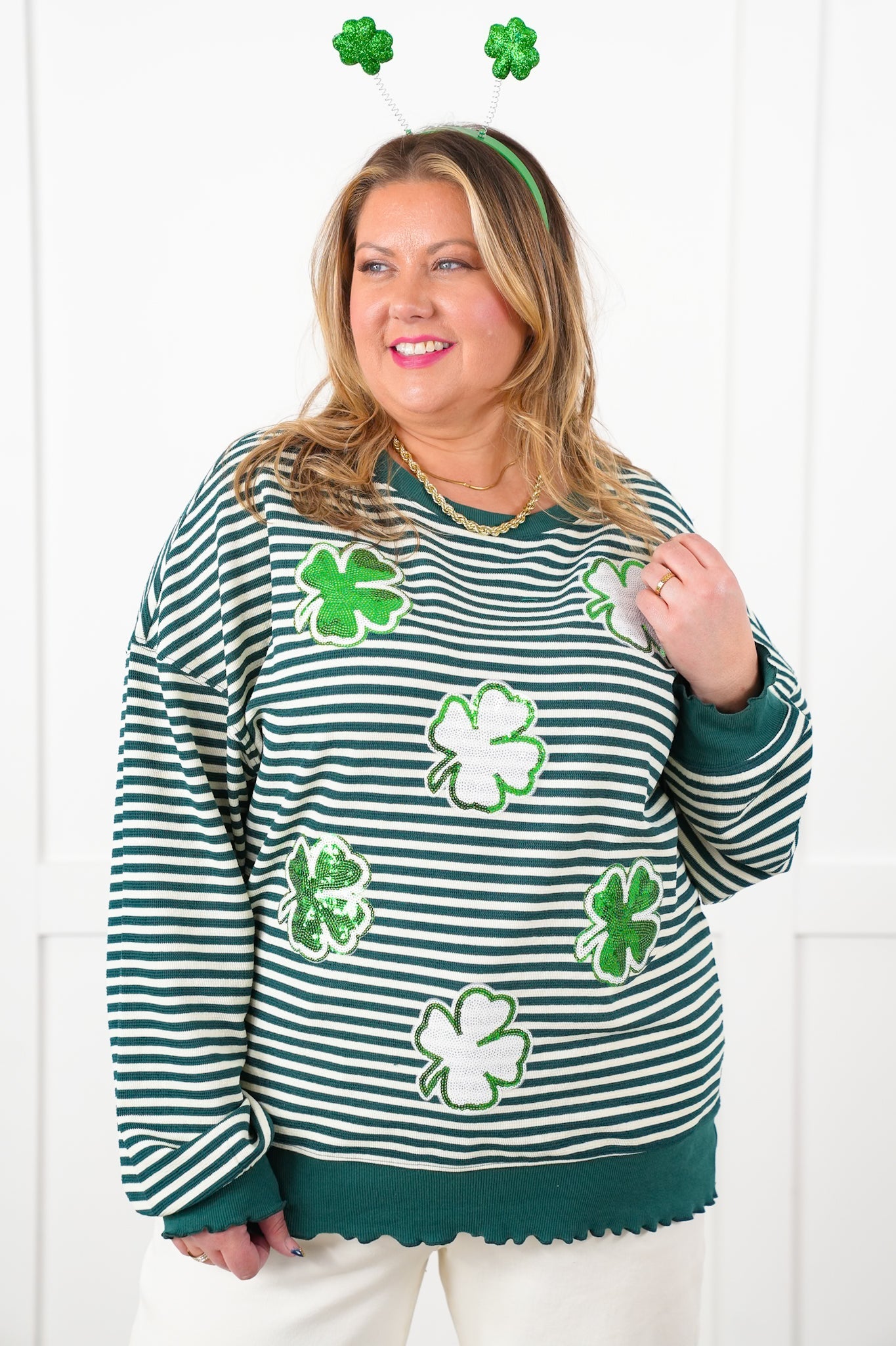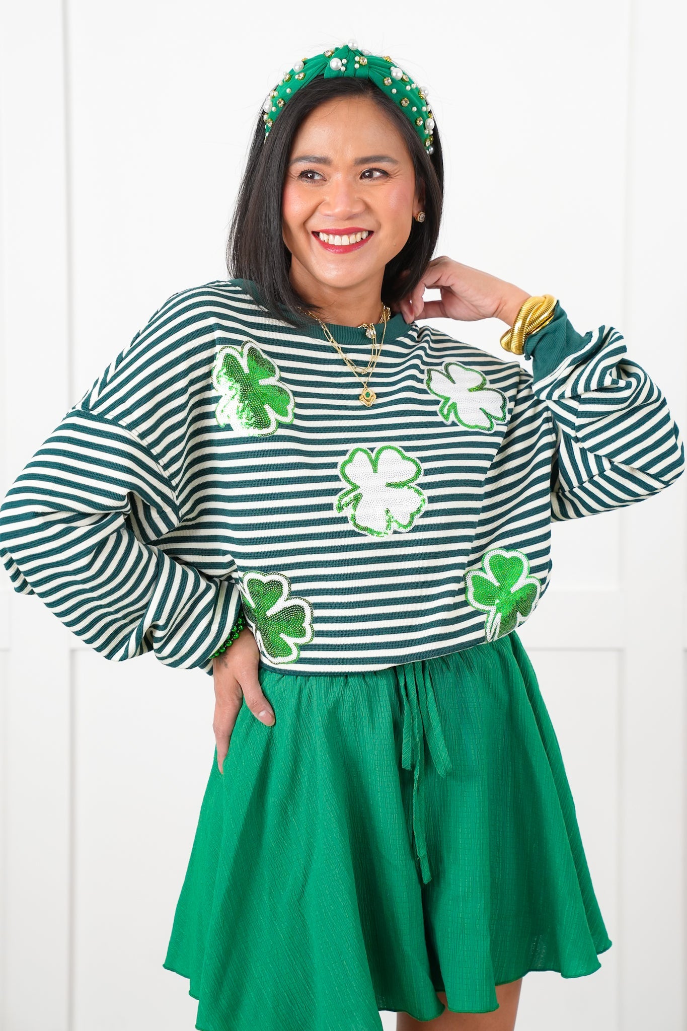 Sequin 4 Leaf Clover Stripe Long Sleeve Top