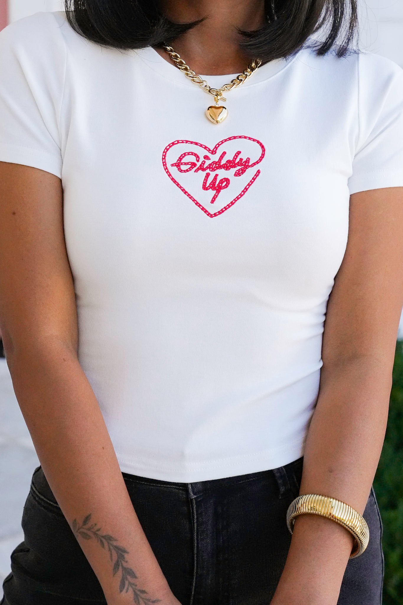 Short Sleeve Embroidered "Giddy Up" Tee