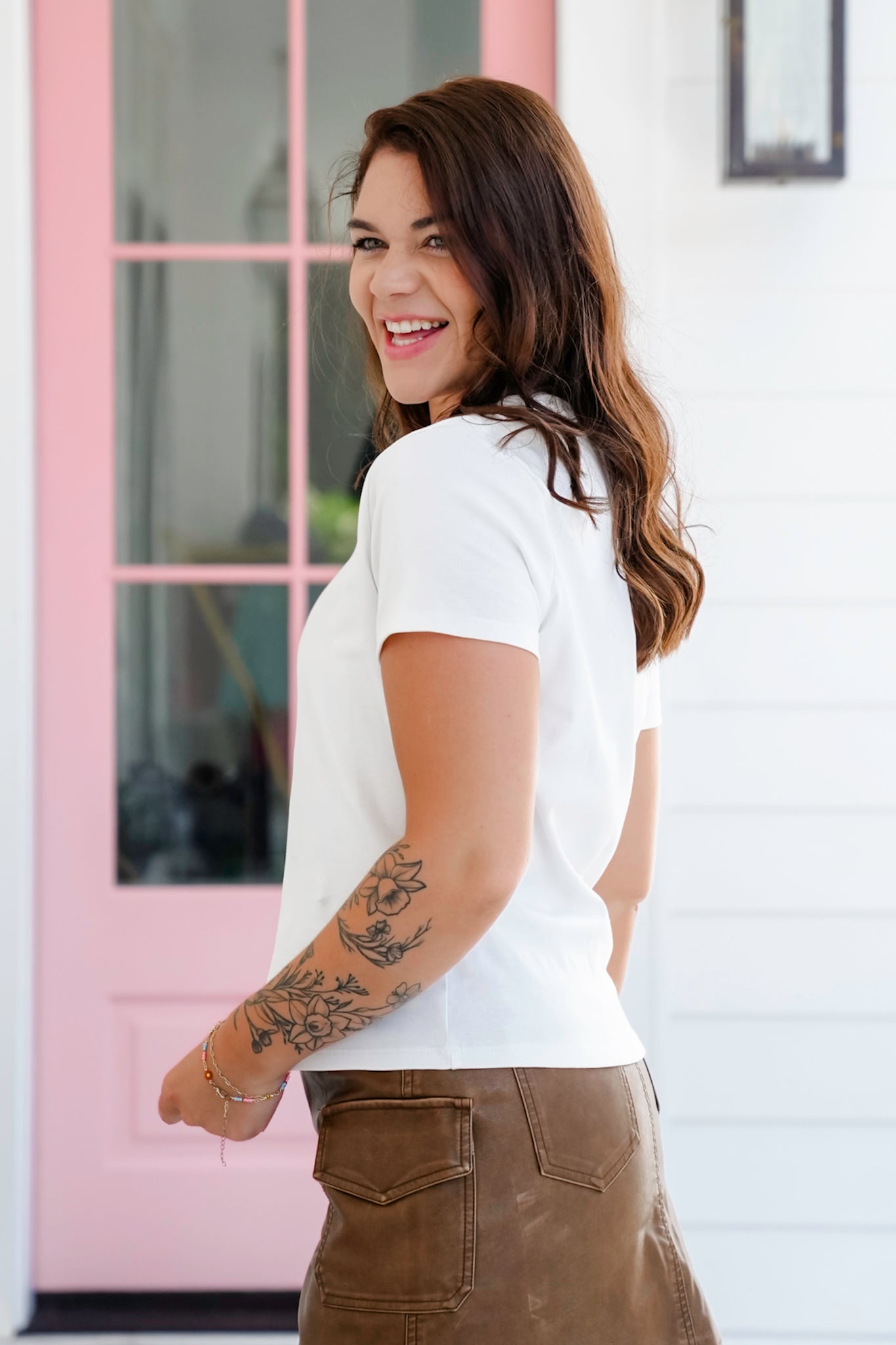 Fit: This has a relaxed fit that gives you comfortable room without feeling boxy. Stay true to size for that laid-back, easygoing look that works perfectly for tucking, knotting, or wearing loose.