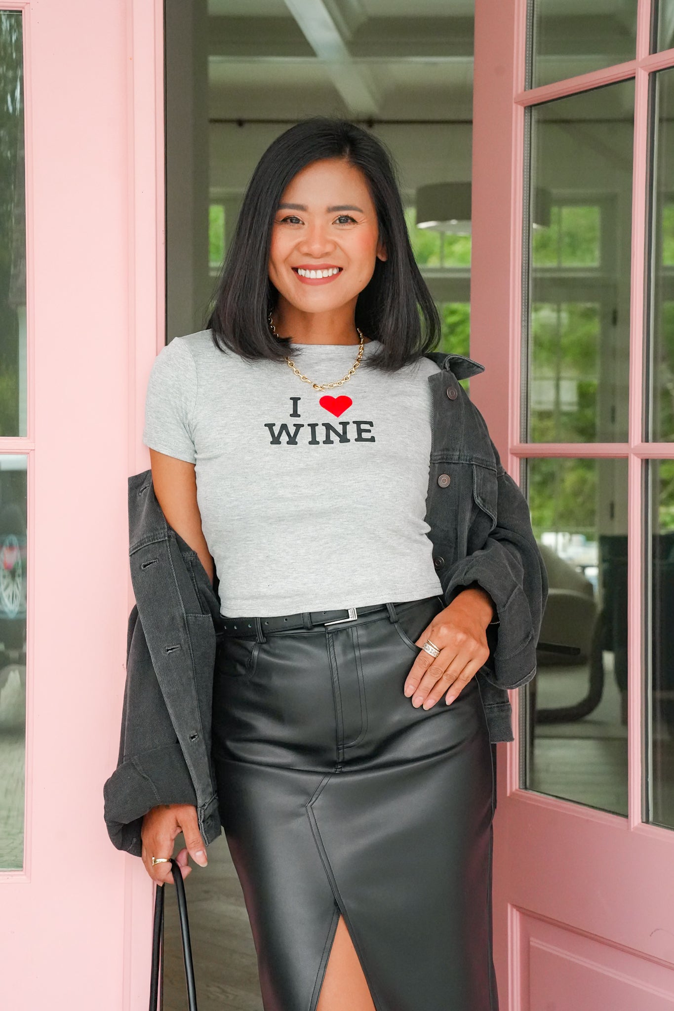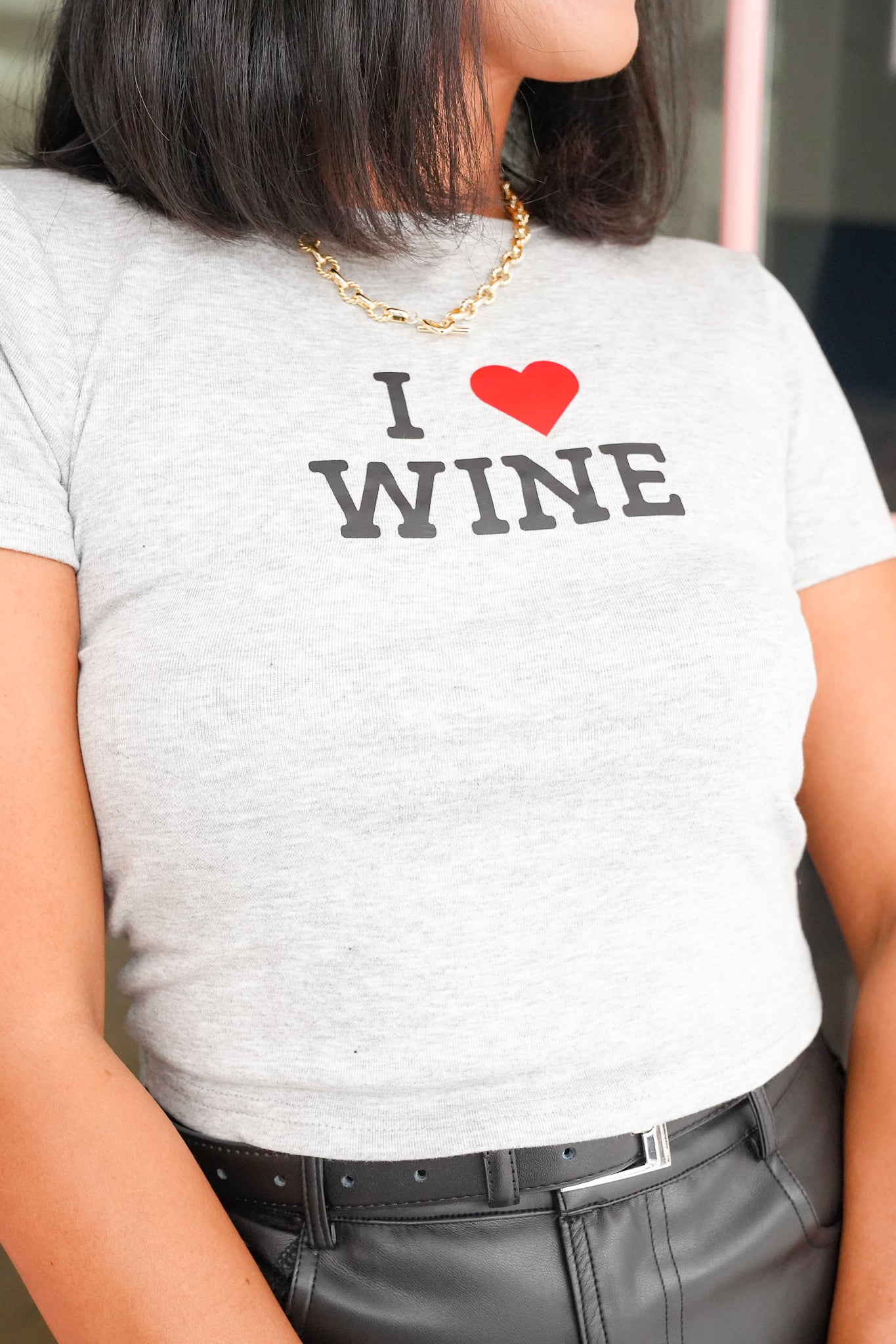 * Fun “I ♥ Wine” graphic for a playful vibe