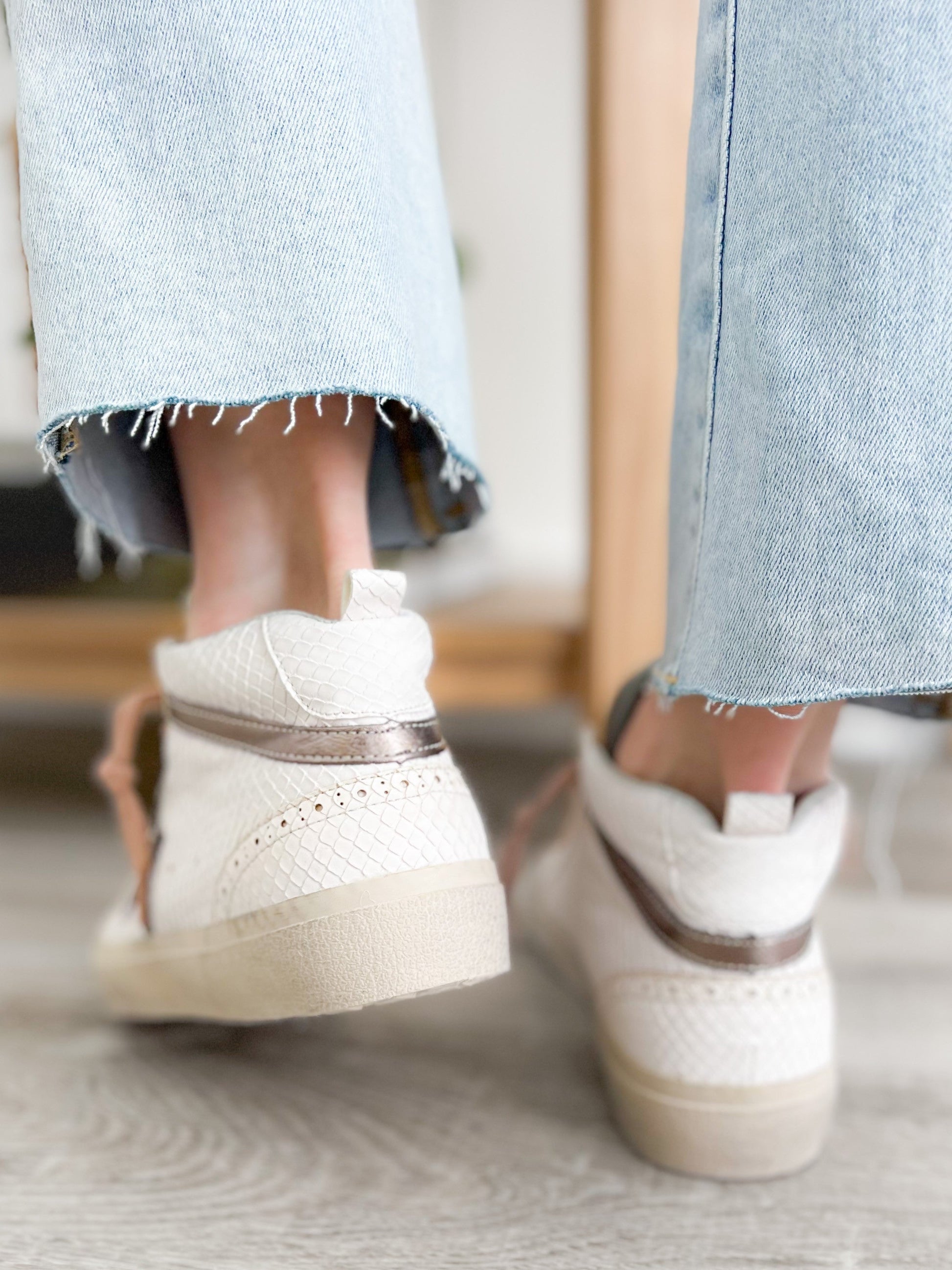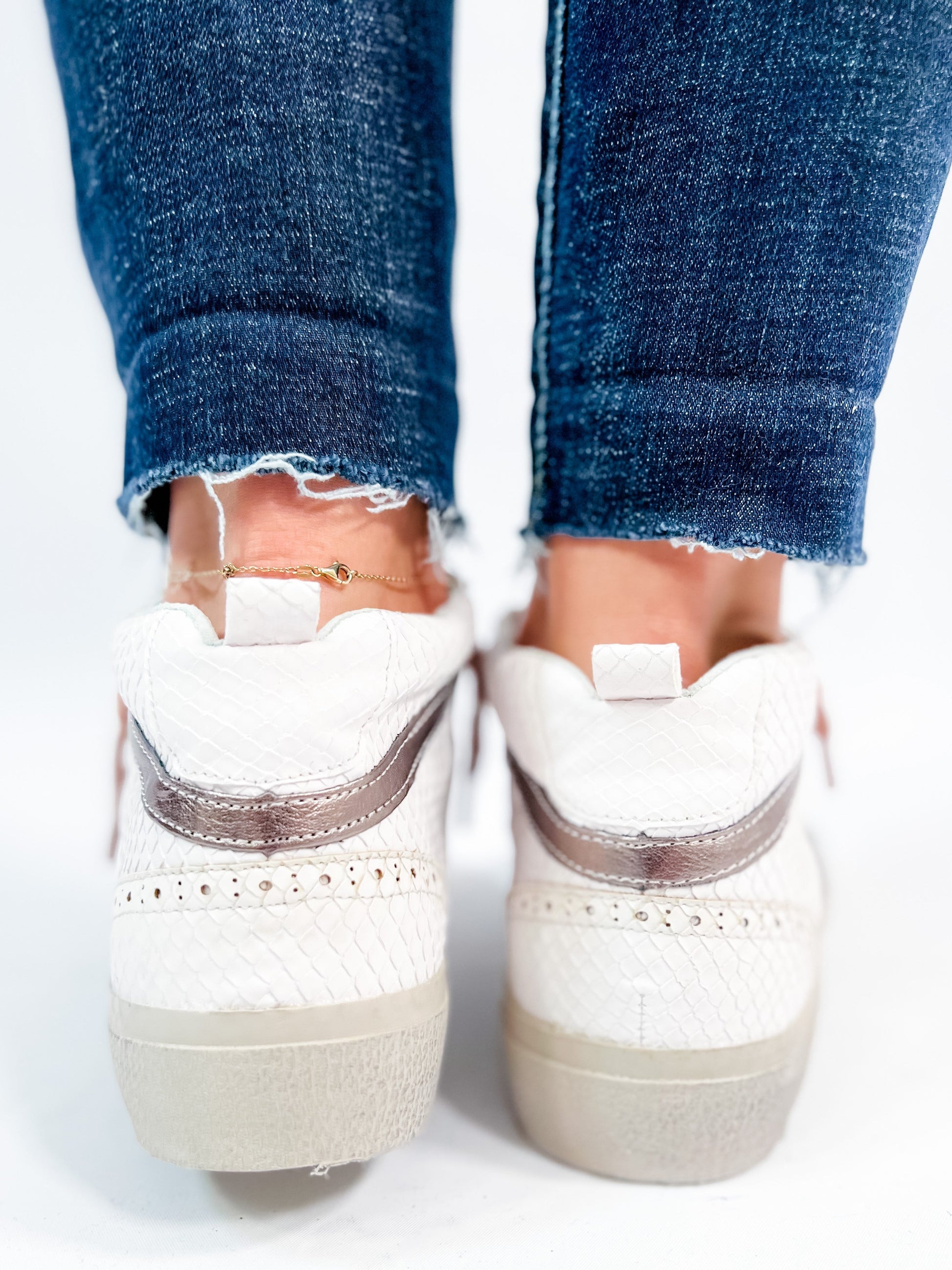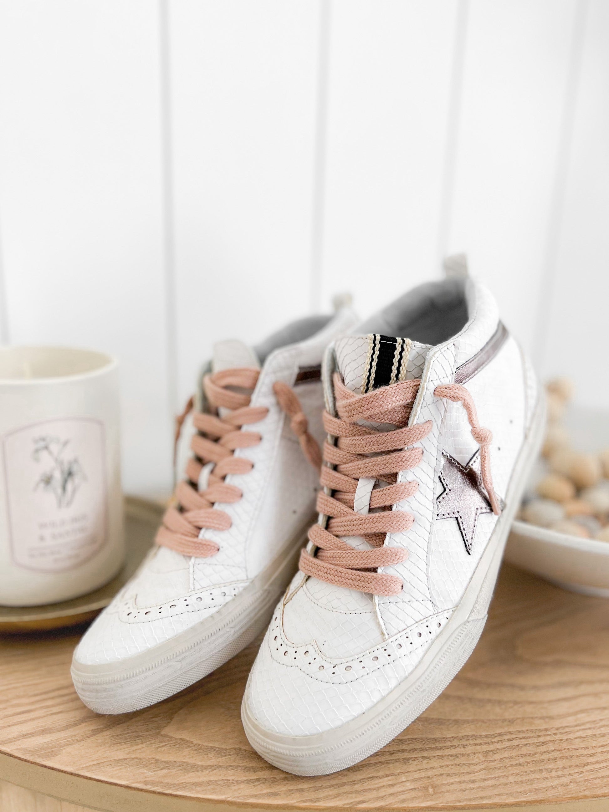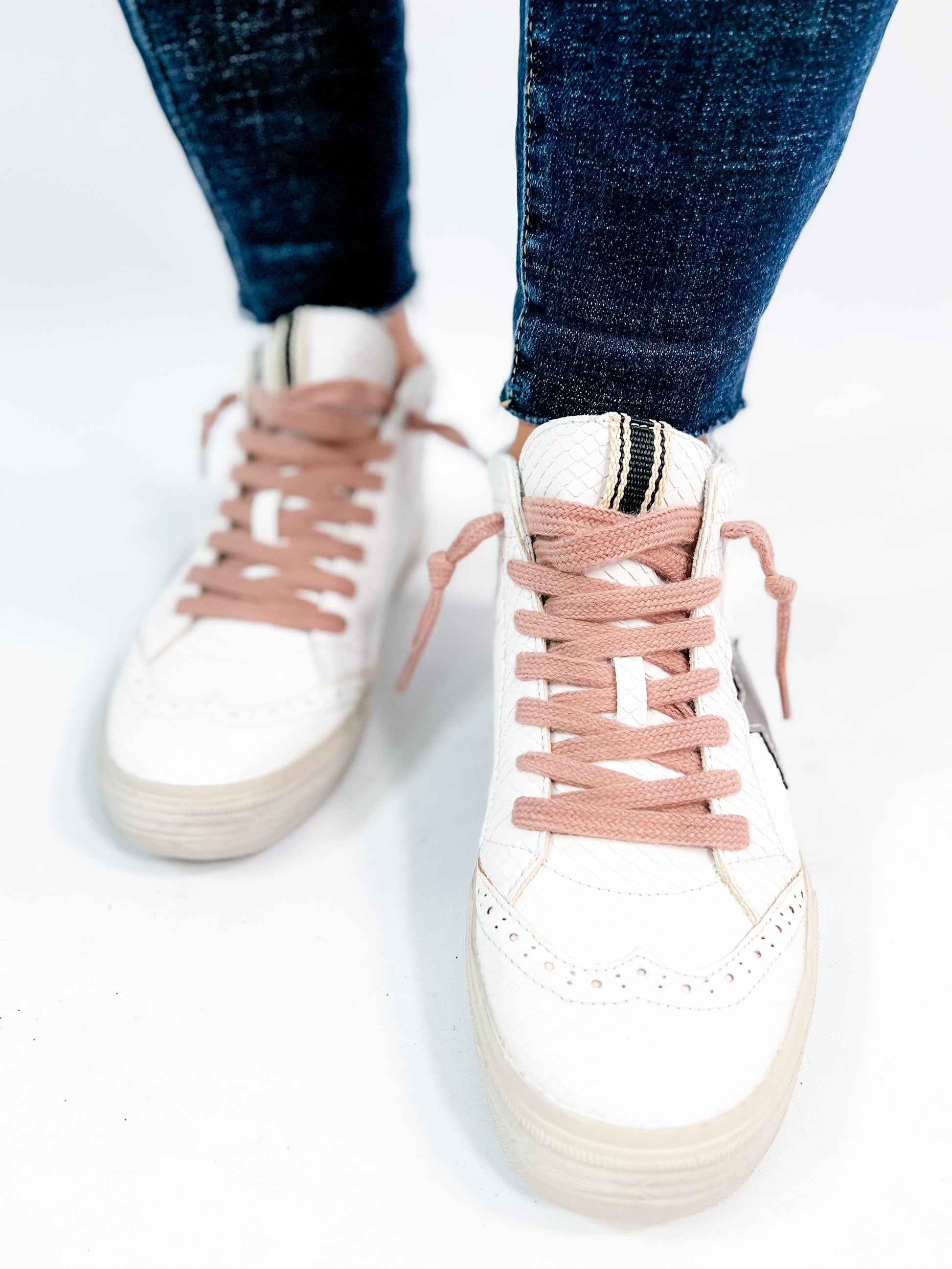 A sneaker that delivers on glam and game-day comfort? Yes, please! These Shu Shop hi-tops bring a fierce touch with snake texture and a metallic bronze star were inspired by vintage basketball kicks. The pink laces add a feminine punch without being over the top. Rock these with joggers, wide-leg jeans, or even a dress for that street-chic energy.