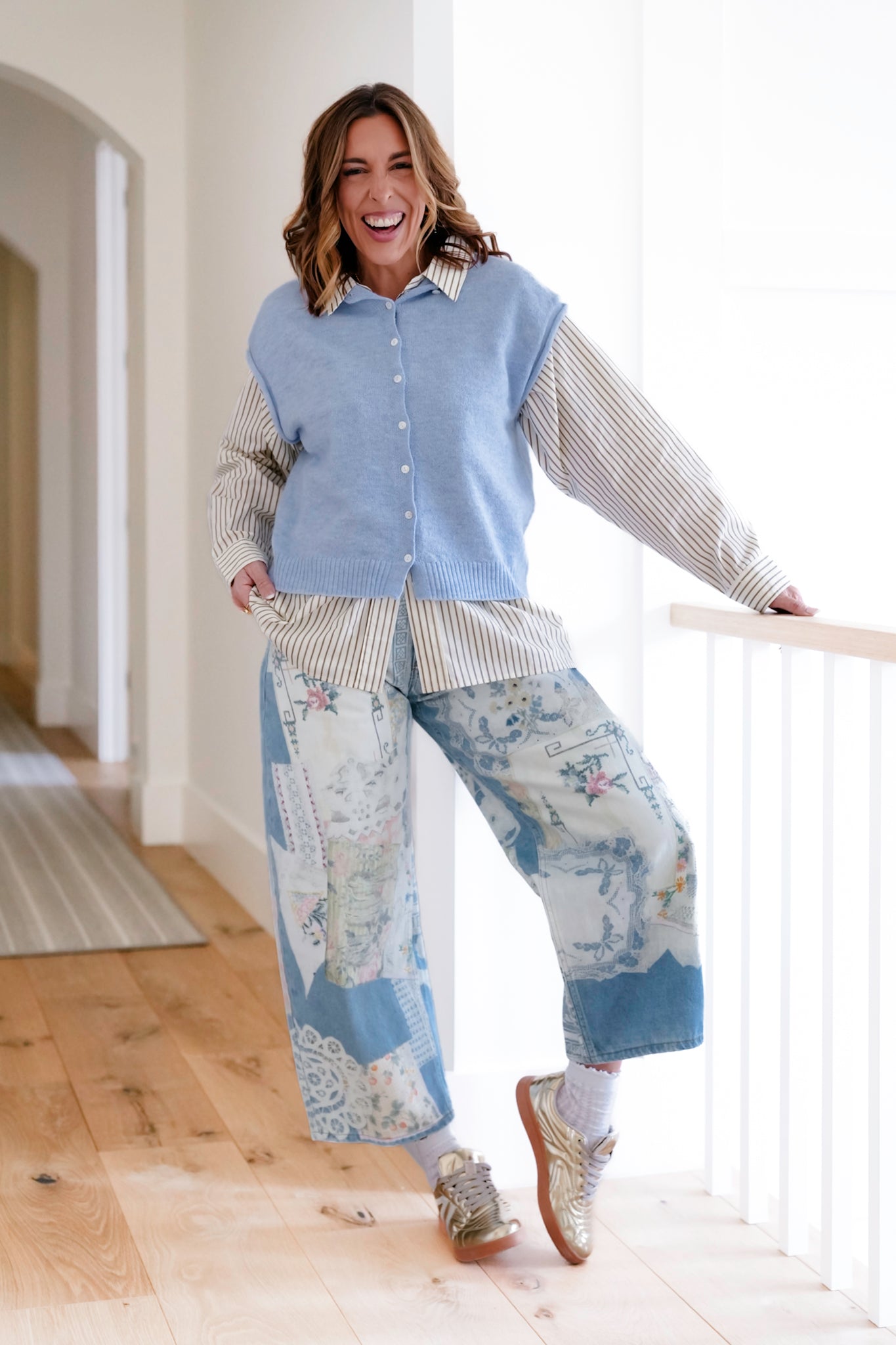 This sleeveless sweater vest brings a chic, modern twist with its soft knit, button-down front, and clean collar that instantly elevates your everyday looks. The stretchy fabric makes it unbelievably comfortable, whether you wear it solo with denim or layered over a long sleeve for a preppy, styled moment.