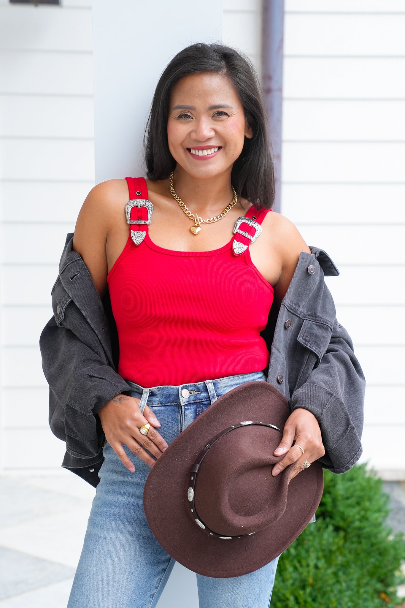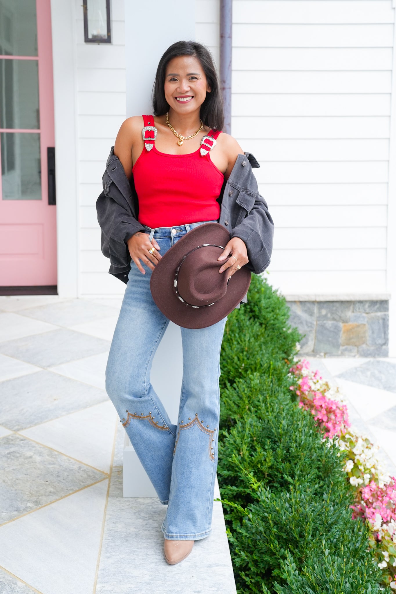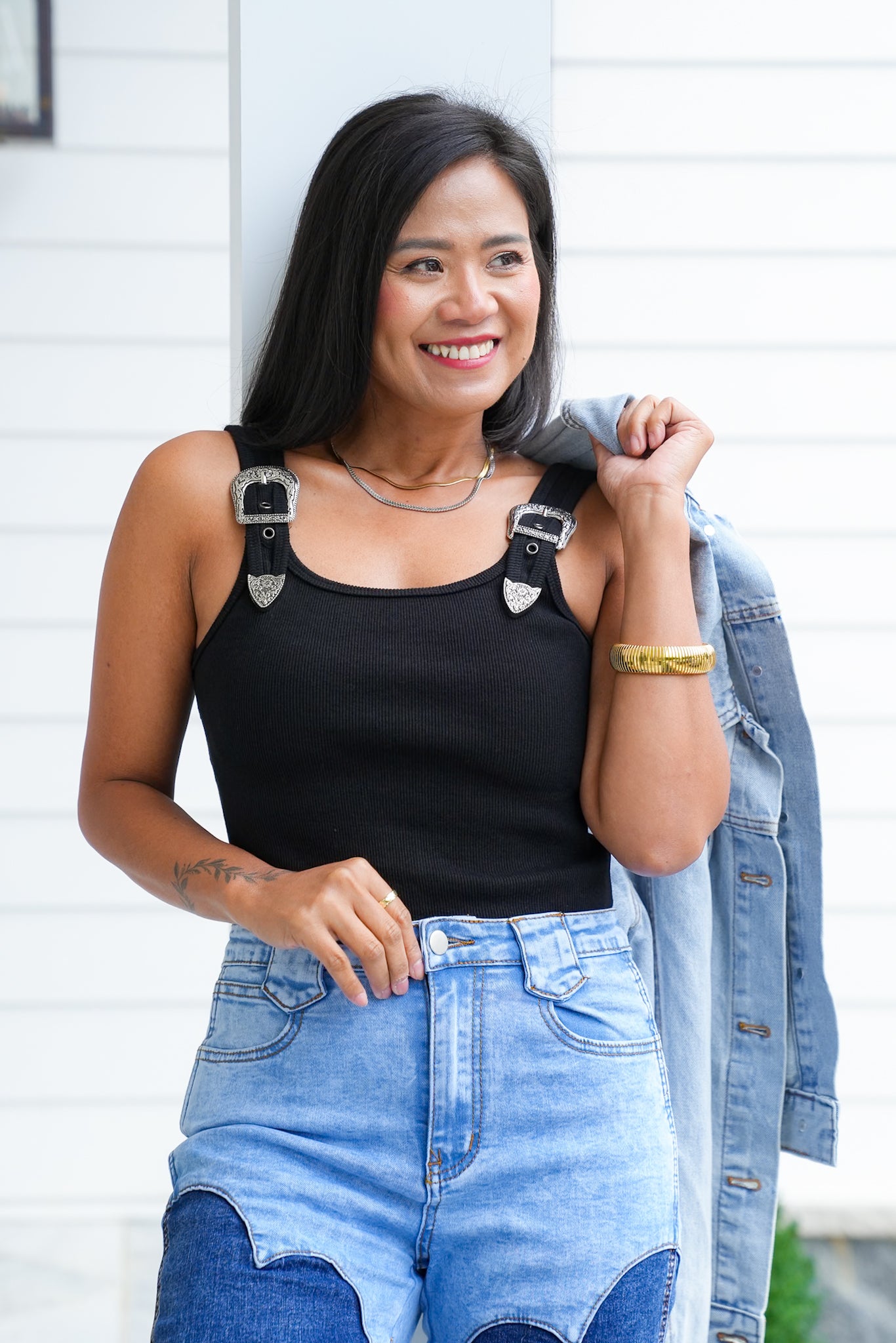 * Western-inspired buckle strap details for an edgy touch