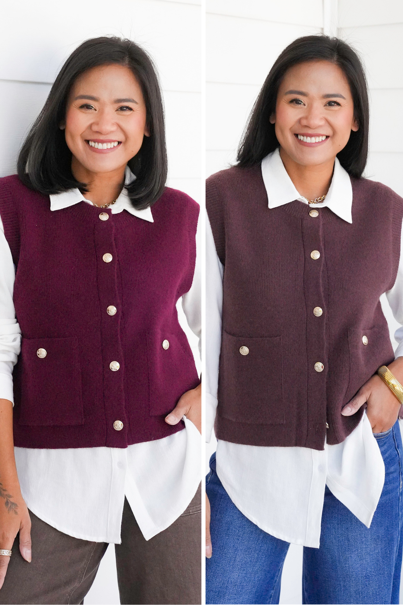 This sweater vest elevates layering with luxe texture and timeless tailoring. It’s the kind of piece that works over a crisp button-down, styled open with a tee, or buttoned with trousers for chic polish. It’s the perfect bridge between casual and refined.