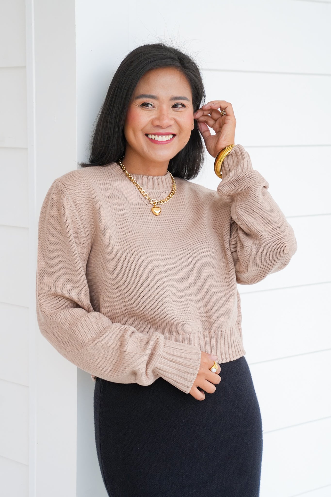 This cropped crew neck sweater brings laid-back sophistication with just the right pop of cozy chic. The relaxed silhouette makes it an easy choice for layering with skirts, trousers, or denim, while the cropped hem highlights your waistline for a flattering finish. Toss it on with bold jewelry or layer under a jacket for year-round versatility.