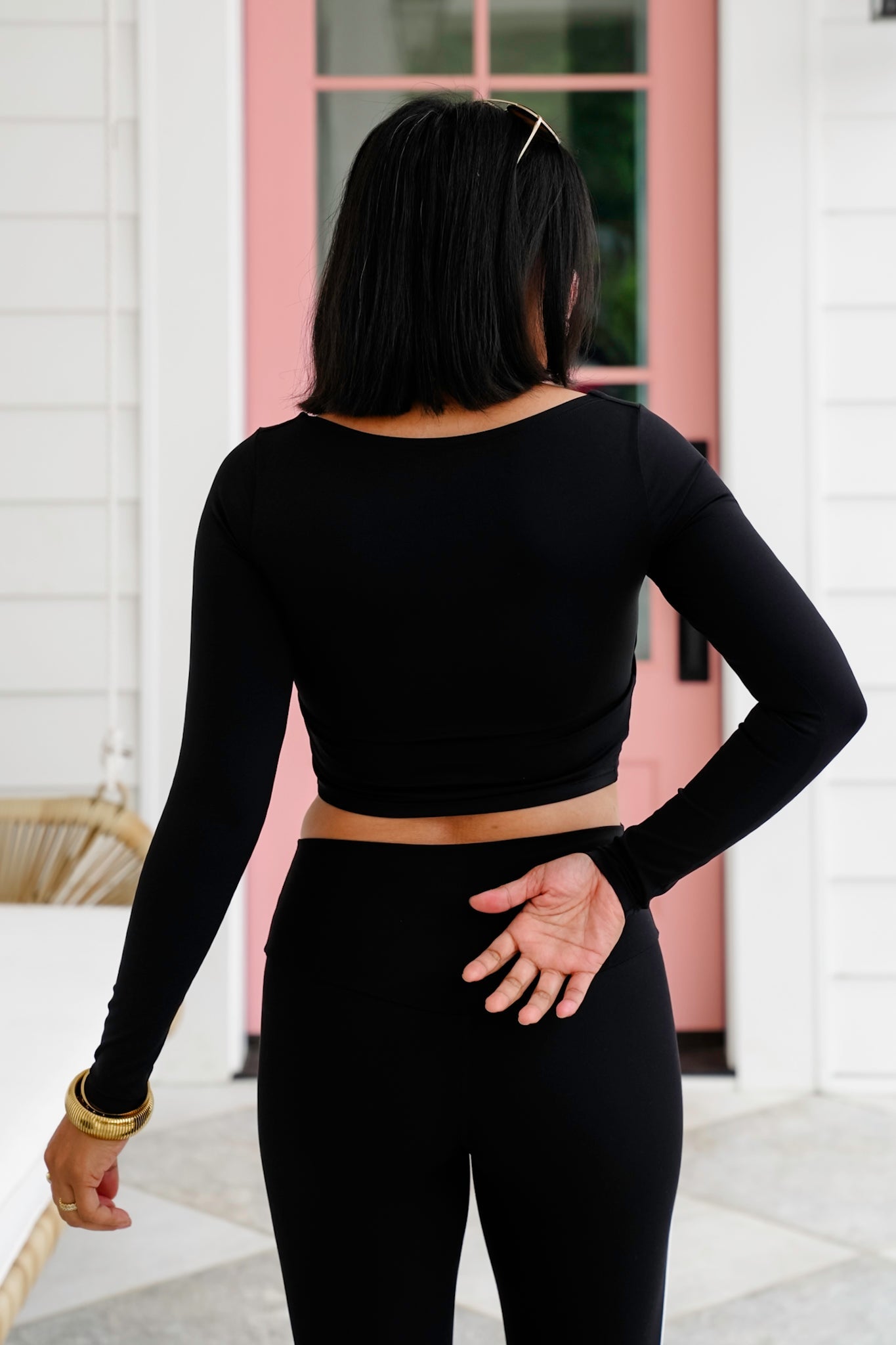 A sleek basic with a surprise built-in bonus. This long sleeve crop top features a square neckline that flatters from every angle and has a built-in bra with removable pads. The stretchy fabric hugs just right, making it perfect for high-waisted leggings or under a shacket.