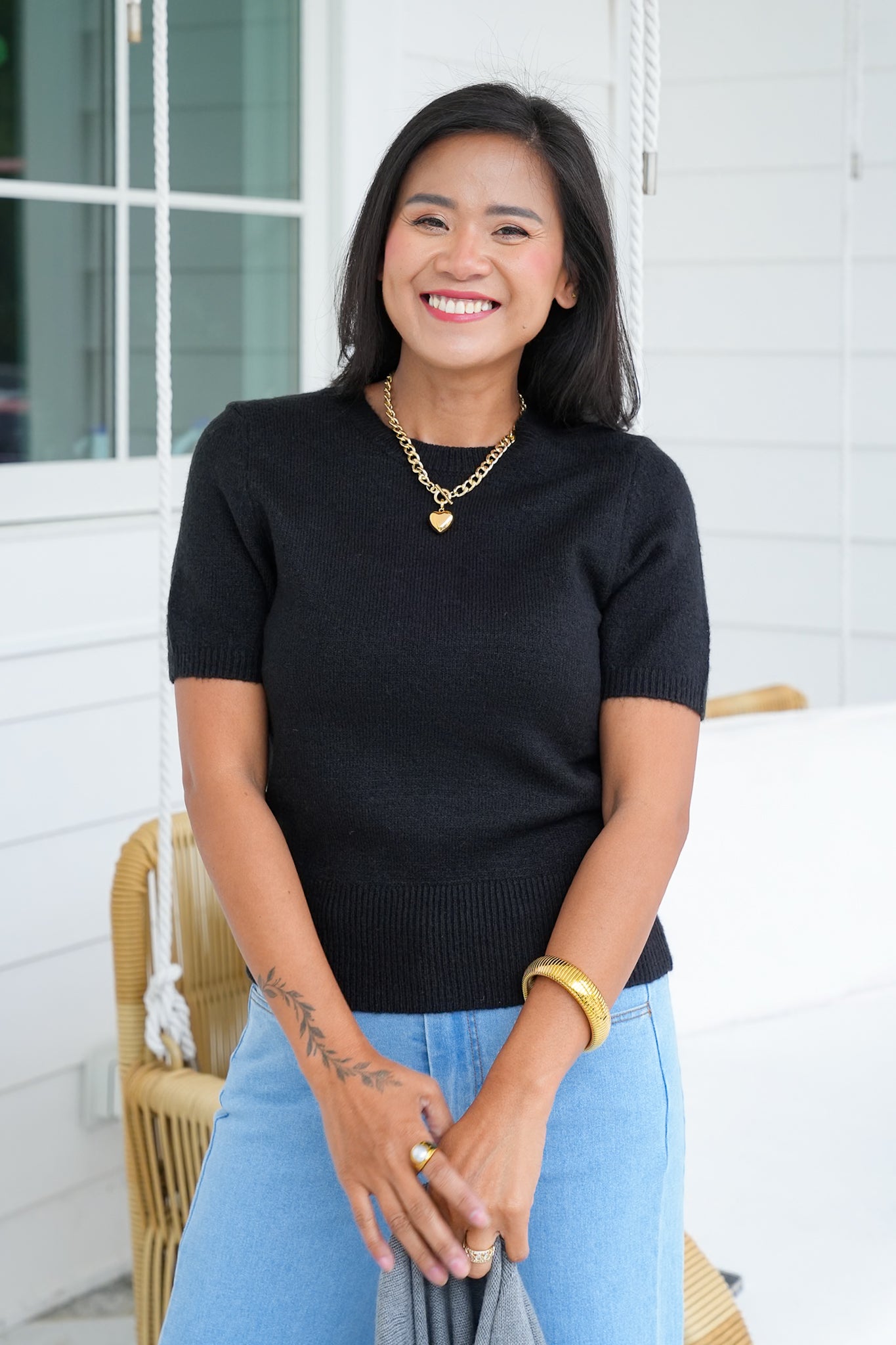 This short-sleeve sweater is one of those elevated basics that instantly pulls a look together. The soft knit drapes just right, while the short sleeve cut gives you endless styling potential. You can wear it solo with denim and sneakers, dress it up with trousers and heels, or layer it under a blazer for a professional polish. It’s the piece you’ll reach for again and again.