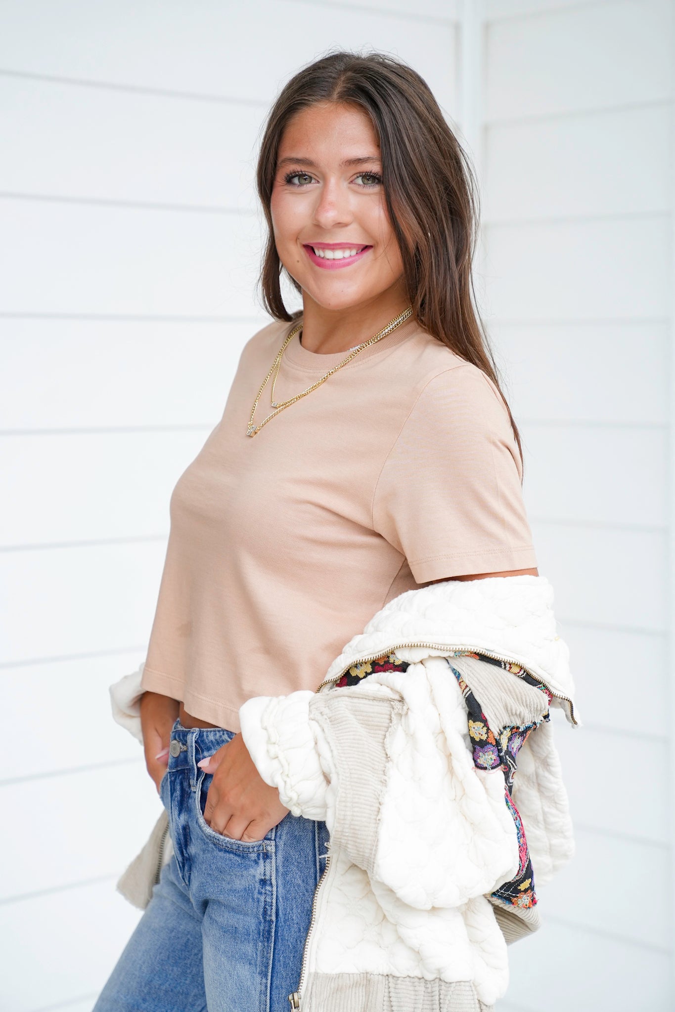 This crop tee is the ultimate everyday essential that makes styling simple. The soft, stretchy fabric feels amazing, while the cropped cut gives it a modern, laid-back vibe that’s perfect for high-rise denim or skirts. Dress it up with a blazer and heels or keep it casual with joggers and sneakers, this top is as versatile as it is comfortable. You’ll want one in every color!