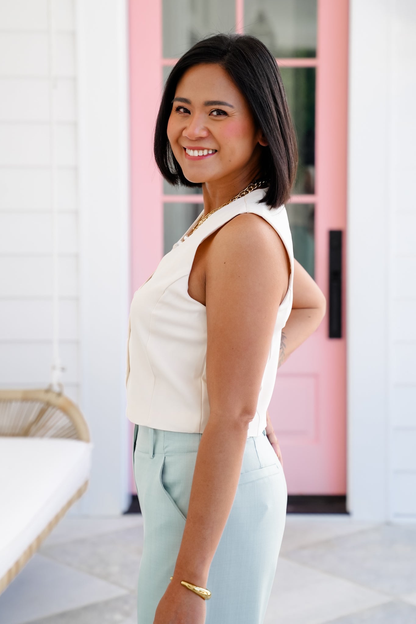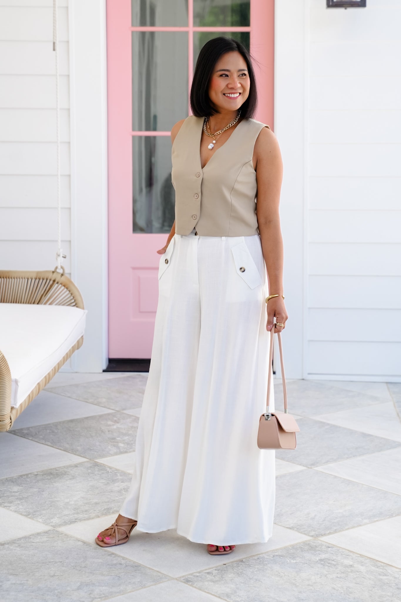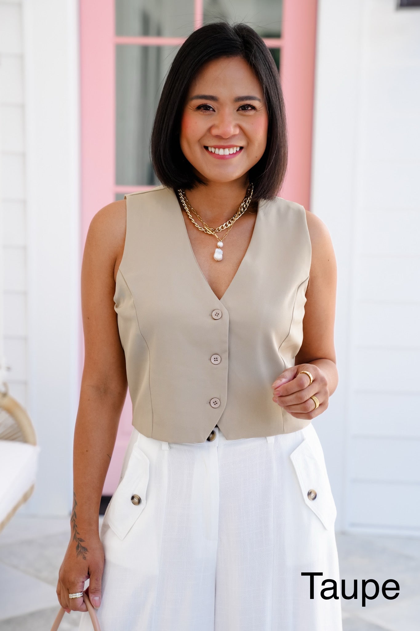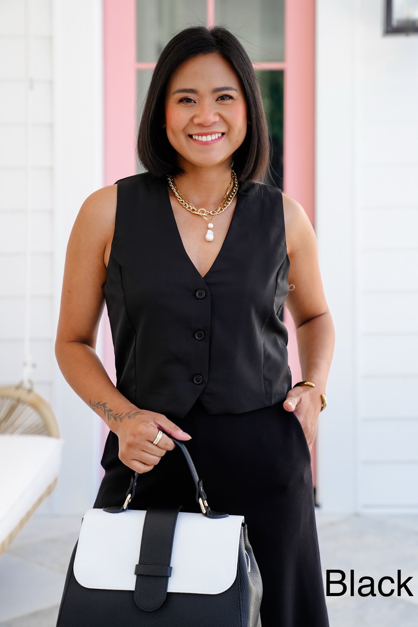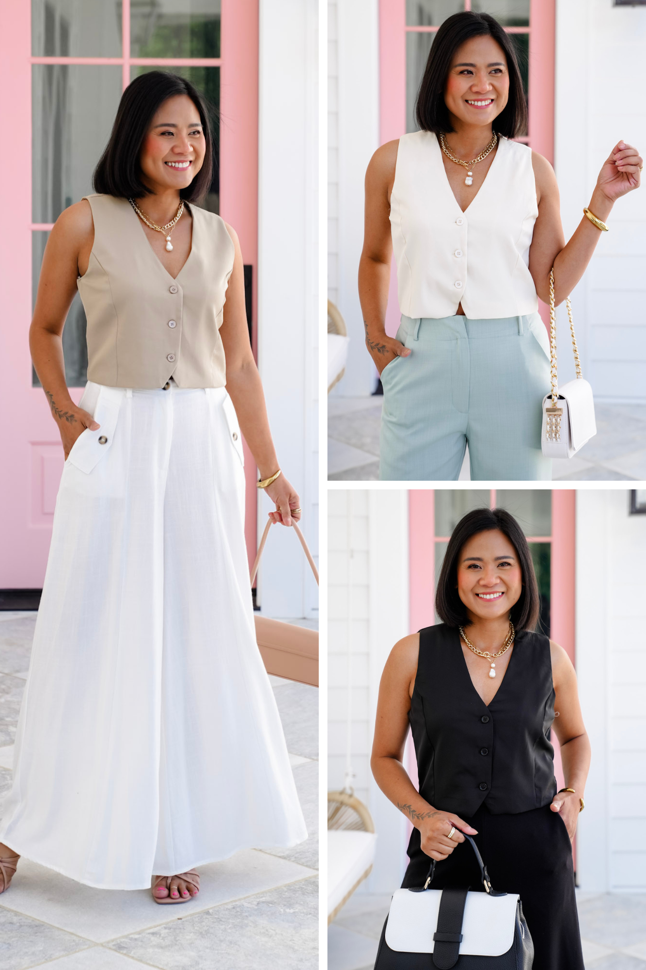 Add a polished pop to any outfit with this structured woven vest. Whether you layer it over a flowy blouse for work or style it on its own with tailored pants for brunch, it instantly elevates your look. Try it with wide-leg trousers or a playful skirt for a chic twist.