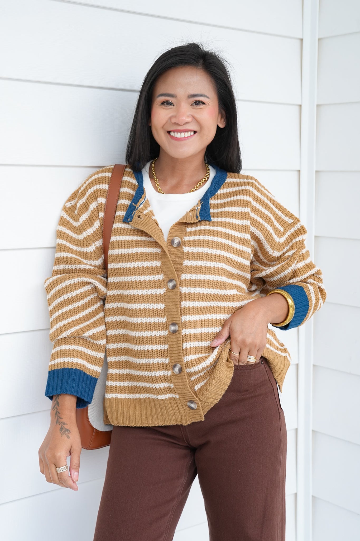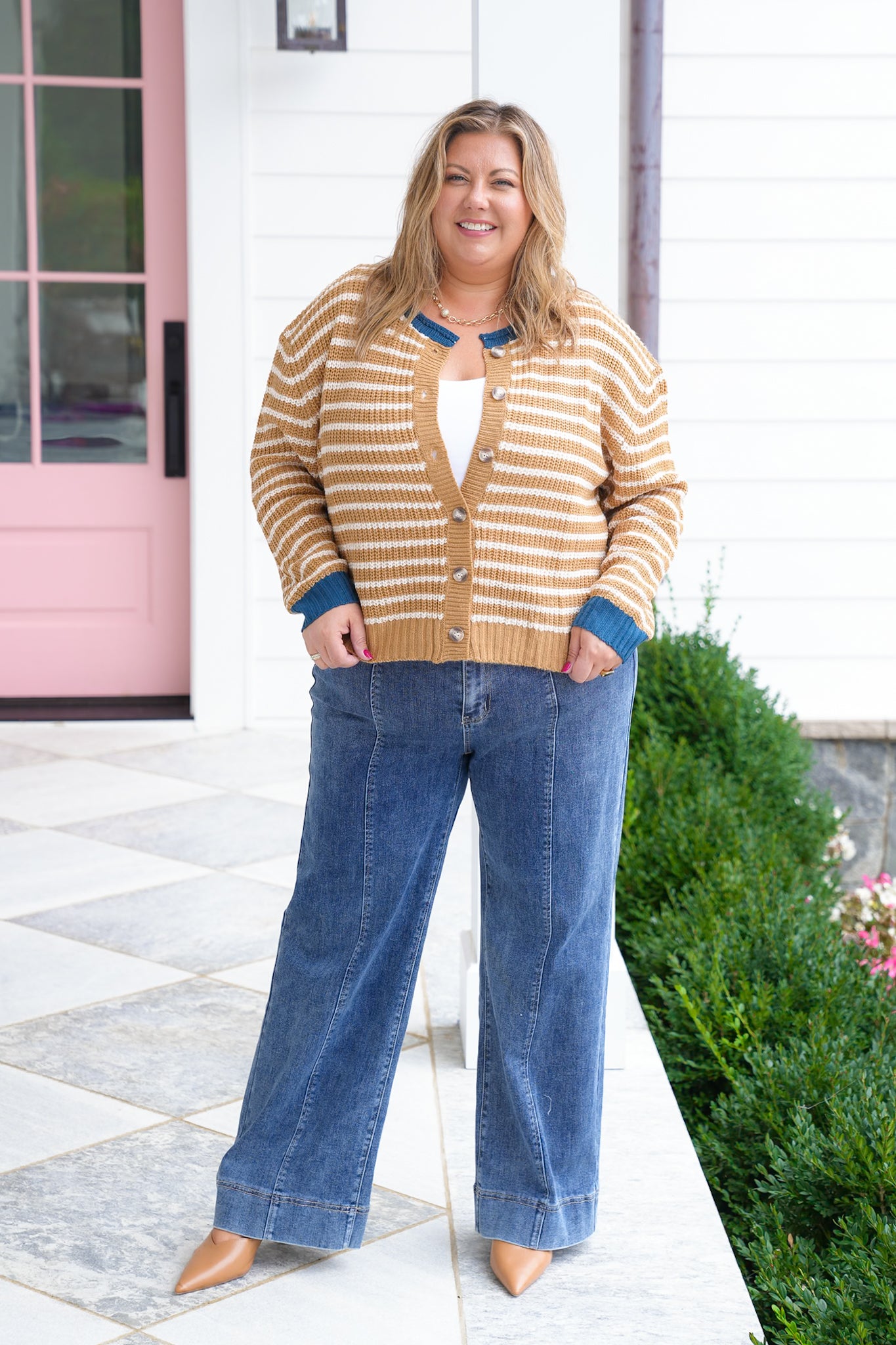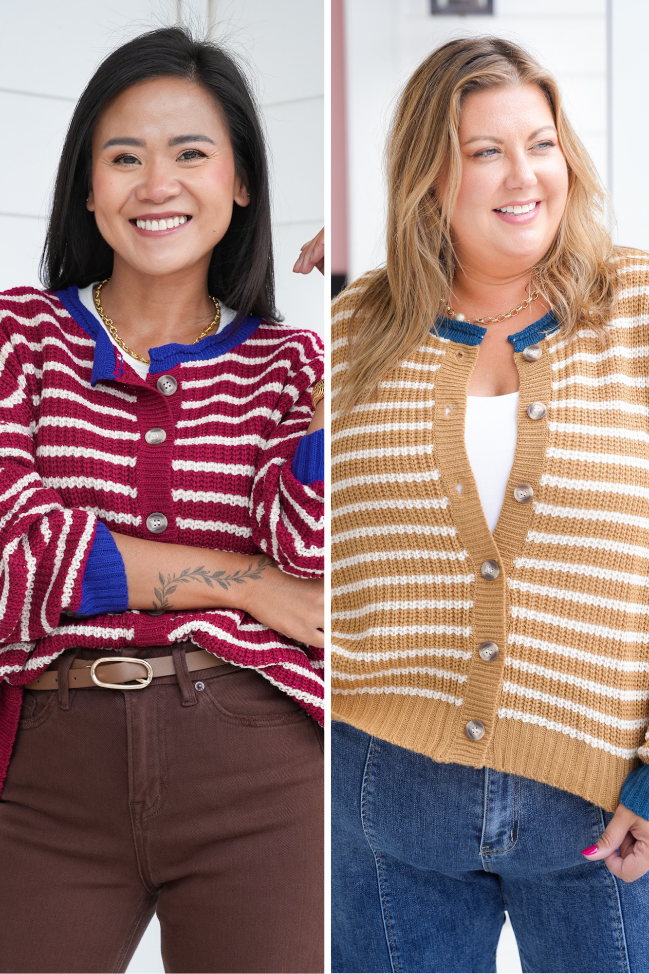 This cardigan is the perfect throw-on-and-go layer that instantly adds personality to any outfit. The striped pattern and cozy knit make it a standout while keeping things casual and relaxed.