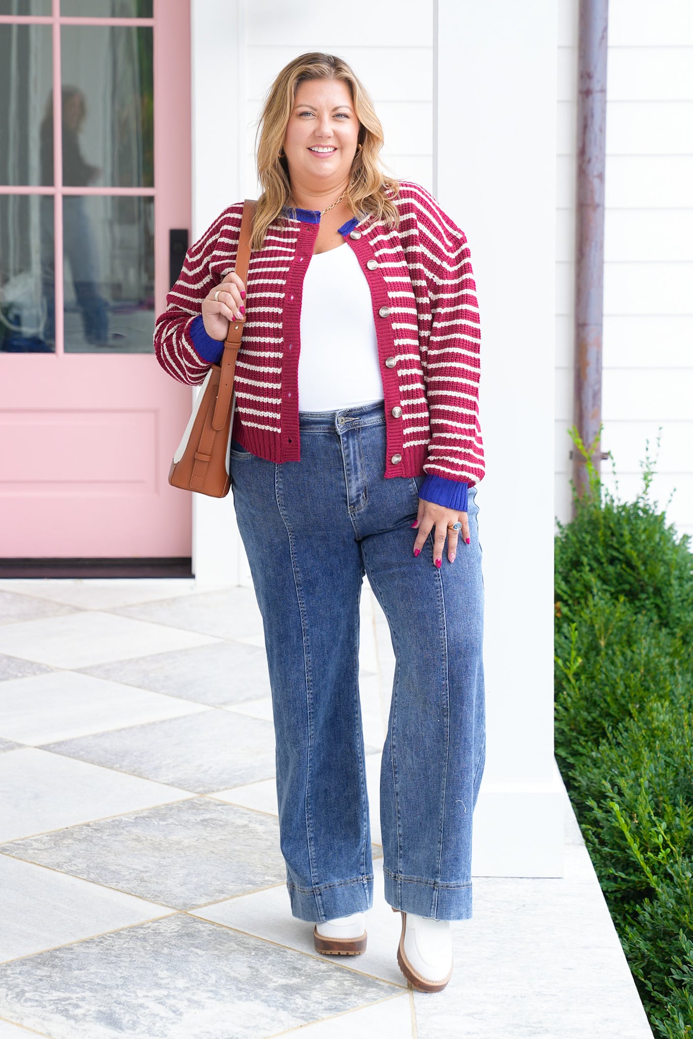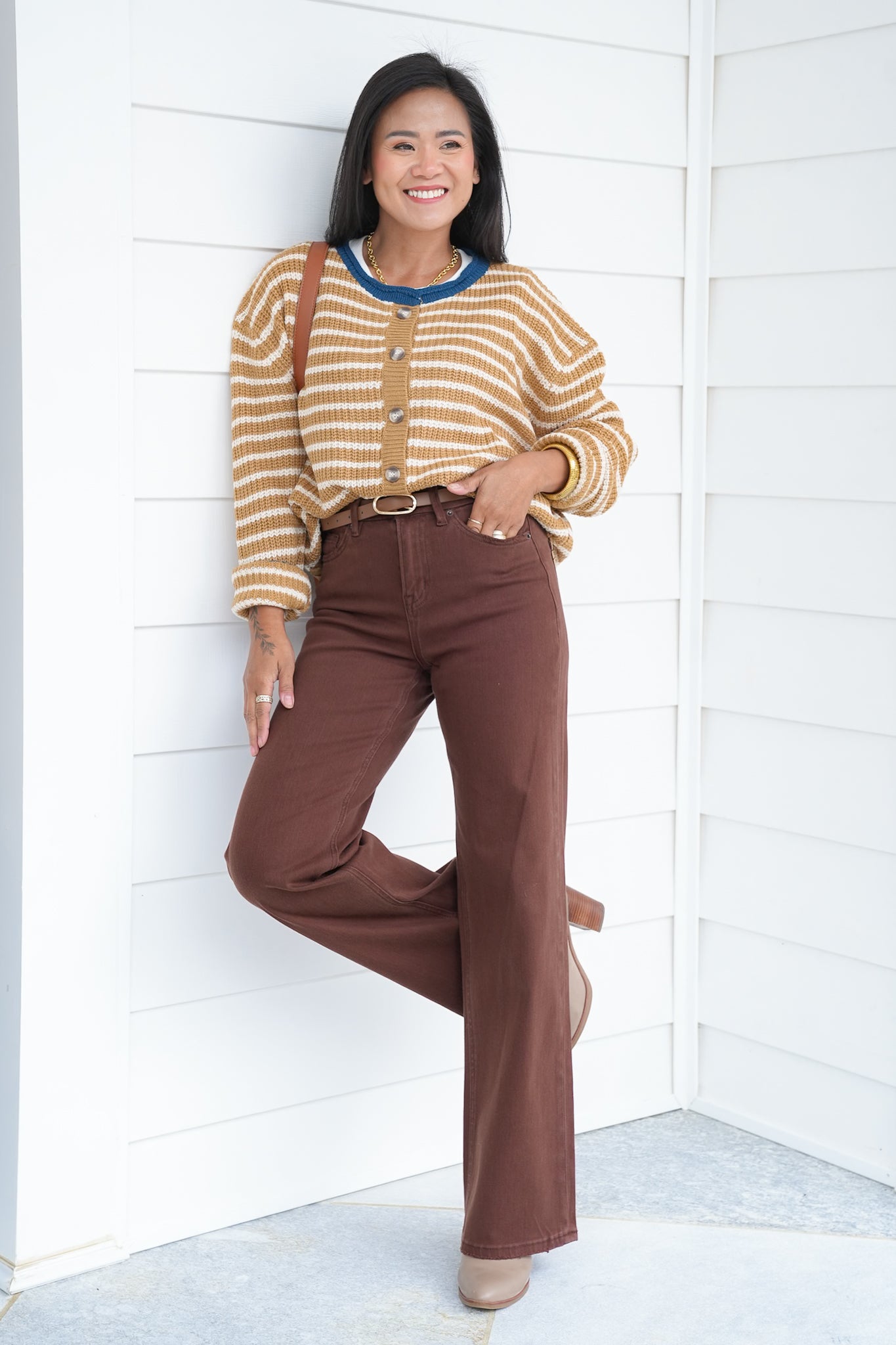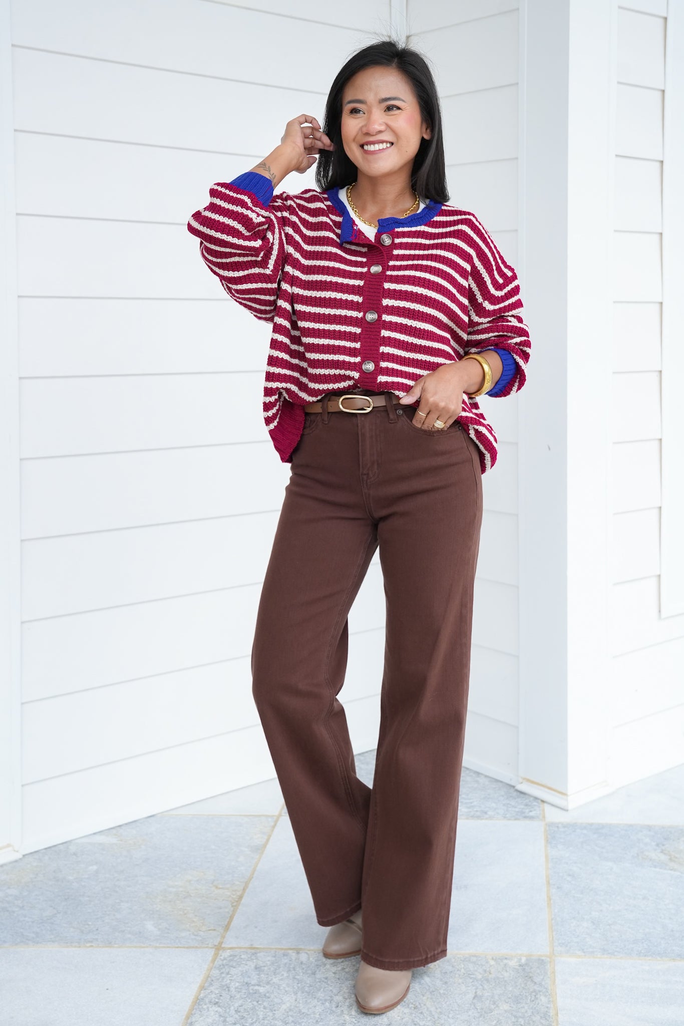 This cardigan is the perfect throw-on-and-go layer that instantly adds personality to any outfit. The striped pattern and cozy knit make it a standout while keeping things casual and relaxed.