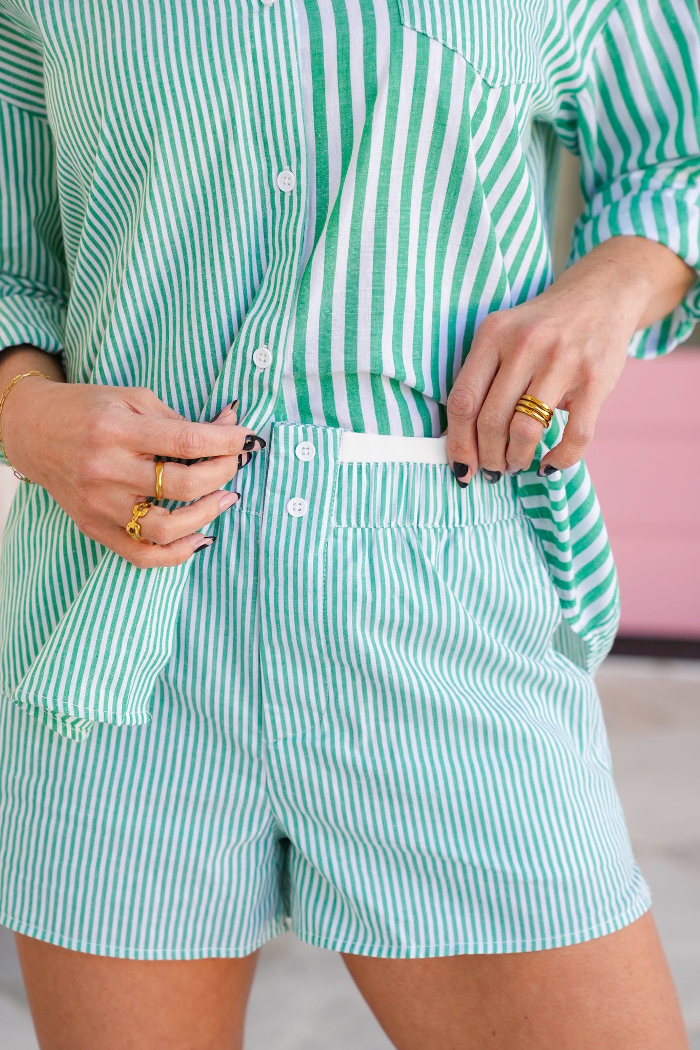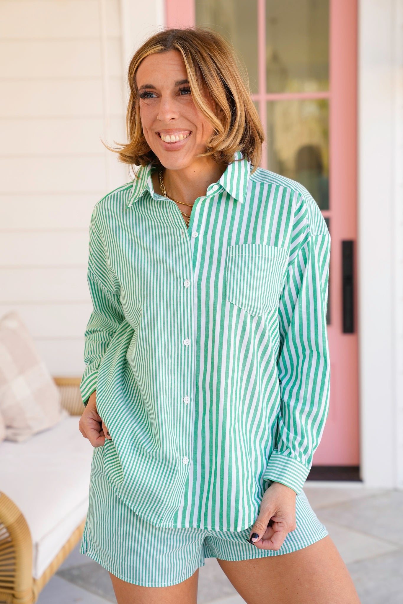 Restock! Stripe Long Sleeve Button Down Shirt and Shorts Set