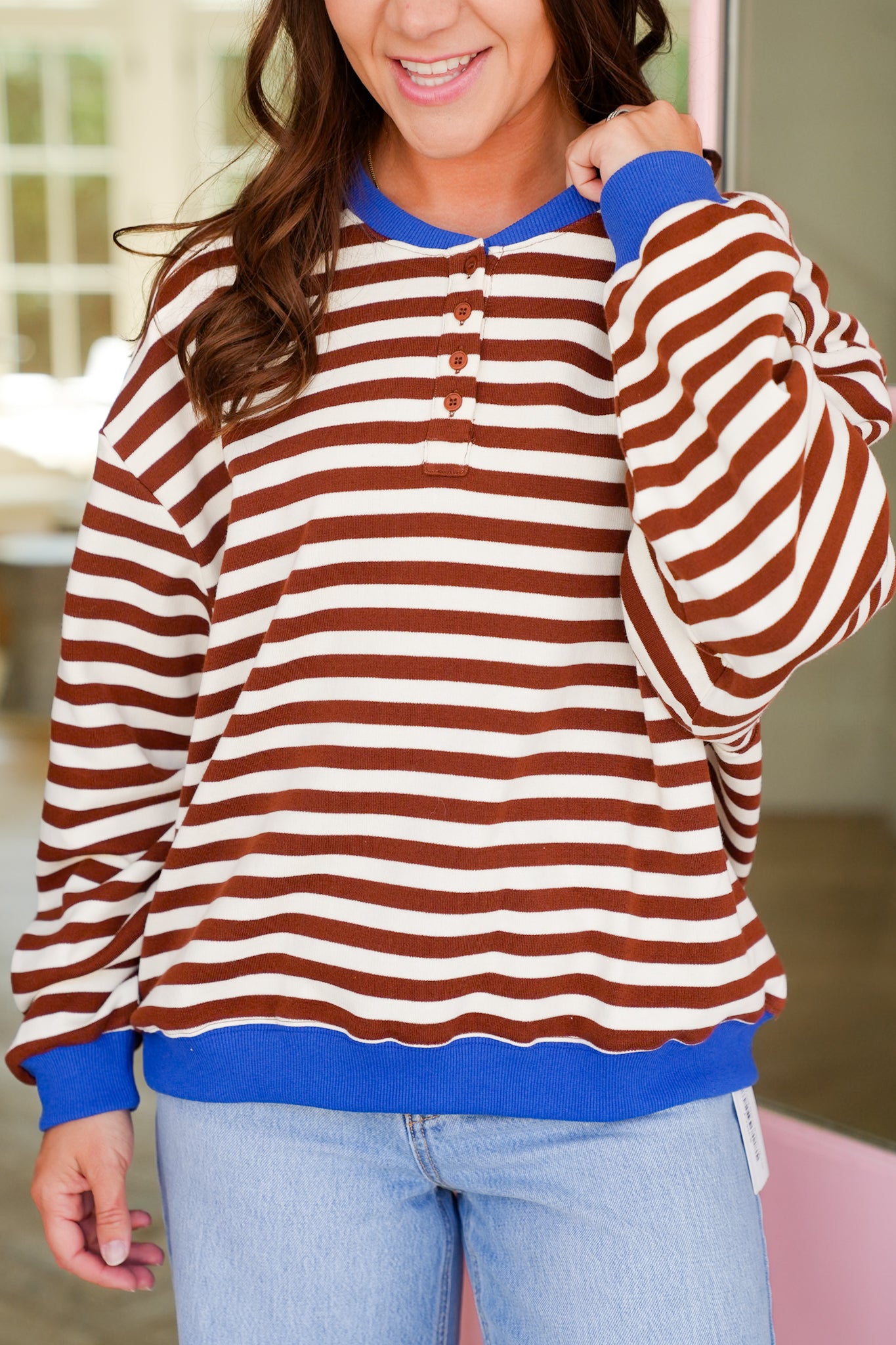 This striped long sleeve top is all about playful, easy-going style with its bold stripes and pop of contrast trim that instantly brightens your look. The half-button neckline adds a touch of detail while keeping things casual and laid-back, making it perfect to toss on with jeans or leggings for a fun, everyday vibe. Lightweight yet cozy, it’s one of those pieces that looks effortlessly put together without even trying. This is the kind of top that gives you comfort, style, and versatility all in one!