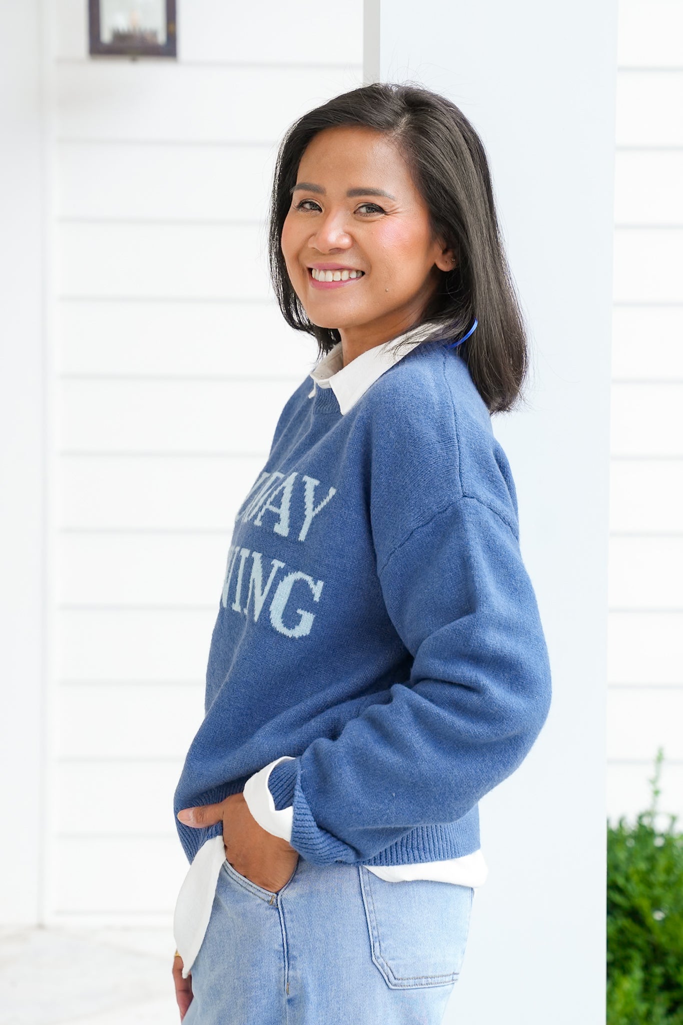 This pullover was made for slow mornings and cozy vibes. The “Sunday Morning” knit detail gives it a playful twist while the soft, stretchy fabric makes it one you’ll never want to take off.