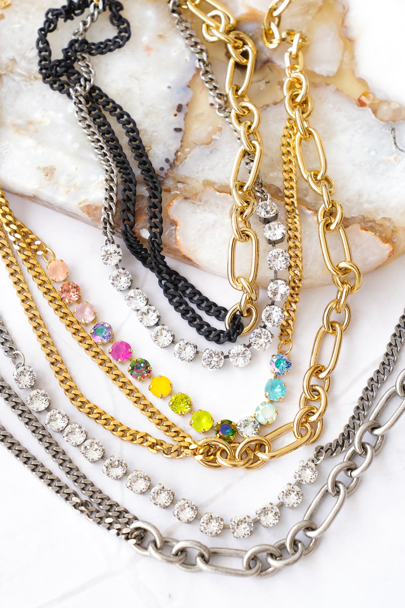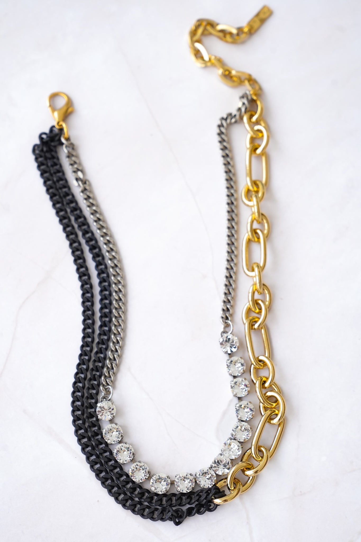 Introducing Cricket, the charming necklace that gives an effortless antique spin to your look! Plated in either antique gold, antique silver, or a mix of both plus smutt, its brass base metal is set with high-quality crystals to gleam in all the right places.