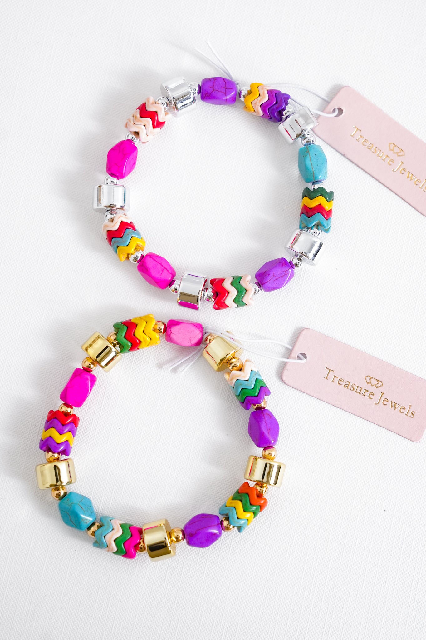 Turn every outfit into a celebration with the Color Party Bracelet from Treasure Jewels! Bursting with playful colors and textures, this bracelet instantly brightens up your look. The mix of vibrant beads and metallic accents gives it that artisan-made, one-of-a-kind feel that makes your jewelry collection extra special.