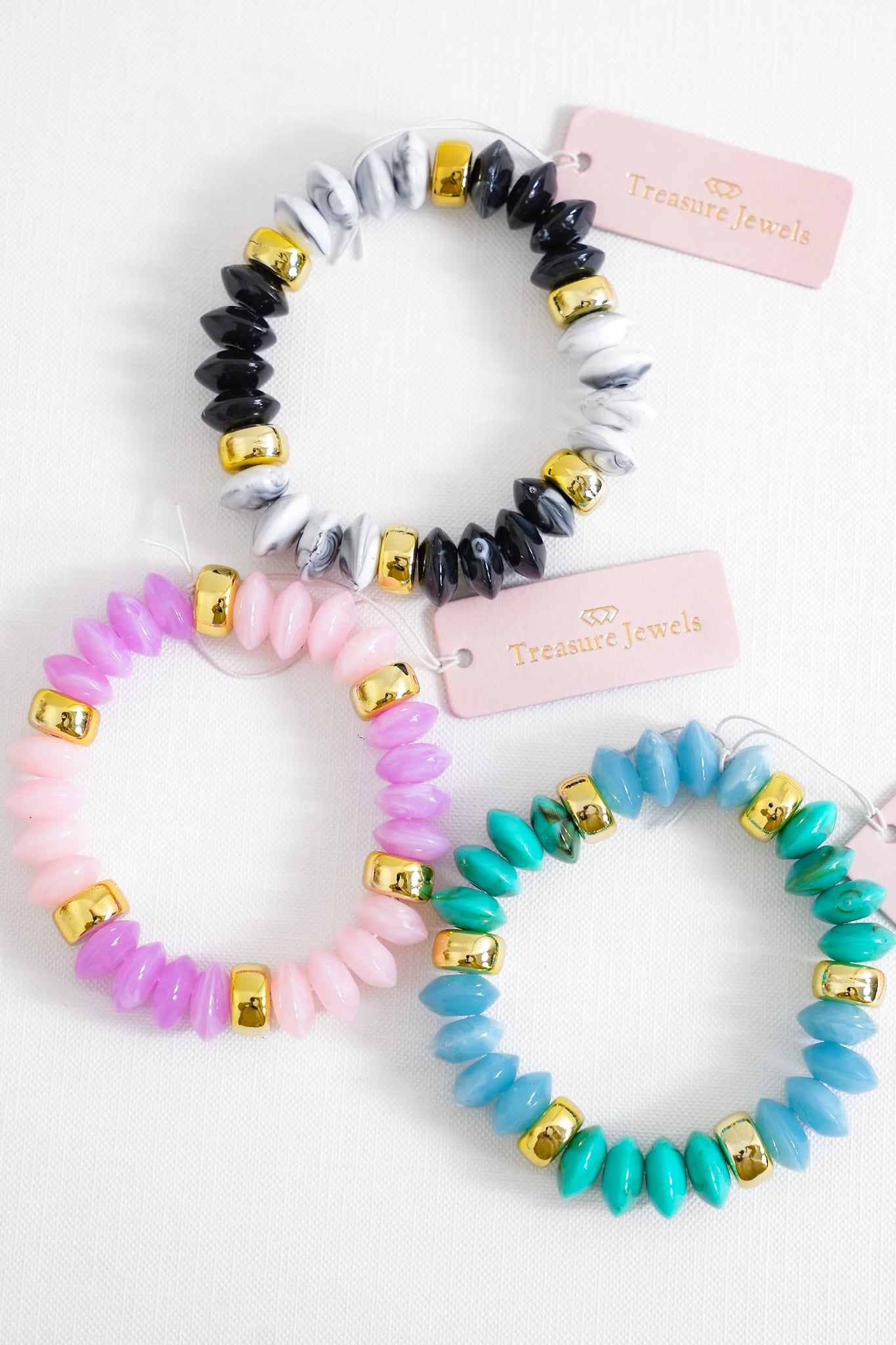 Add a pop of playful color to your look with the Day Dream Beaded Bracelet from Treasure Jewels. Each piece is handmade, giving it a unique charm, while the chunky beads and gold accents bring in that luxe, polished finish. Whether you’re stacking it with other bracelets for a fun arm party or letting it shine on its own, this bracelet brings personality and vibrance to any outfit.