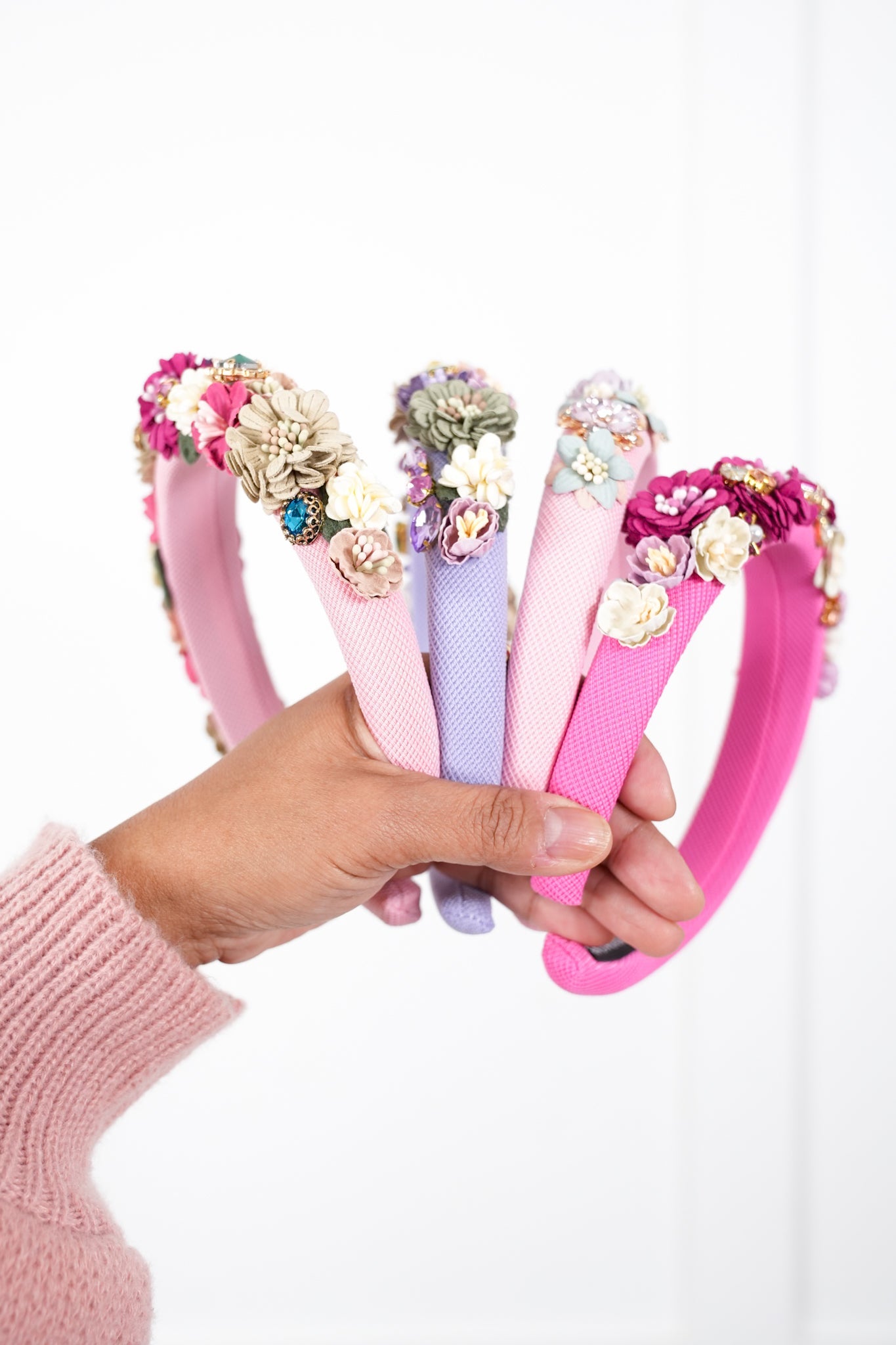 Add a playful, fairy-tale touch to your look with these whimsical headbands. Adorned with delicate, colorful flowers, they’re like wearing a garden on your head! Pair these with casual tees for a fun, fresh vibe, or dress up your outfit by matching them with your favorite sundress for a dreamy spring look.