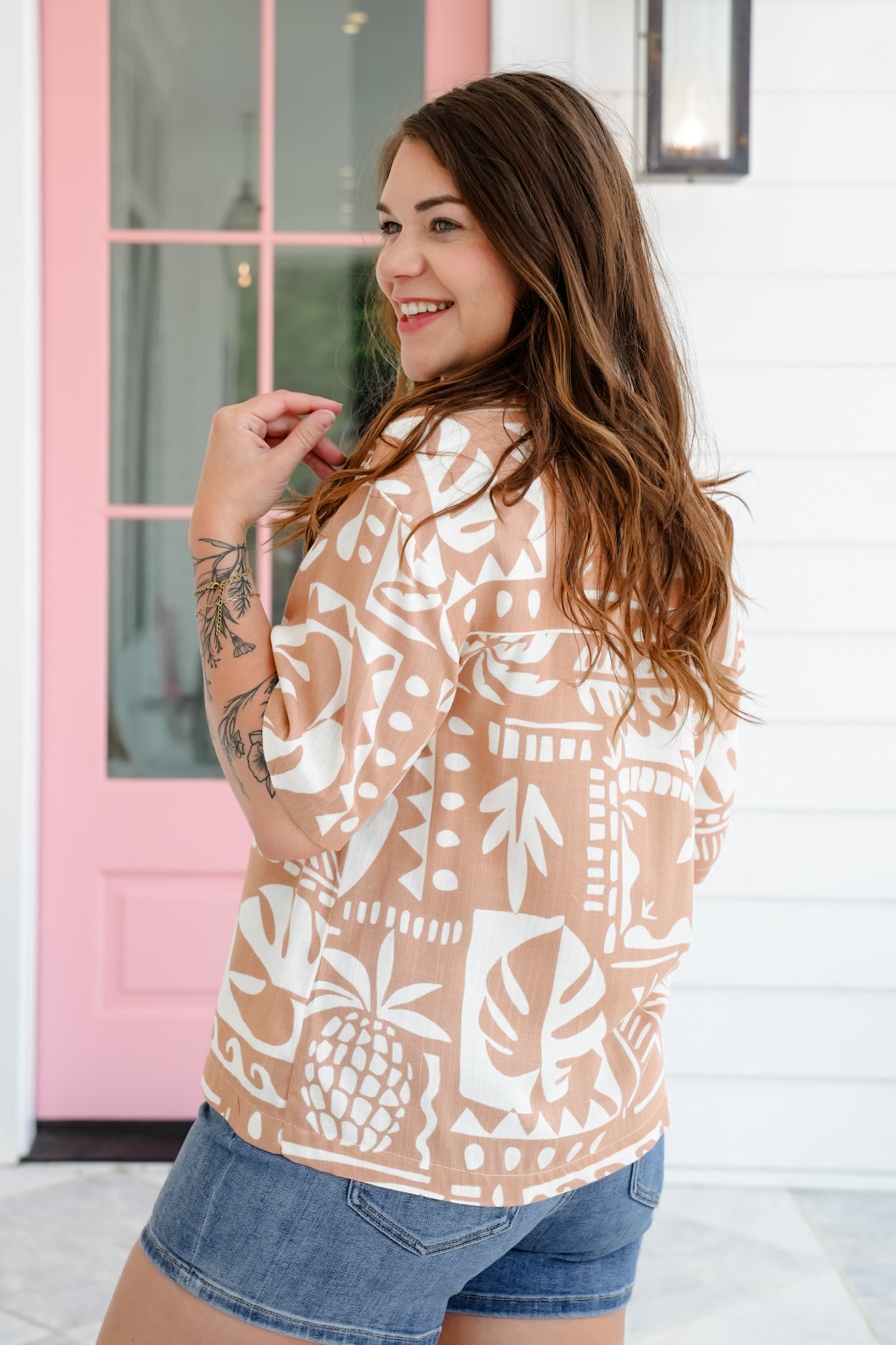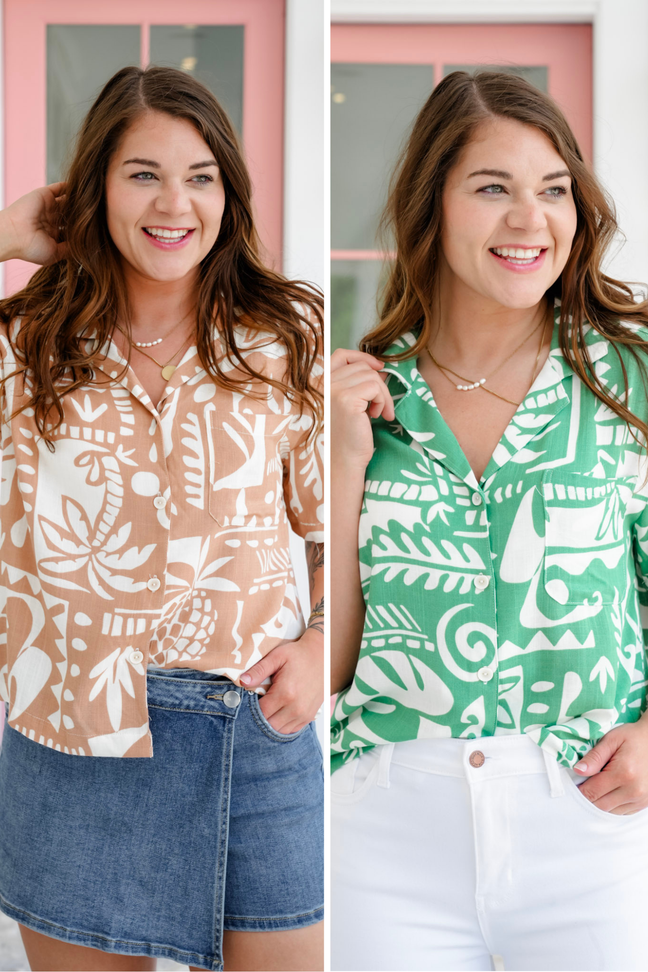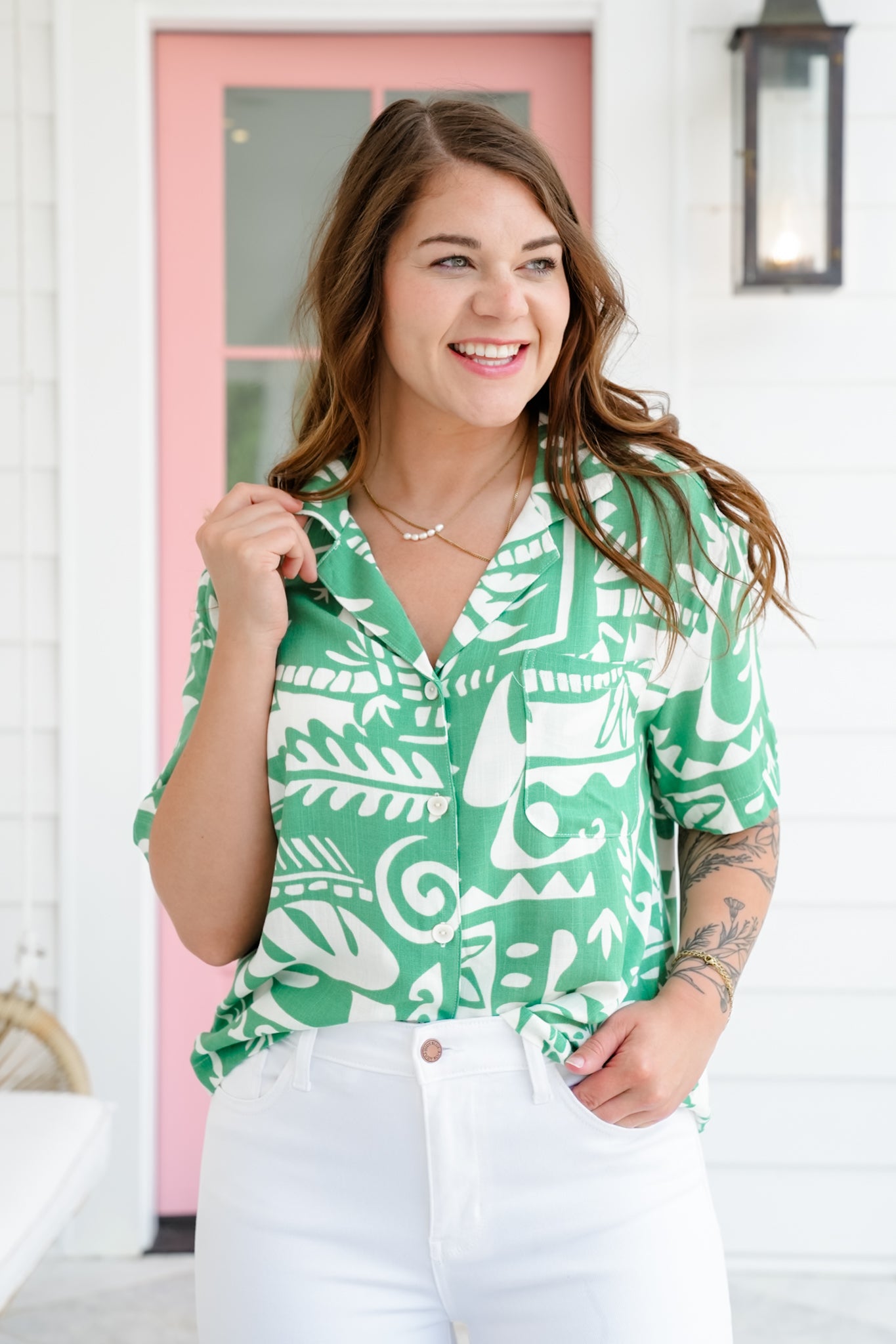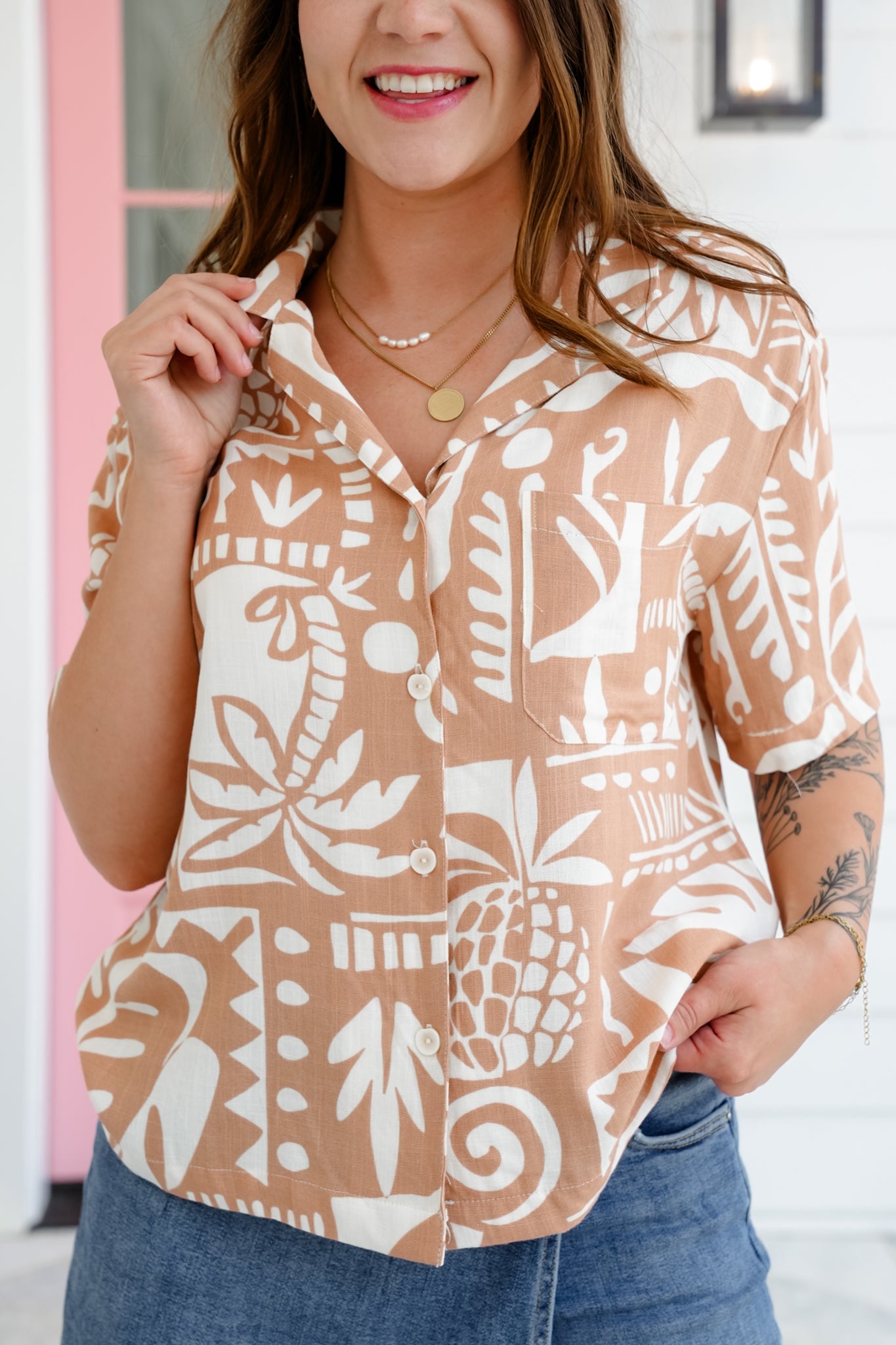 Bring the island vibes to your closet with this vibrant tropical print top. The easy button-down design makes it perfect for wearing as a cover-up at the beach or styling it with shorts for an afternoon out. The relaxed fit keeps it comfy and breezy, making it your go-to for those laid-back sunny days.