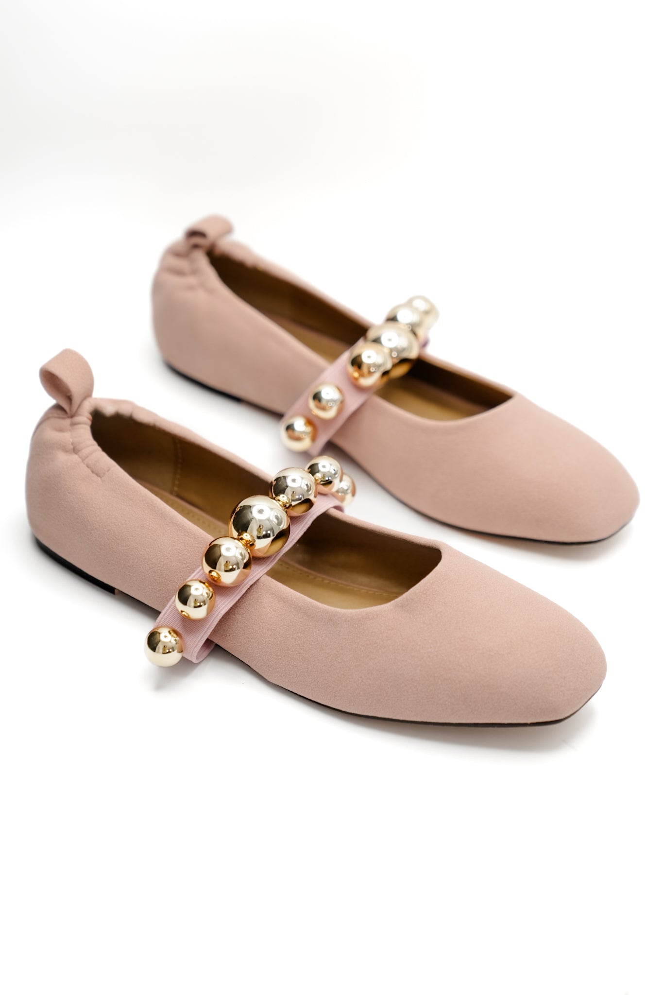 This ballet flat is the kind of piece that instantly elevates even the simplest outfit. The soft vegan suede keeps it feeling refined, while the gold bead strap adds just enough shine to make it stand out. Lightweight and flexible, it’s comfortable enough for all-day wear and polished enough to pair with denim, dresses, or tailored looks.
