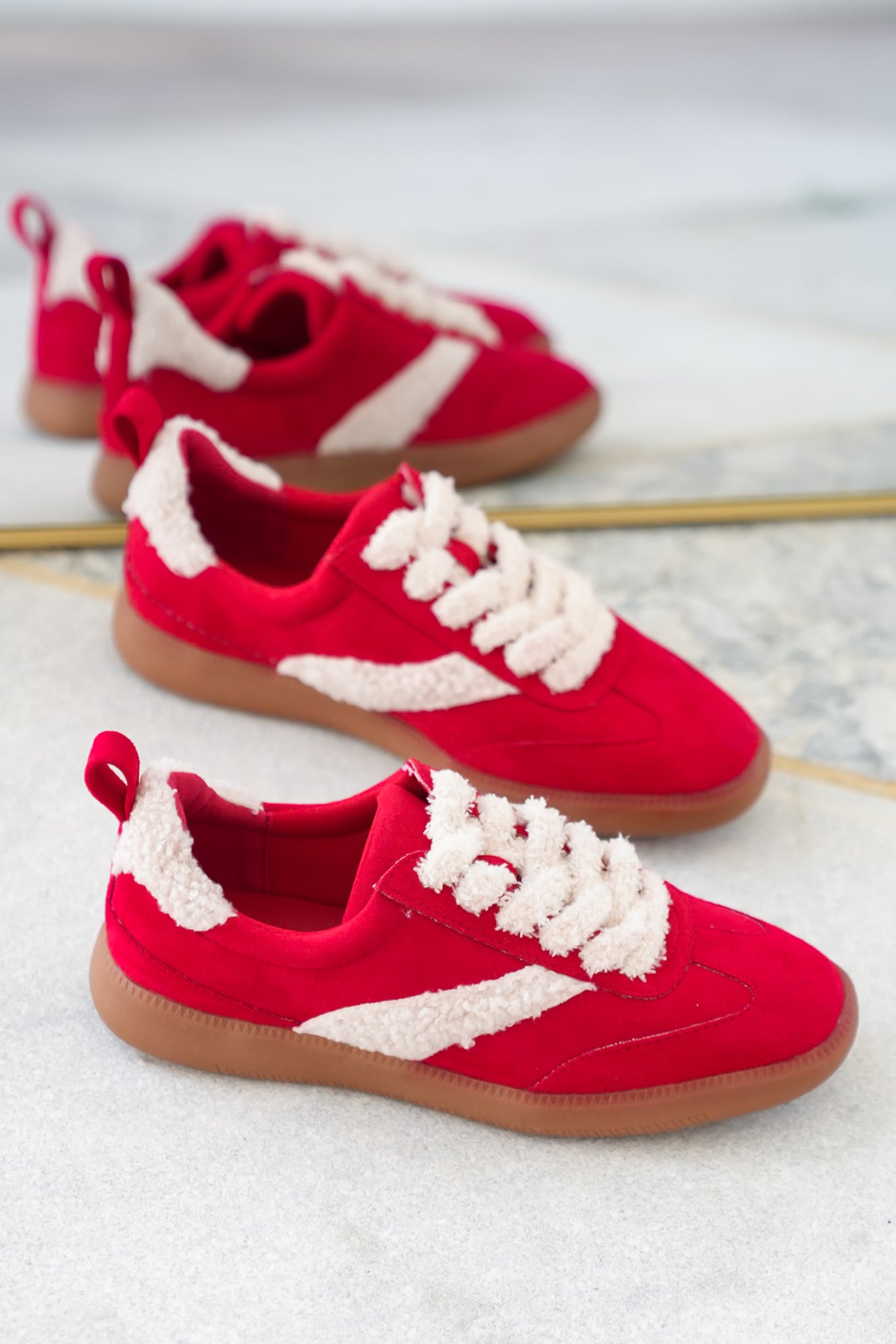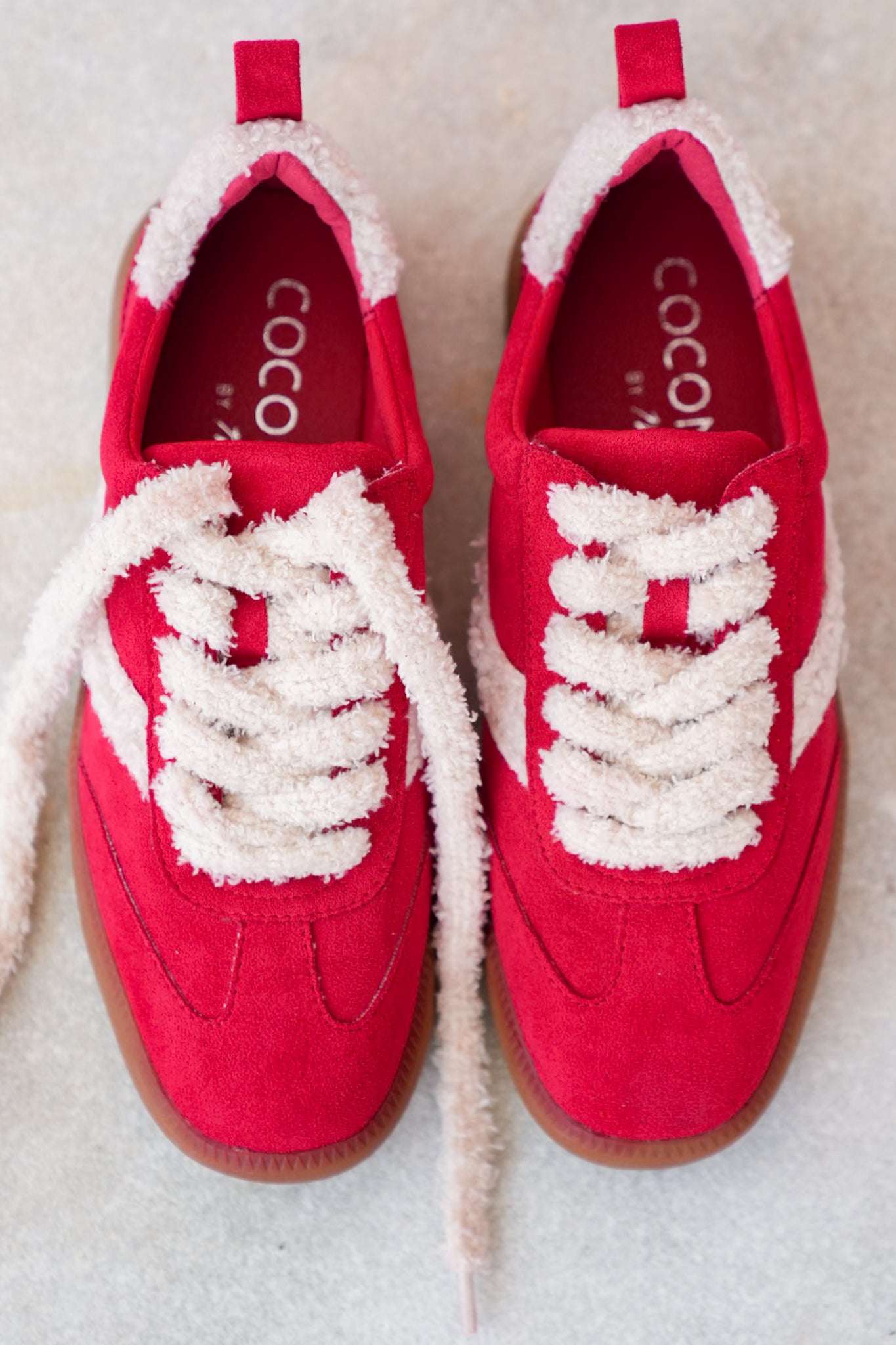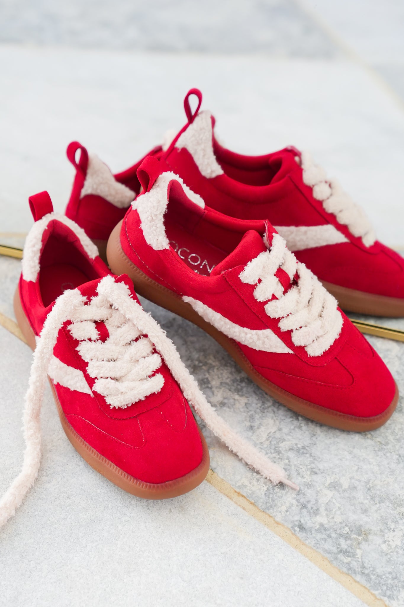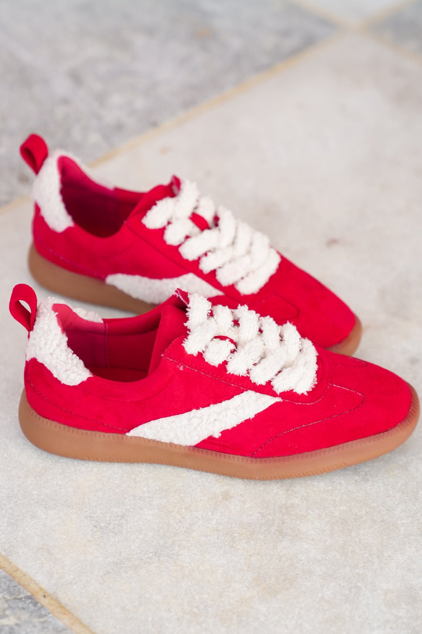 Step into playful comfort with these sherpa-trimmed sneakers. The cozy-meets-cool design makes them perfect for casual fall outings, adding a pop of fun texture to your everyday look. Style them with joggers, jeans, or sweater dresses for a sporty yet stylish finish.