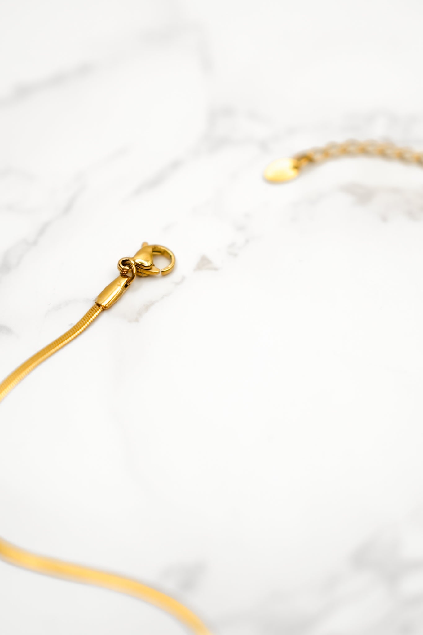 A sleek little chain that makes layering look so good. The micro herringbone design lays flat along the neckline and catches the light beautifully, giving it a clean, polished look whether worn alone or stacked with other favorites. Made from stainless steel with 18K gold plating and designed to be waterproof for easy everyday wear. The adjustable chain allows you to customize the length.