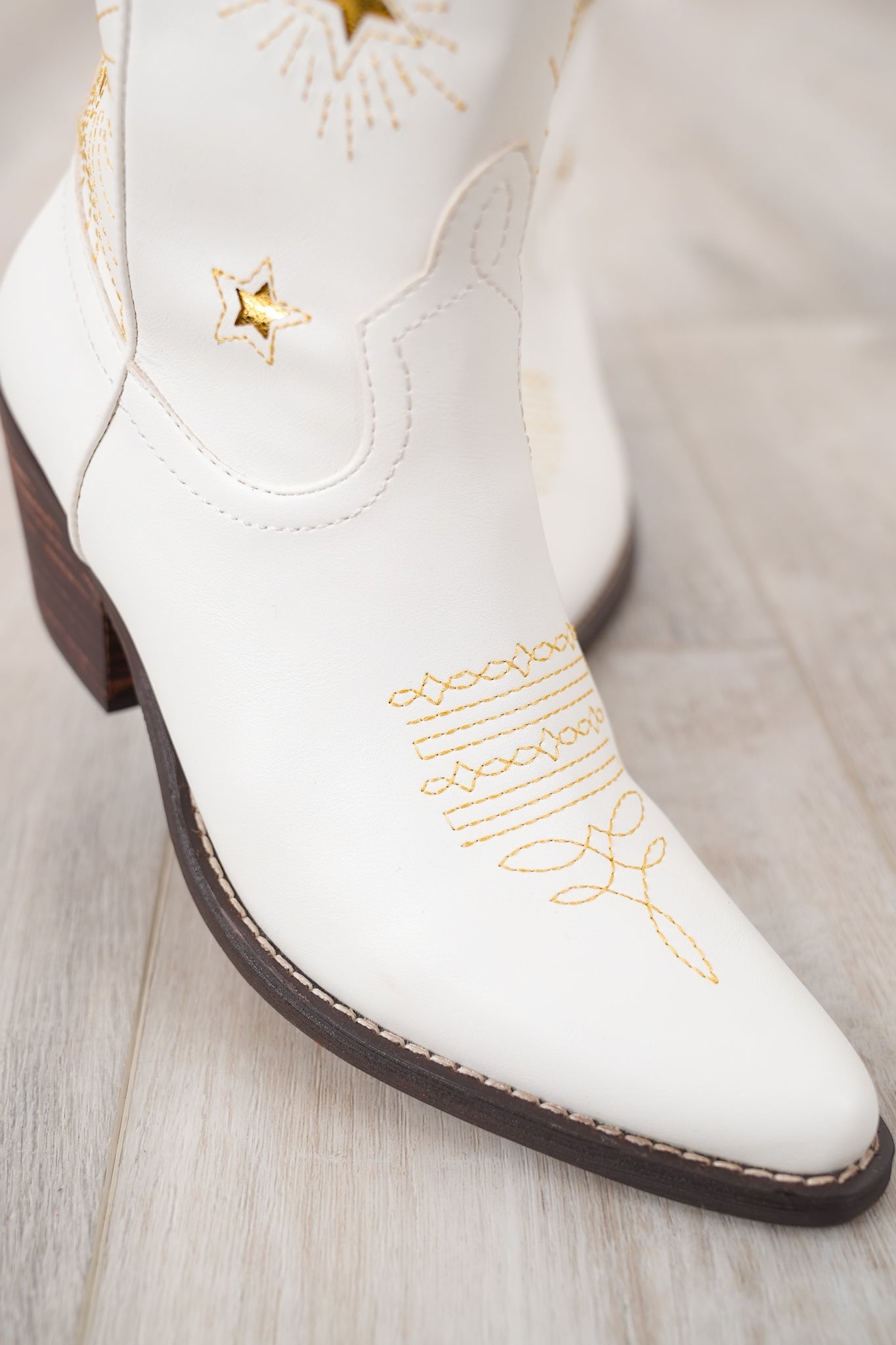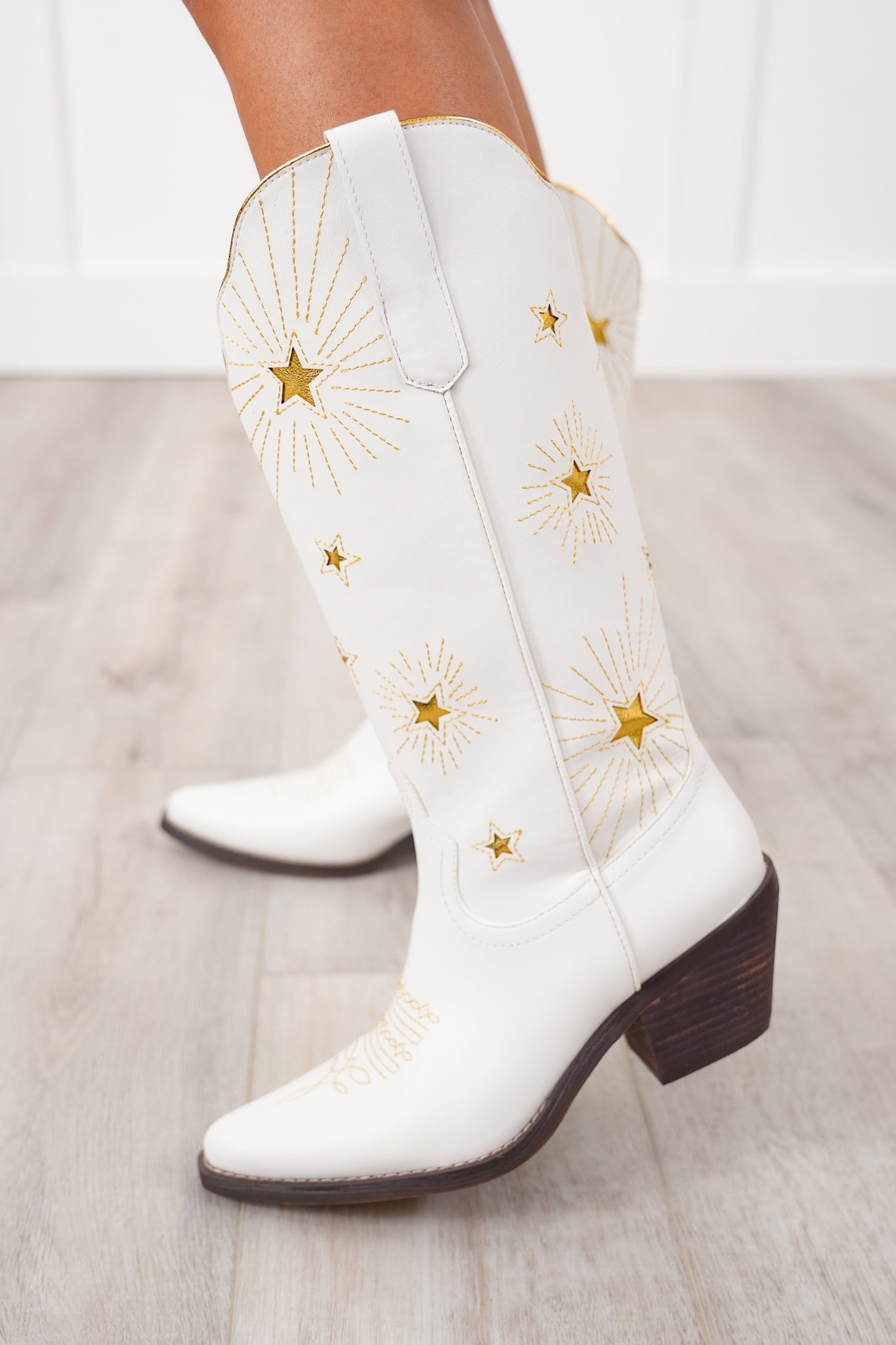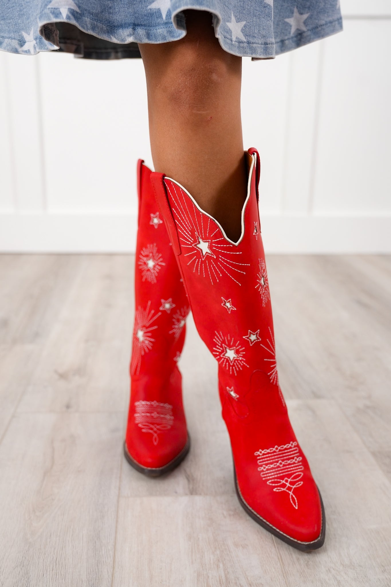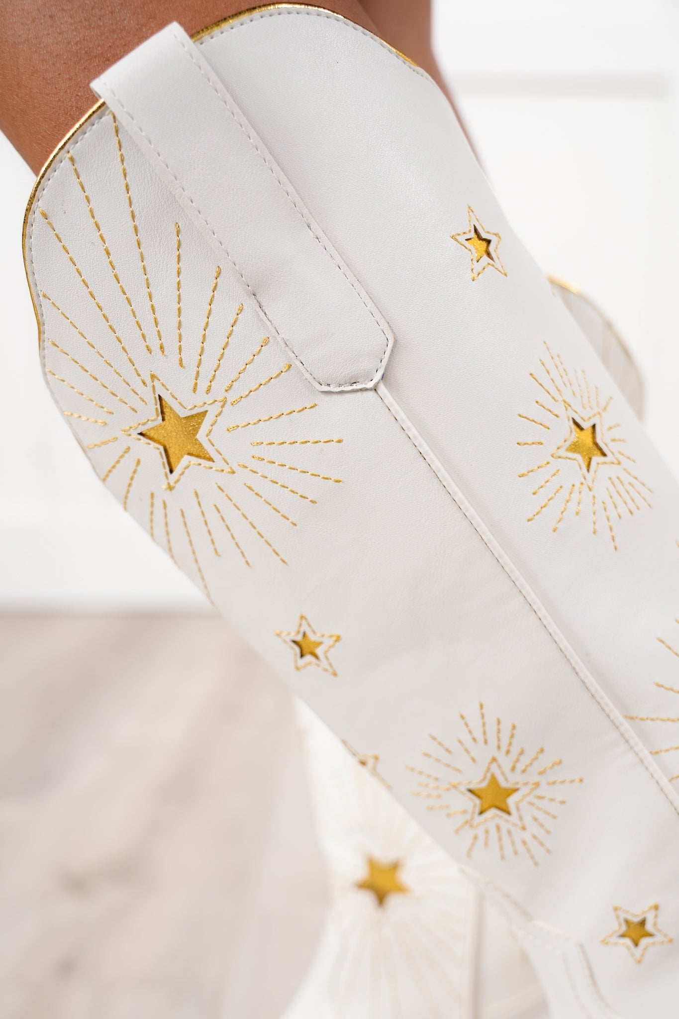 Complete your Americana-inspired look with these western-style knee-high boots. The star cutout details bring a fun, playful twist to a classic silhouette. Wear them with denim skirts, dresses, or shorts for that perfect western-meets-patriotic vibe.