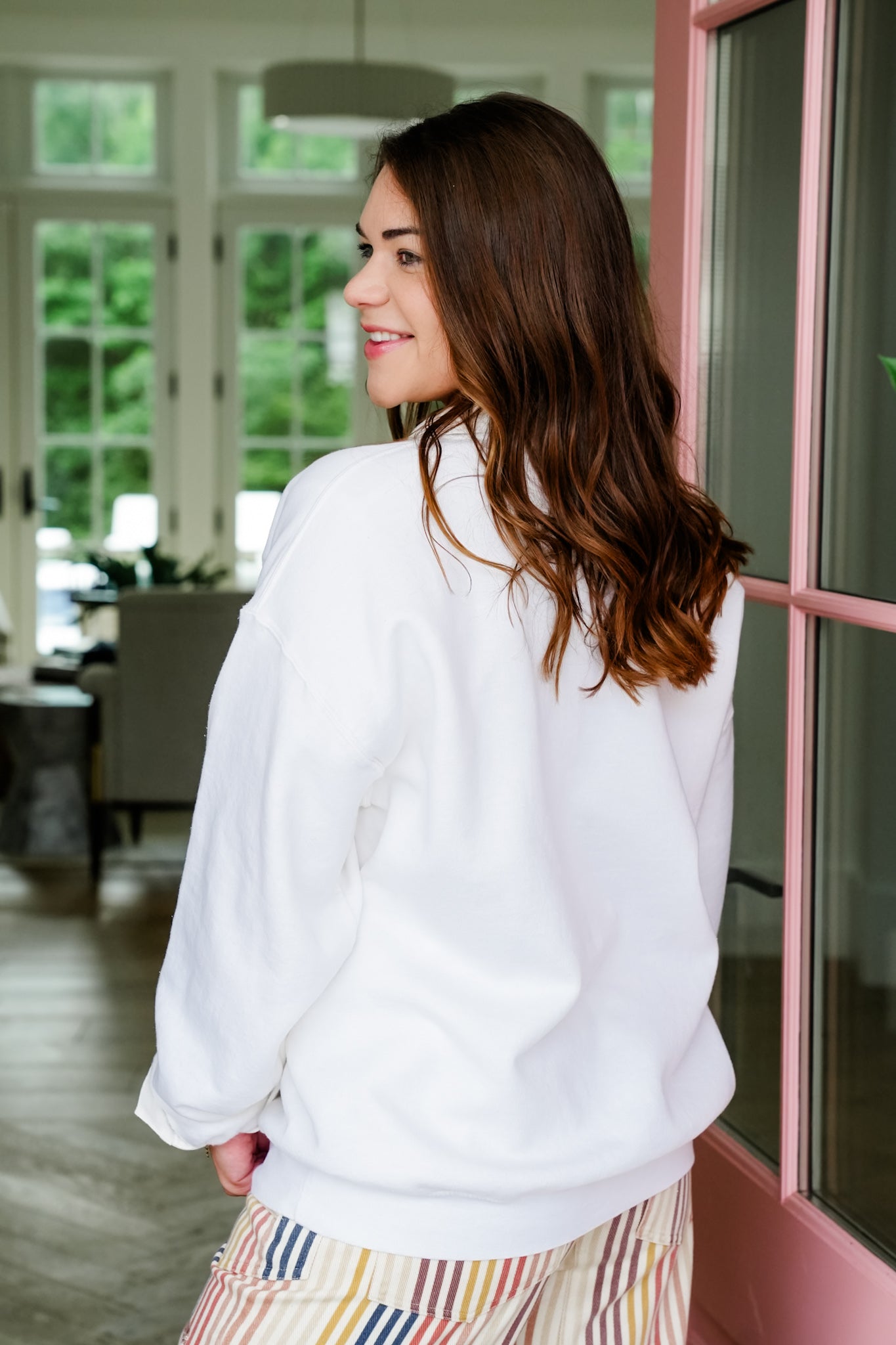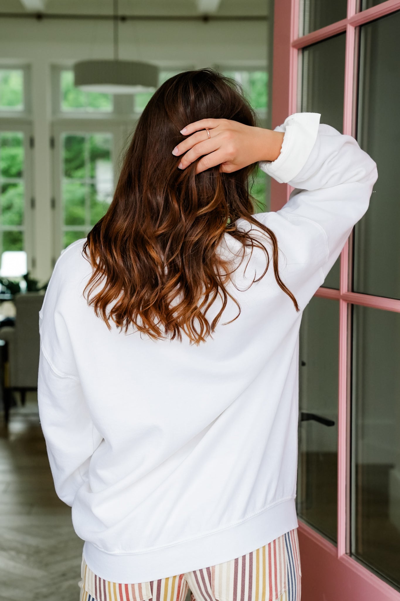 Major European beach vibes are front and center on this oversized graphic sweatshirt! With a soft, washed finish and a breezy white base, this one feels like something you’d pick up from a dreamy Italian coastal town—and now it’s coming straight to your closet. Toss it over a bralette and biker shorts, pair it with denim cutoffs, or lounge in it on travel days.