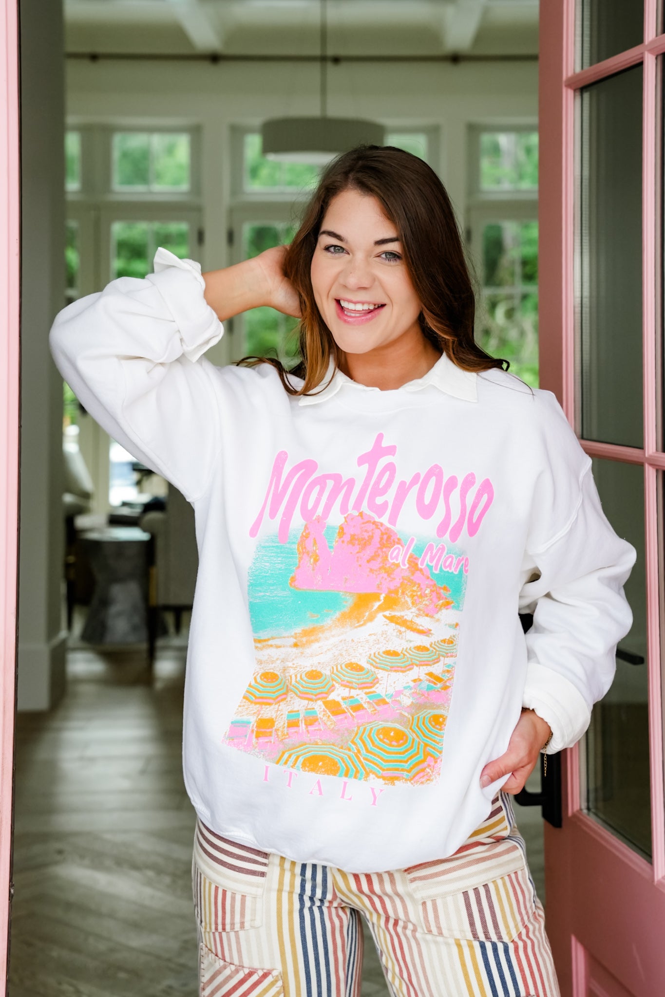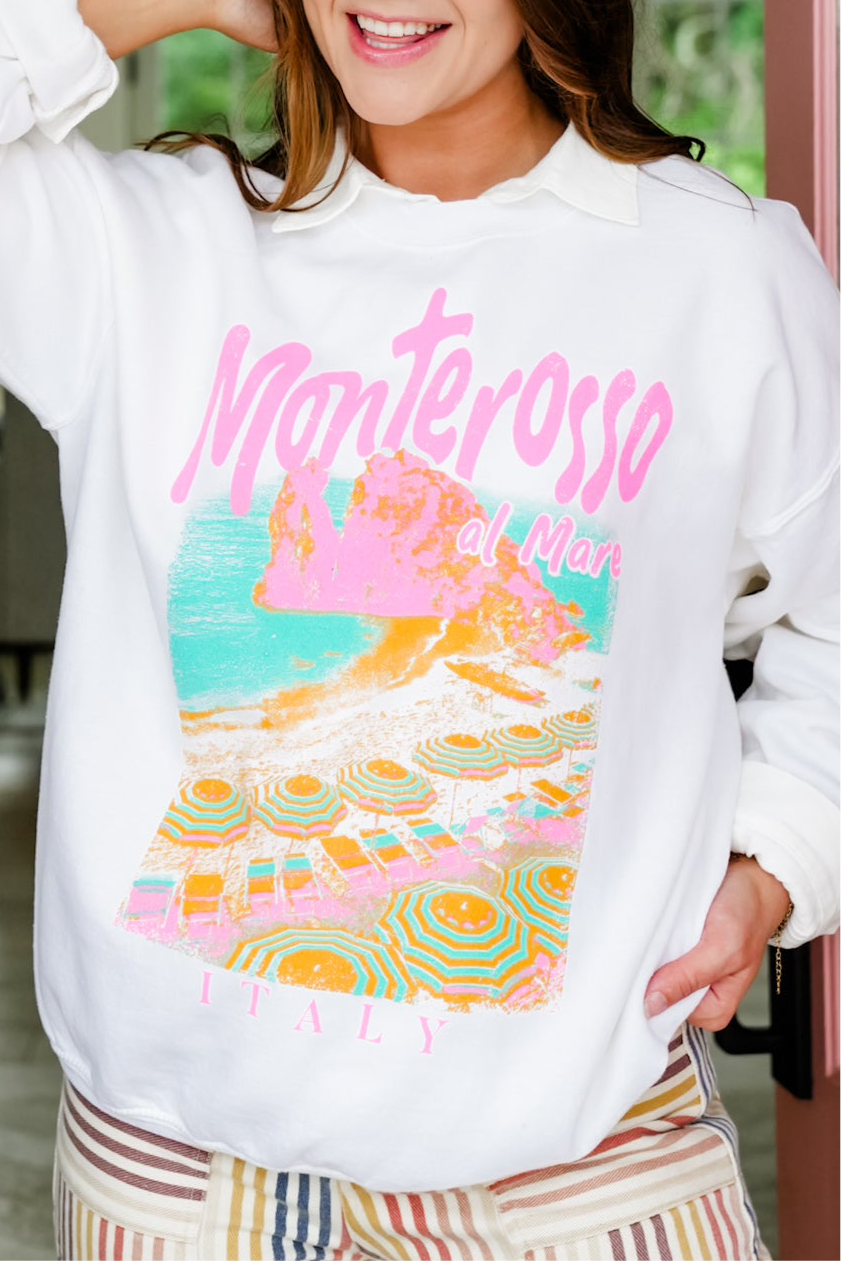 White Long Sleeve "Monterosso Italy" Graphic Sweatshirt