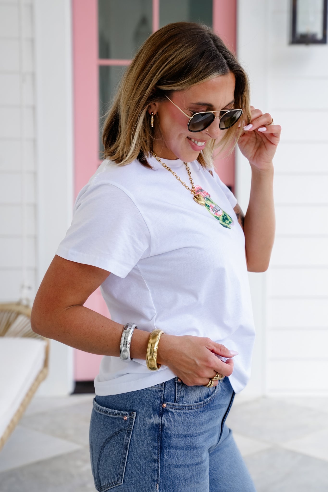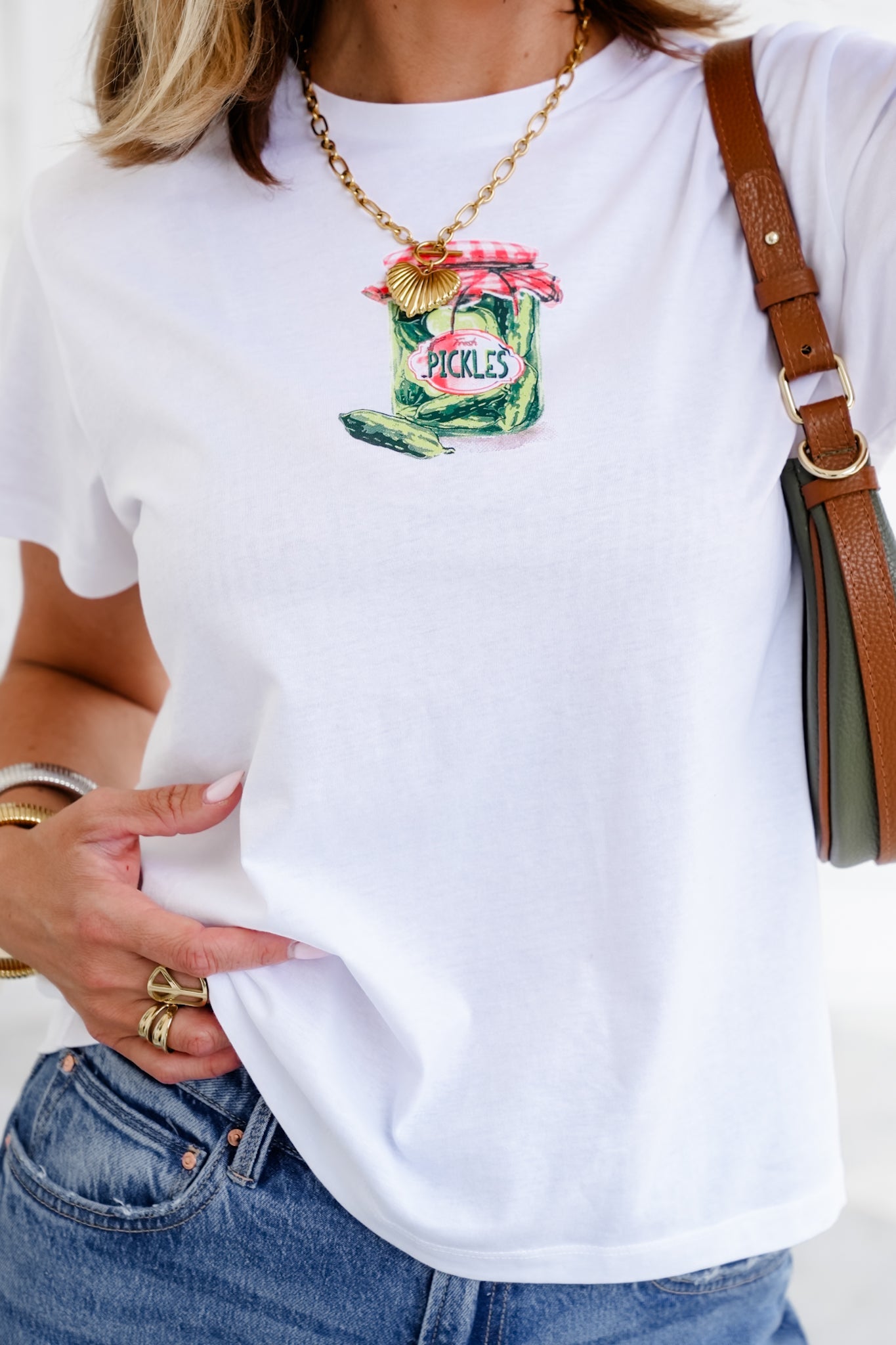 Who knew pickles could be so cute? This tee brings personality front and center with a playful pickle jar graphic that’s sure to spark a smile. Tuck it into denim, knot it with a maxi skirt, or throw it on with joggers for a quick-dash outfit that still has character.