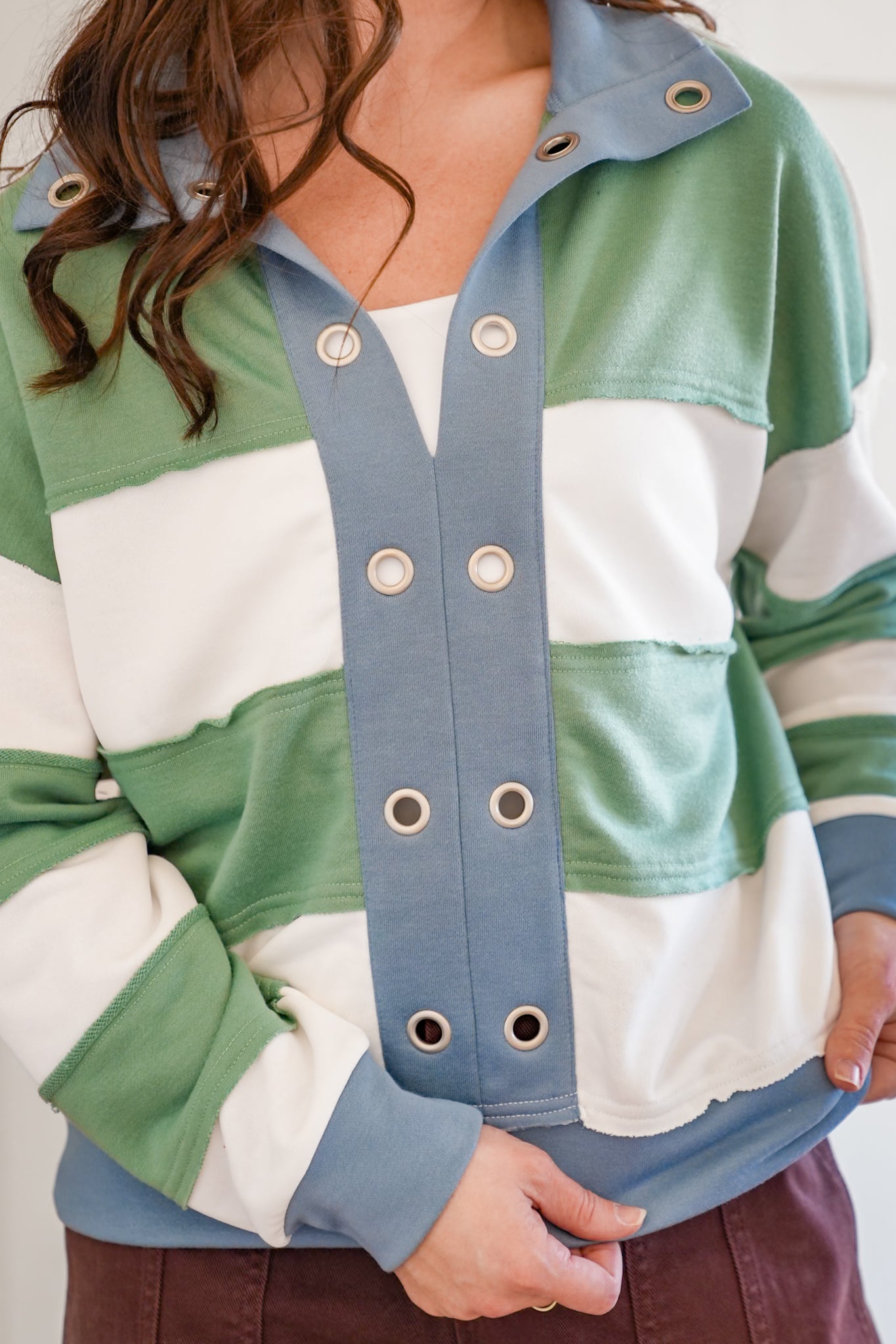 Wide Stripe Long Sleeve Top with Eyelet Accent