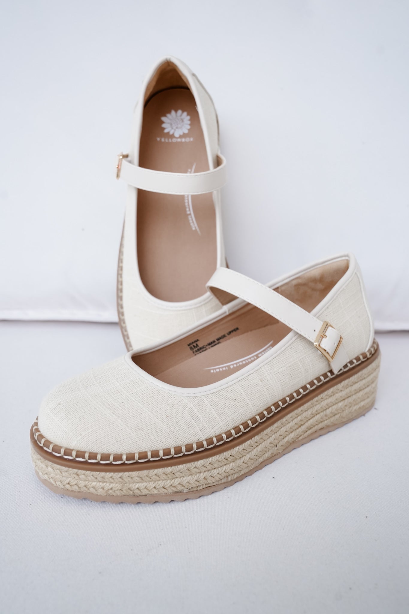 The Yellow Box platform shoe is a must-have for days when you want to elevate your look with ease. Featuring a chic braided jute platform sole and an adjustable buckle, these shoes give you just the right amount of lift while keeping things cool and comfortable. Whether you're pairing them with a flowy dress or casual jeans, they add a touch of effortless style that’s perfect for warmer days.